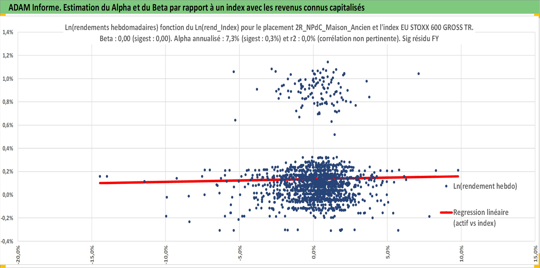 Site dédié aux investisseursPage dédiée sur site financeAnalyse des valorisations hebdomadaires de l'actif 2R_NPdC_Maison_Ancien. Cet actif est cote en EUR. Les valorisations couvrent les semaines 1997W01 a 2025W40. Les loyers de cet actif immobilier sont pris egaux a 3,33% annuels de la valeur venale du logement.