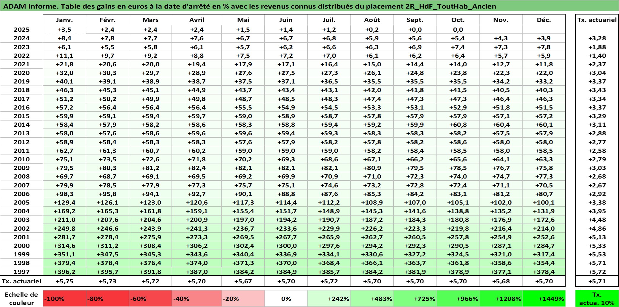 Site dédié aux investisseursPage dédiée sur site financeAnalyse des valorisations hebdomadaires de l'actif 2R_HdF_ToutHab_Ancien. Cet actif est cote en EUR. Les valorisations couvrent les semaines 1997W01 a 2025W40. Les loyers de cet actif immobilier sont pris egaux a 3,33% annuels de la valeur venale du logement.