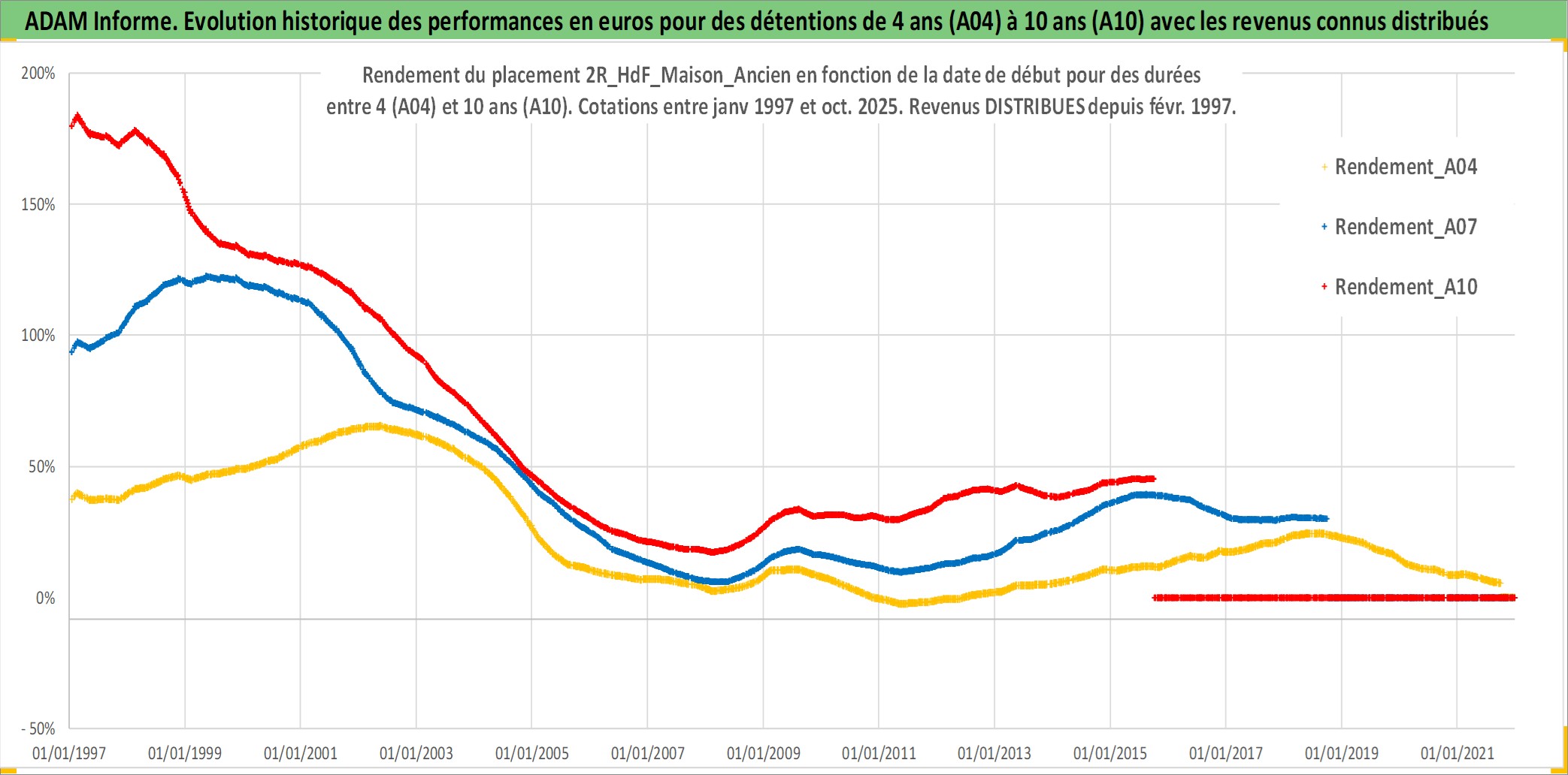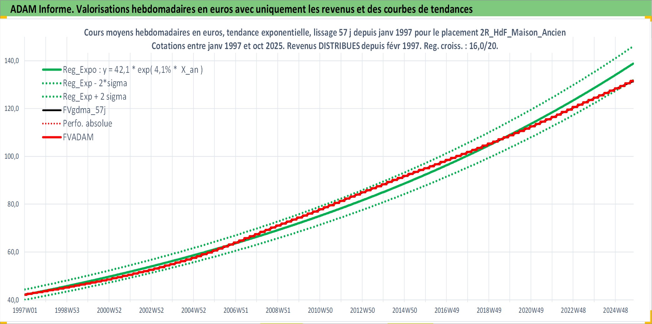 Site dédié aux investisseursPage dédiée sur site financeAnalyse des valorisations hebdomadaires de l'actif 2R_HdF_Maison_Ancien. Cet actif est cote en EUR. Les valorisations couvrent les semaines 1997W01 a 2025W40. Les loyers de cet actif immobilier sont pris egaux a 3,33% annuels de la valeur venale du logement.