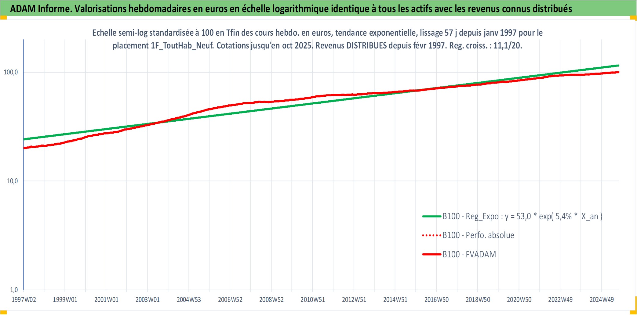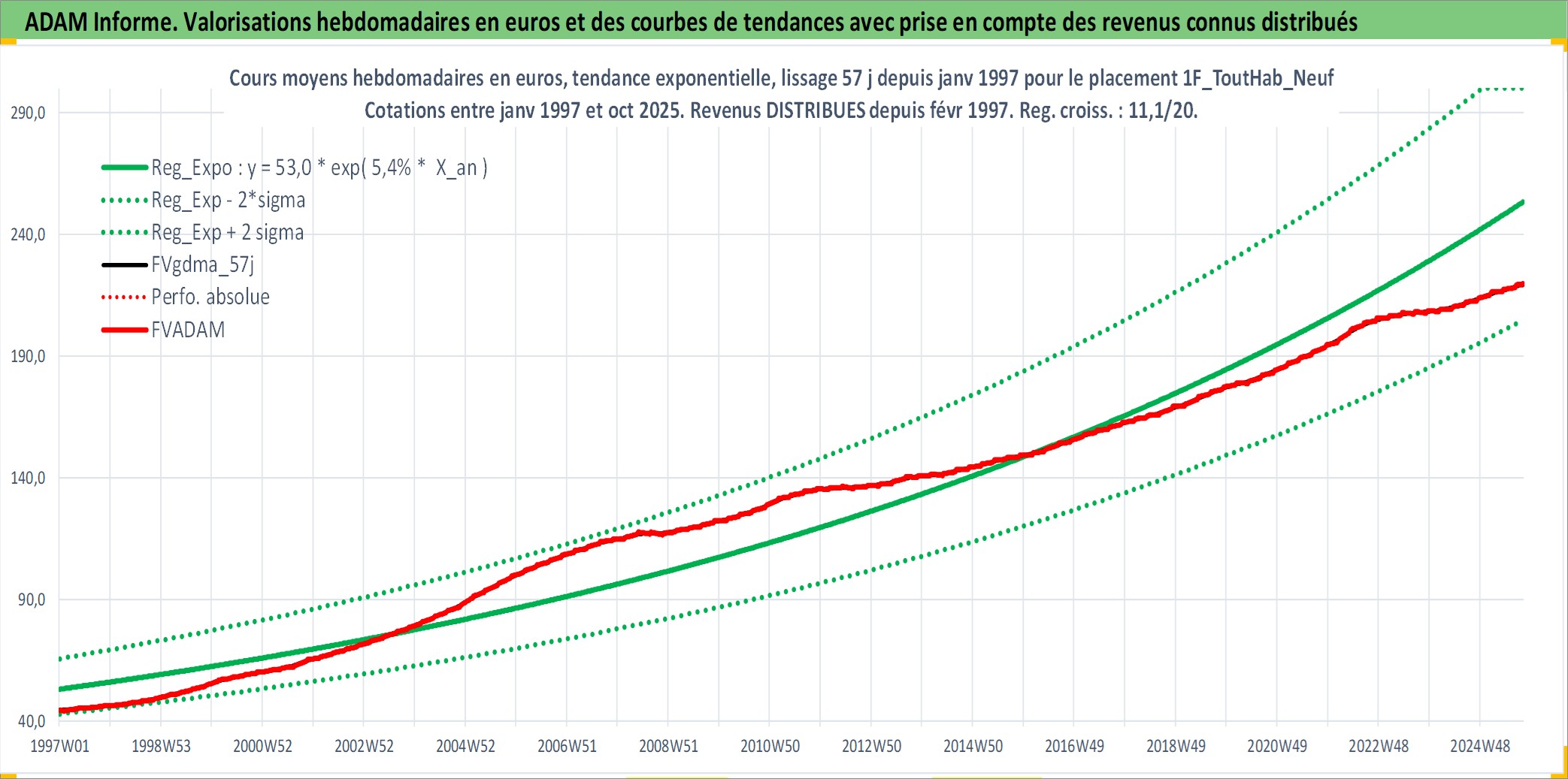 Site dédié aux investisseursPage dédiée sur site financeAnalyse des valorisations hebdomadaires de l'actif 1F_ToutHab_Neuf. Cet actif est cote en EUR. Les valorisations couvrent les semaines 1997W01 a 2025W40. Les loyers de cet actif immobilier sont pris egaux a 3,33% annuels de la valeur venale du logement.
