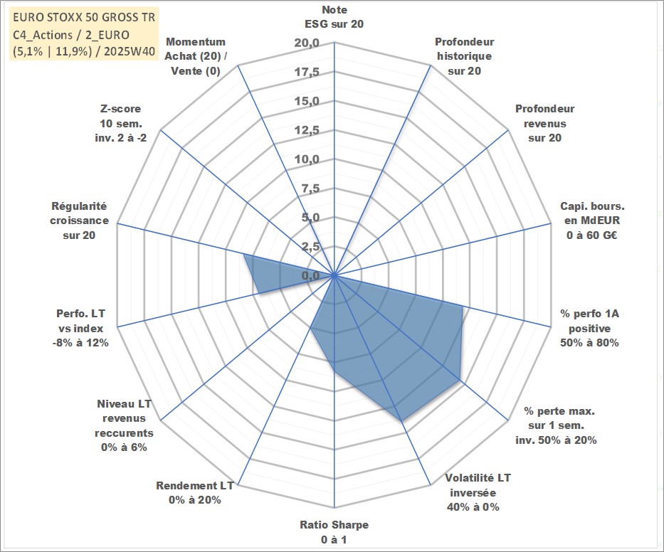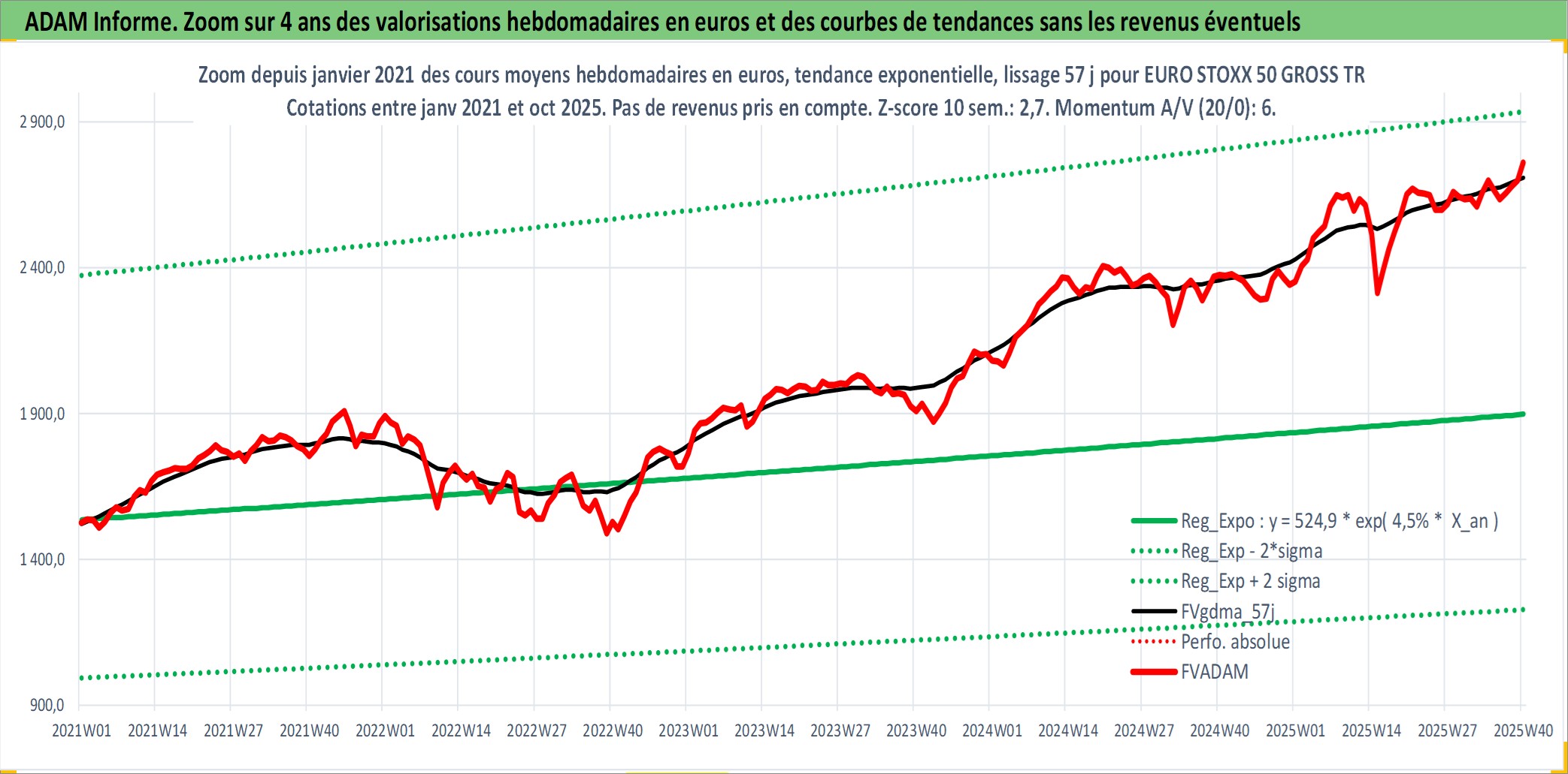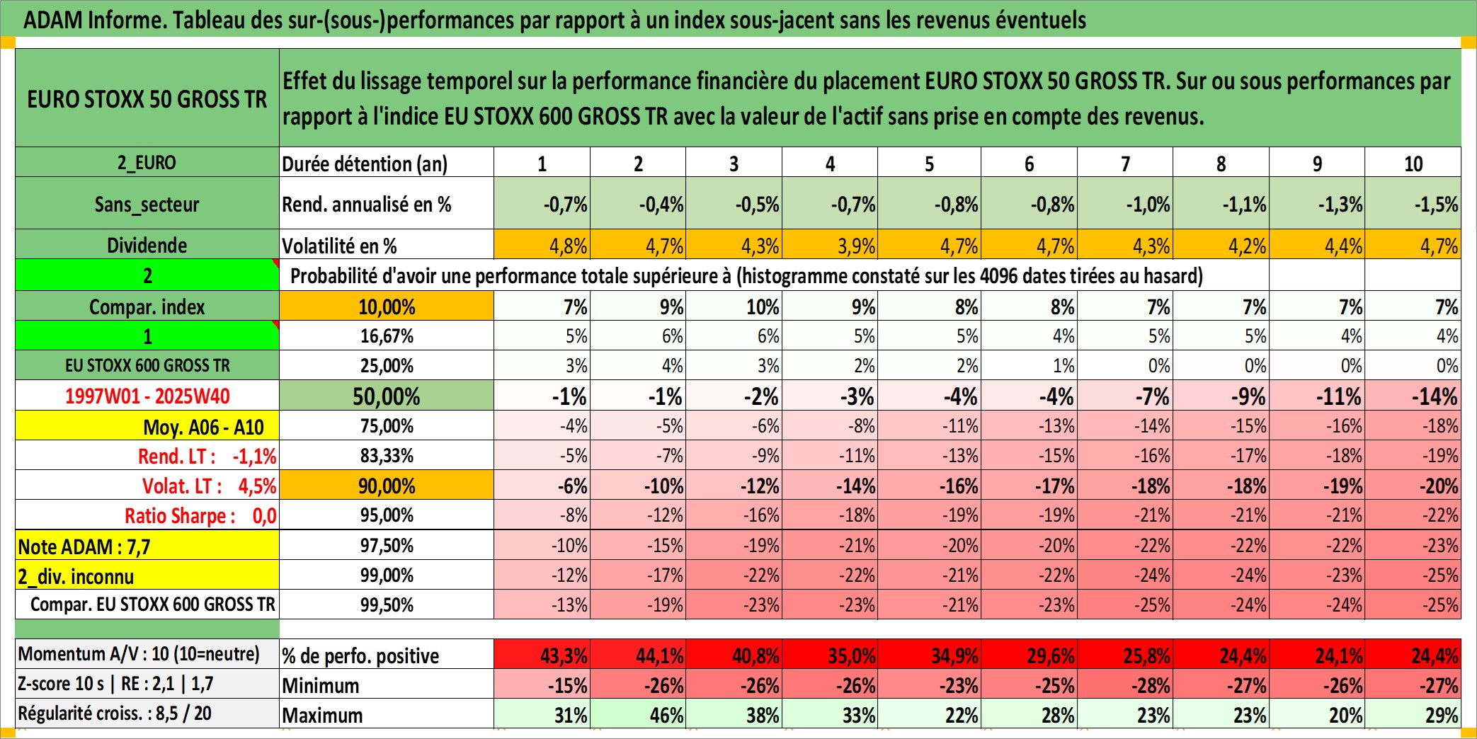 Site dédié aux investisseursPage dédiée sur site financeAnalyse des valorisations hebdomadaires de l'actif EURO STOXX 50 GROSS TR. Cet actif est cote en EUR. Les valorisations couvrent les semaines 1997W01 a 2025W40. Les revenus de cet actif financier ne sont pas connus car non existants ou non disponibles sur le site Yahoo Finance. La note ESG de cet actif n'est pas connue.