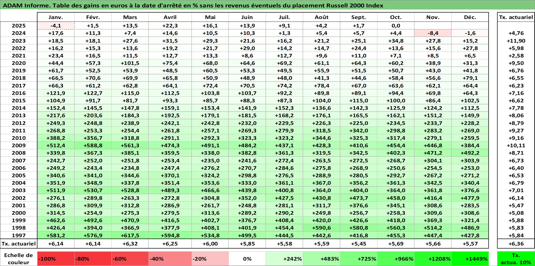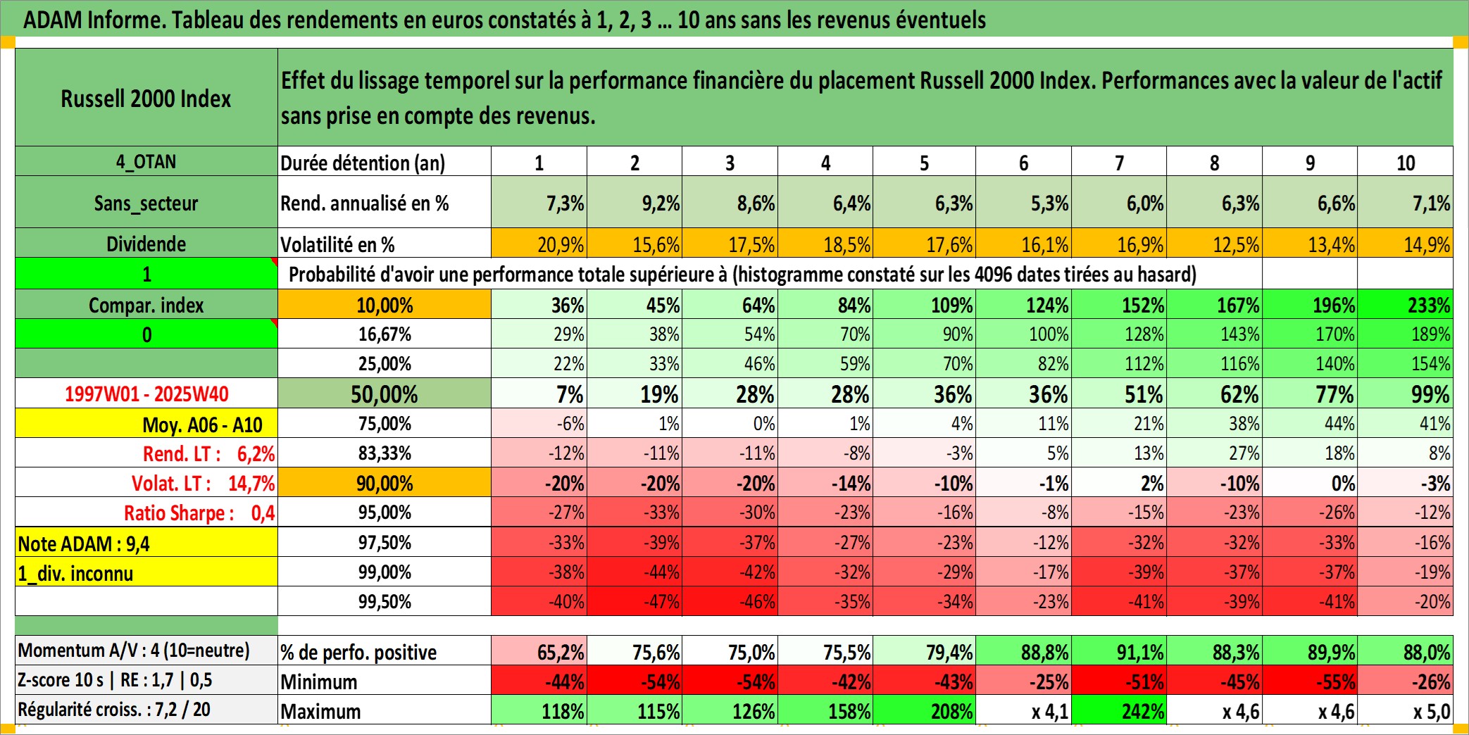 Site dédié aux investisseursPage dédiée sur site financeAnalyse des valorisations hebdomadaires de l'actif Russell 2000 Index. Cet actif est cote en USD. Les valorisations sont en contrevaleur EURO et couvrent les semaines 1997W01 a 2025W40. Les revenus de cet actif financier ne sont pas connus car non existants ou non disponibles sur le site Yahoo Finance. La note ESG de cet actif n'est pas connue.