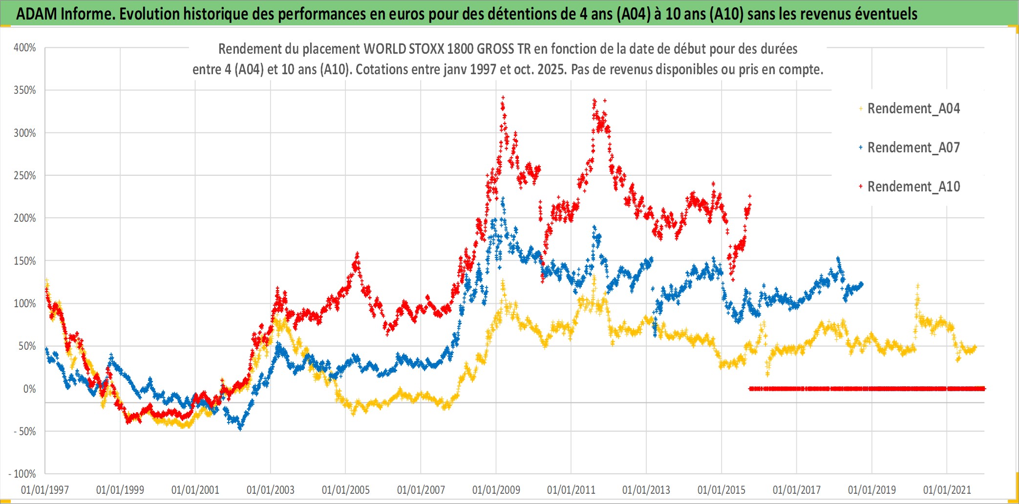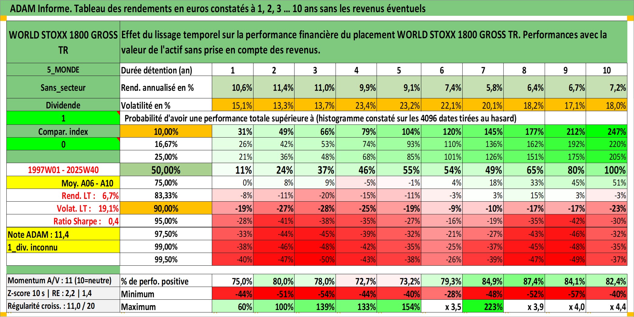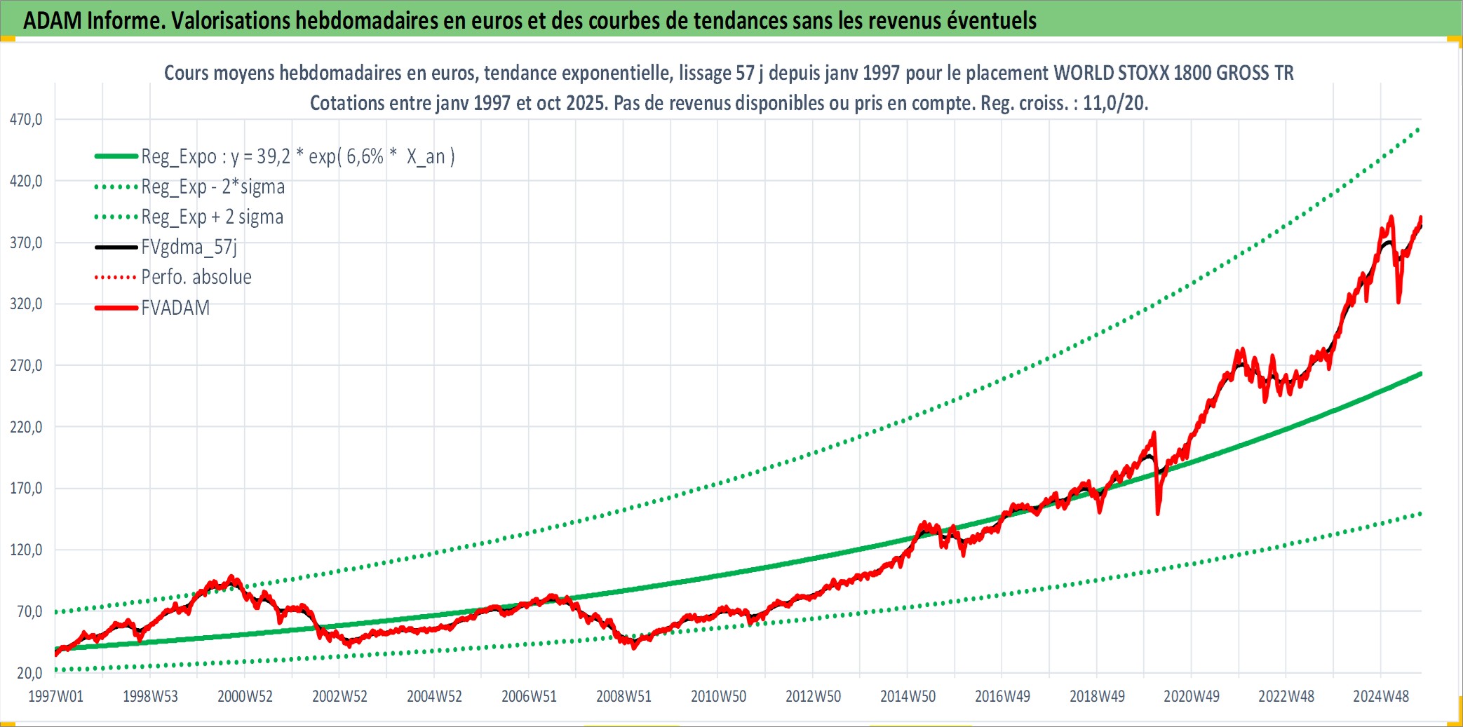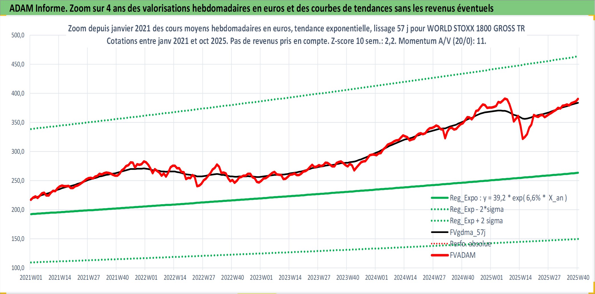 Site dédié aux investisseursPage dédiée sur site financeAnalyse des valorisations hebdomadaires de l'actif WORLD STOXX 1800 GROSS TR. Cet actif est cote en USD. Les valorisations sont en contrevaleur EURO et couvrent les semaines 1997W01 a 2025W40. Les revenus de cet actif financier ne sont pas connus car non existants ou non disponibles sur le site Yahoo Finance. La note ESG de cet actif n'est pas connue.