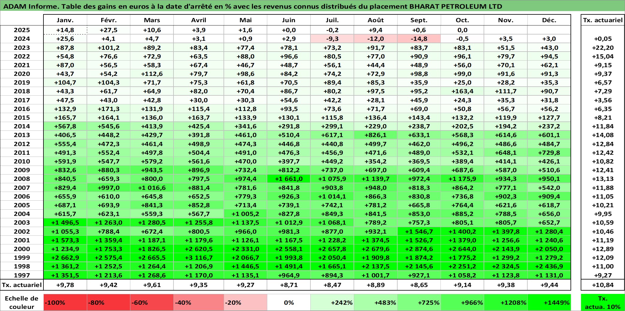 Dernière perfo 10 ans en %