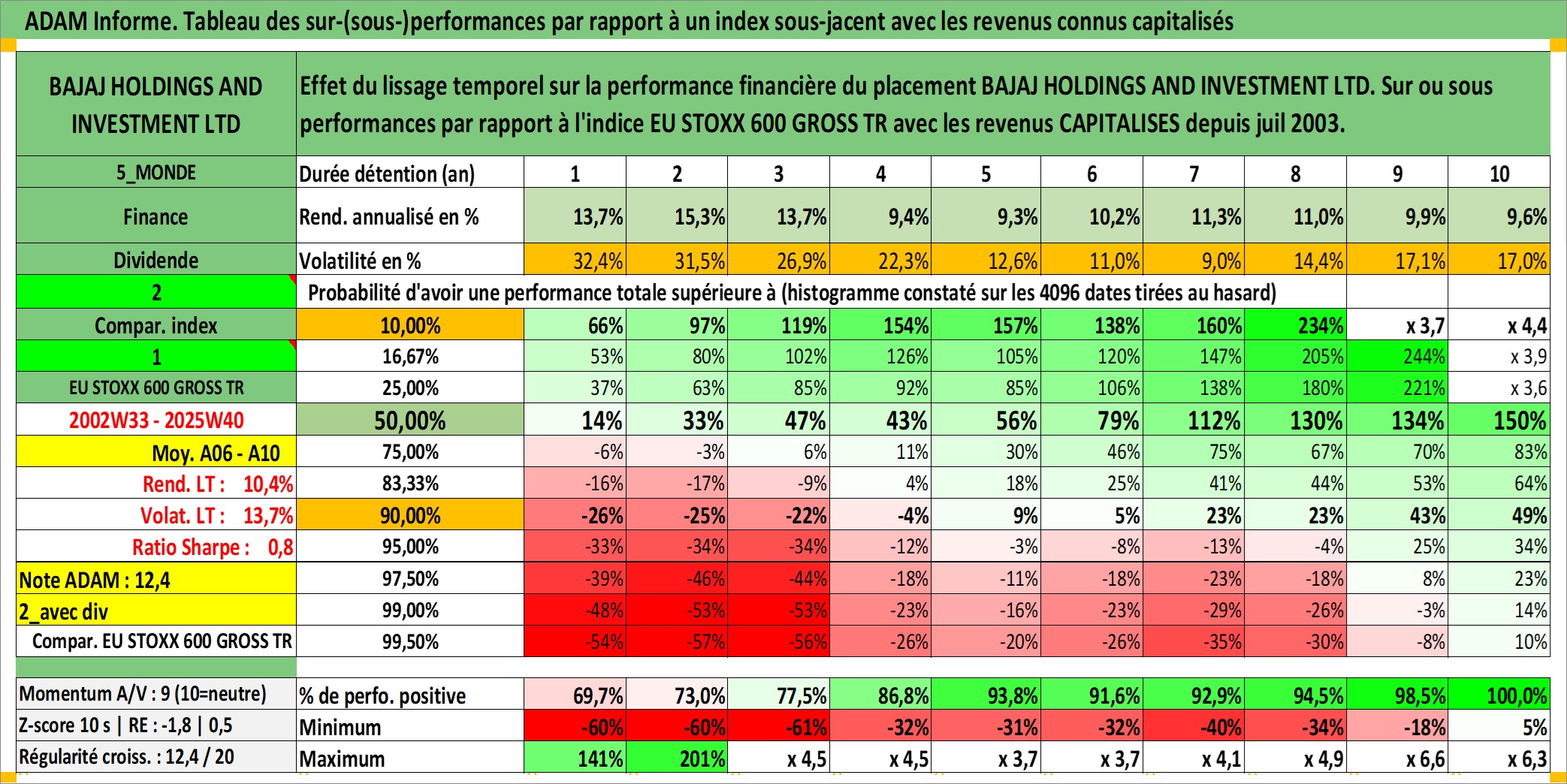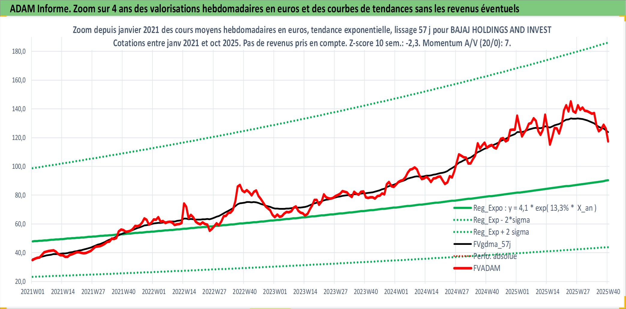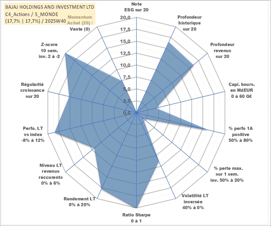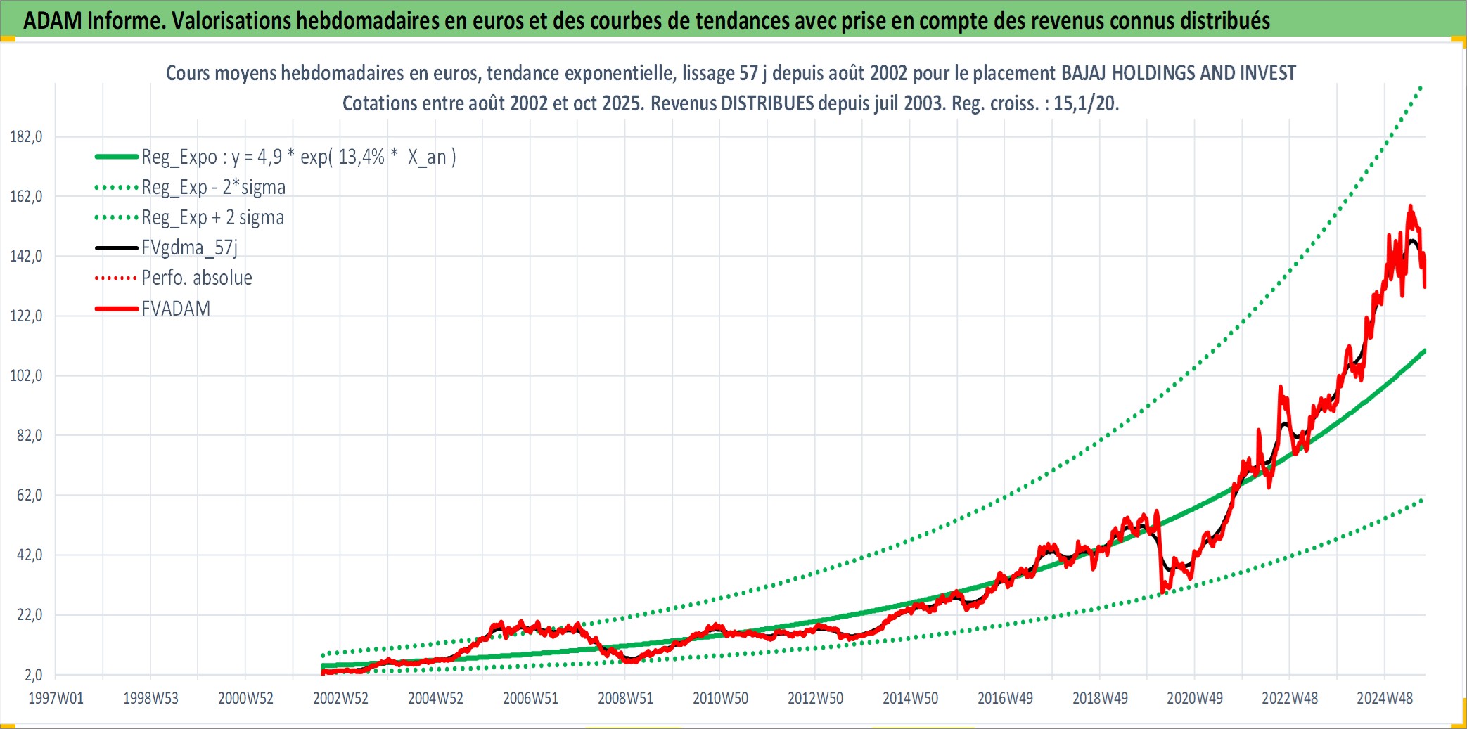 Site dédié aux investisseursPage dédiée sur site financeAnalyse des valorisations hebdomadaires de l'action BAJAJ HOLDINGS AND INVESTMENT LTD. Cet actif est cote en INR. Les valorisations sont en contrevaleur EURO et couvrent les semaines 2002W33 a 2025W40. Les revenus de cet actif financier sont pris en compte depuis la semaine 2003W28. La note ESG de cet actif n'est pas connue.