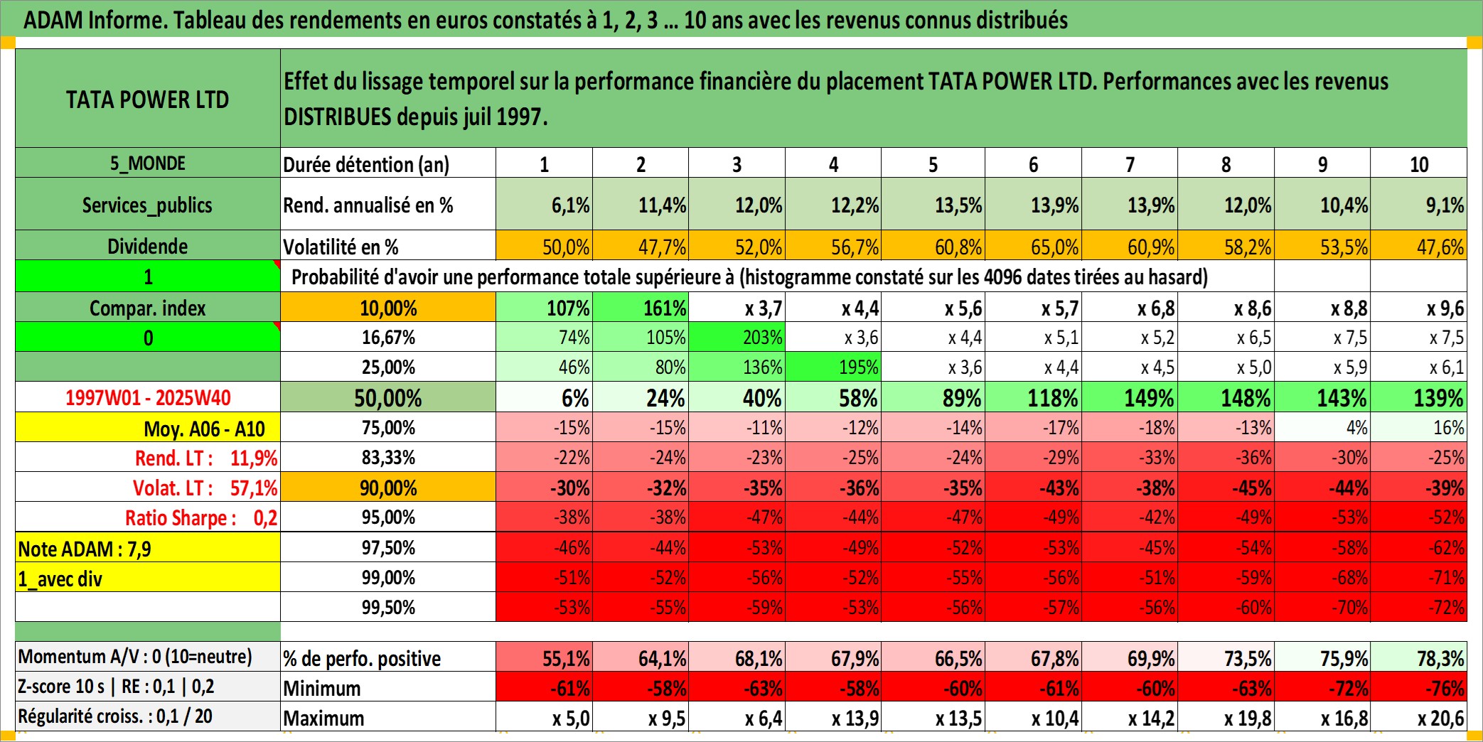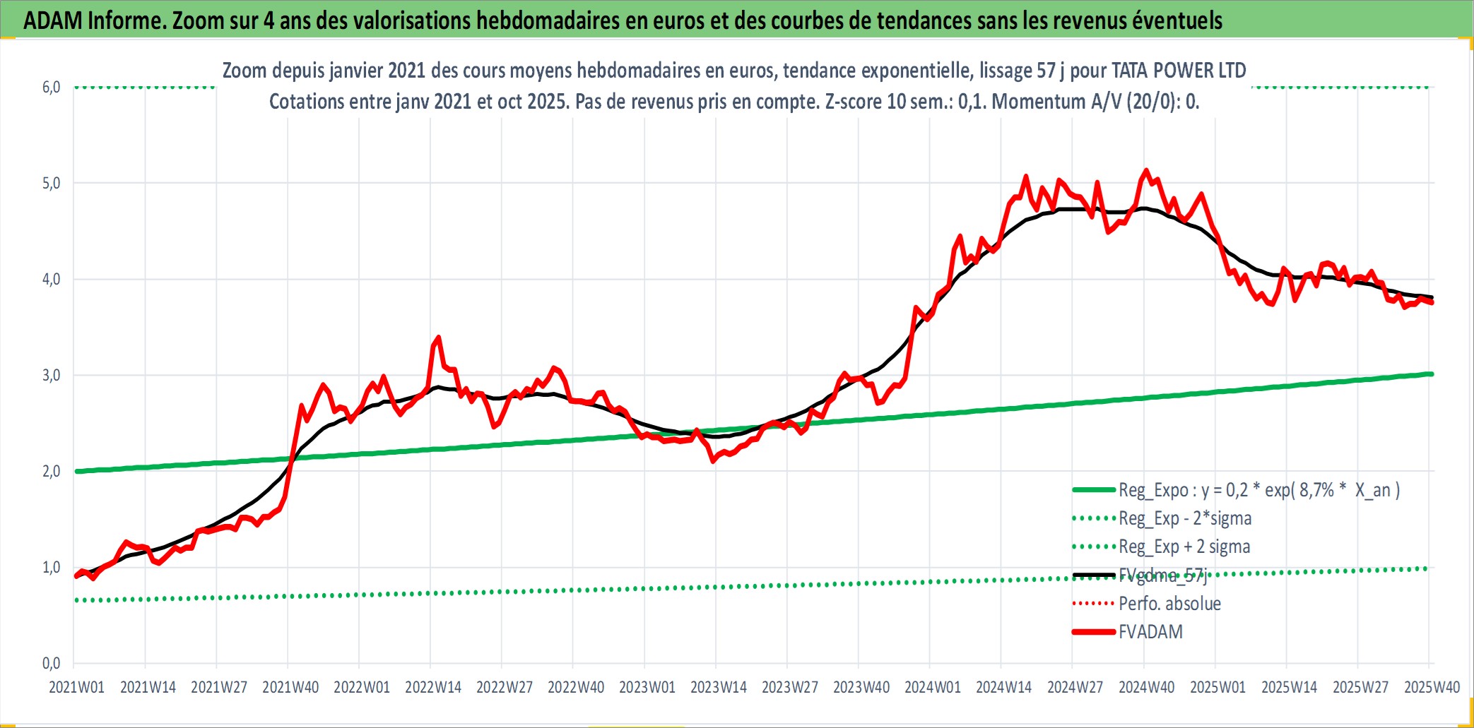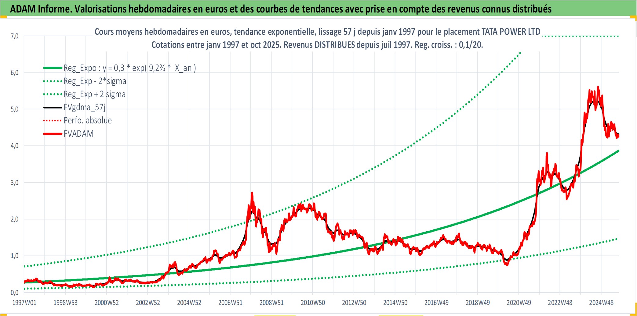 Site dédié aux investisseursPage dédiée sur site financeAnalyse des valorisations hebdomadaires de l'action TATA POWER LTD. Cet actif est cote en INR. Les valorisations sont en contrevaleur EURO et couvrent les semaines 1997W01 a 2025W40. Les revenus de cet actif financier sont pris en compte depuis la semaine 1997W28. La note ESG de cet actif n'est pas connue.