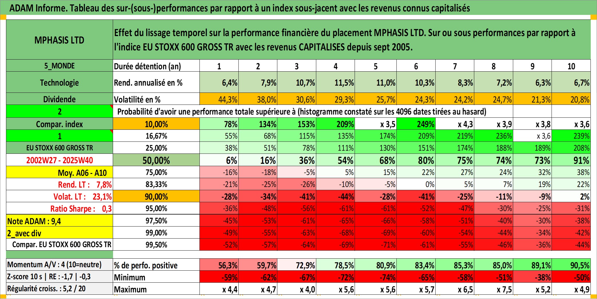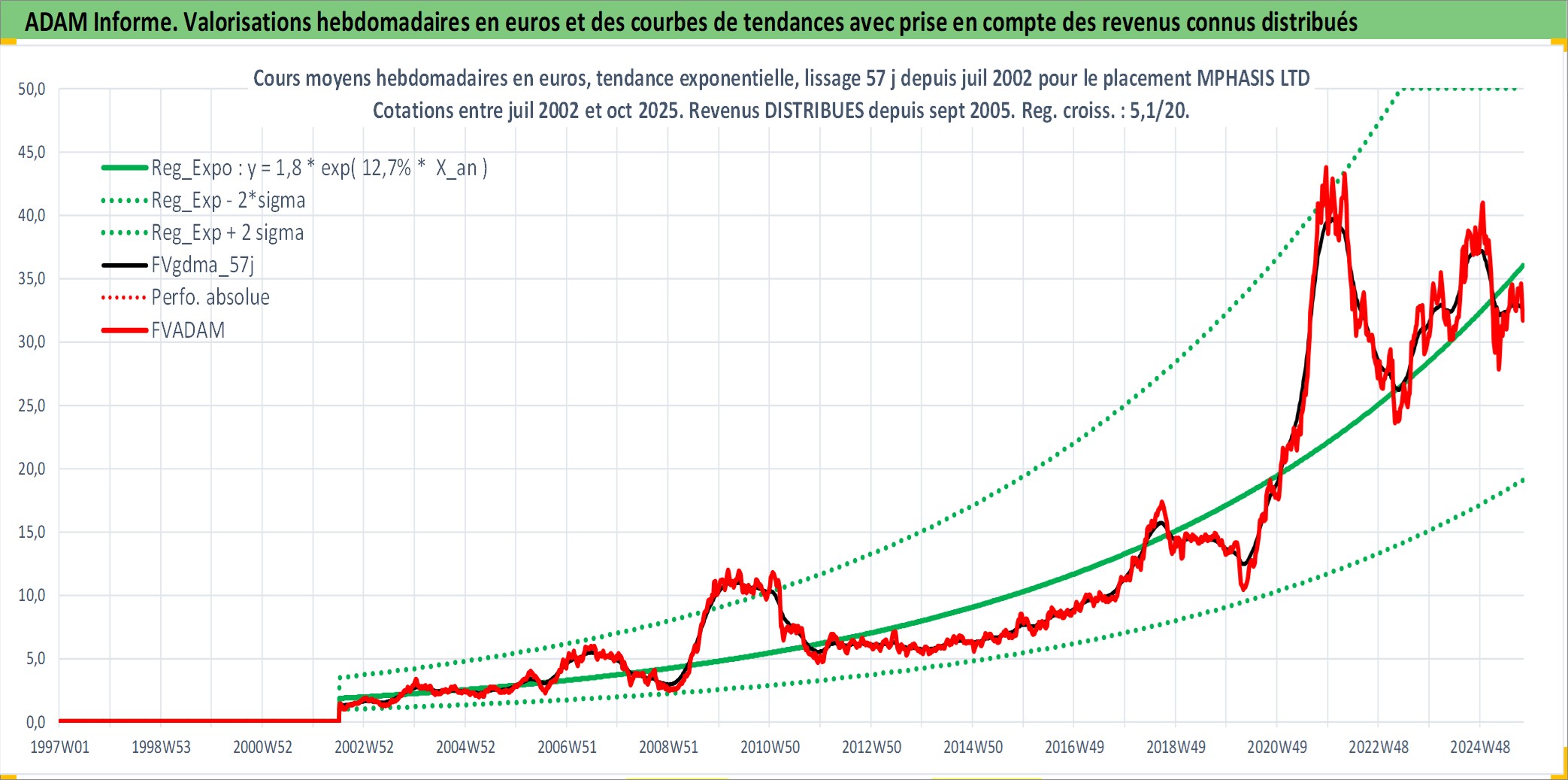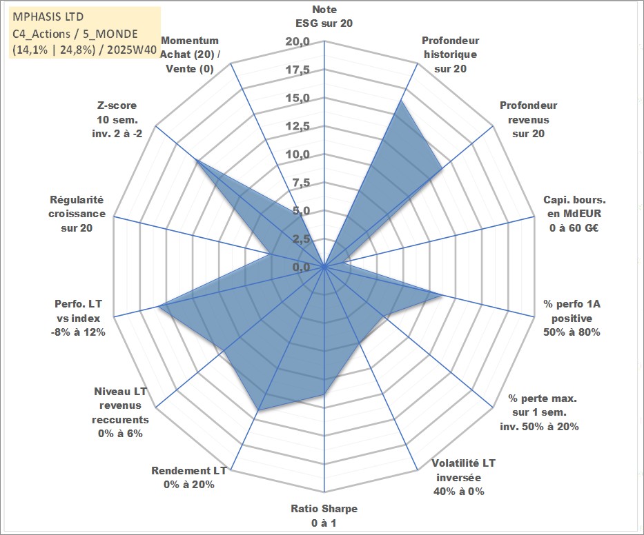 Site dédié aux investisseursPage dédiée sur site financeAnalyse des valorisations hebdomadaires de l'action MPHASIS LTD. Cet actif est cote en INR. Les valorisations sont en contrevaleur EURO et couvrent les semaines 2002W27 a 2025W40. Les revenus de cet actif financier sont pris en compte depuis la semaine 2005W38. La note ESG de cet actif n'est pas connue.