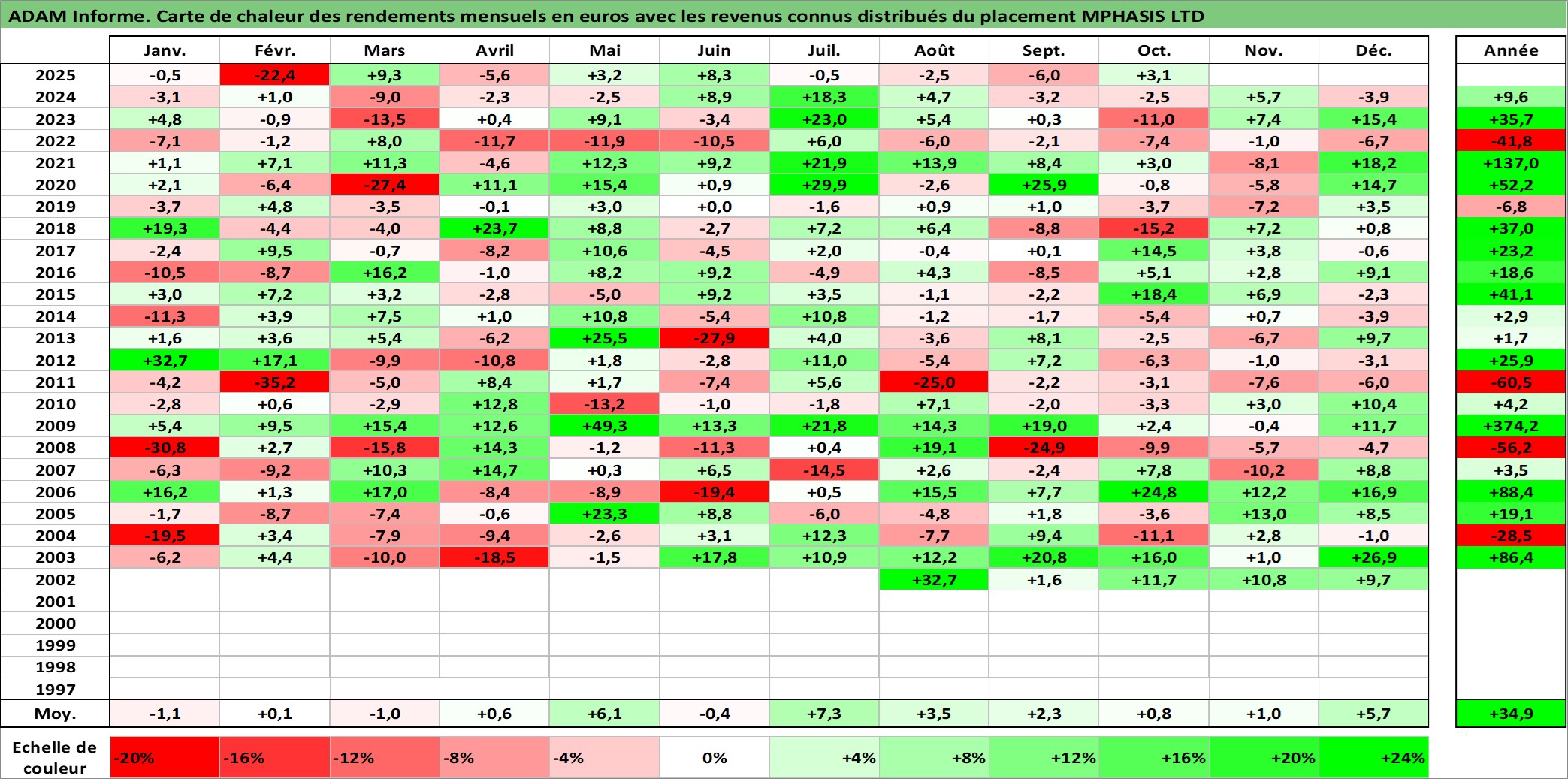 Dernière perfo 1 an en %