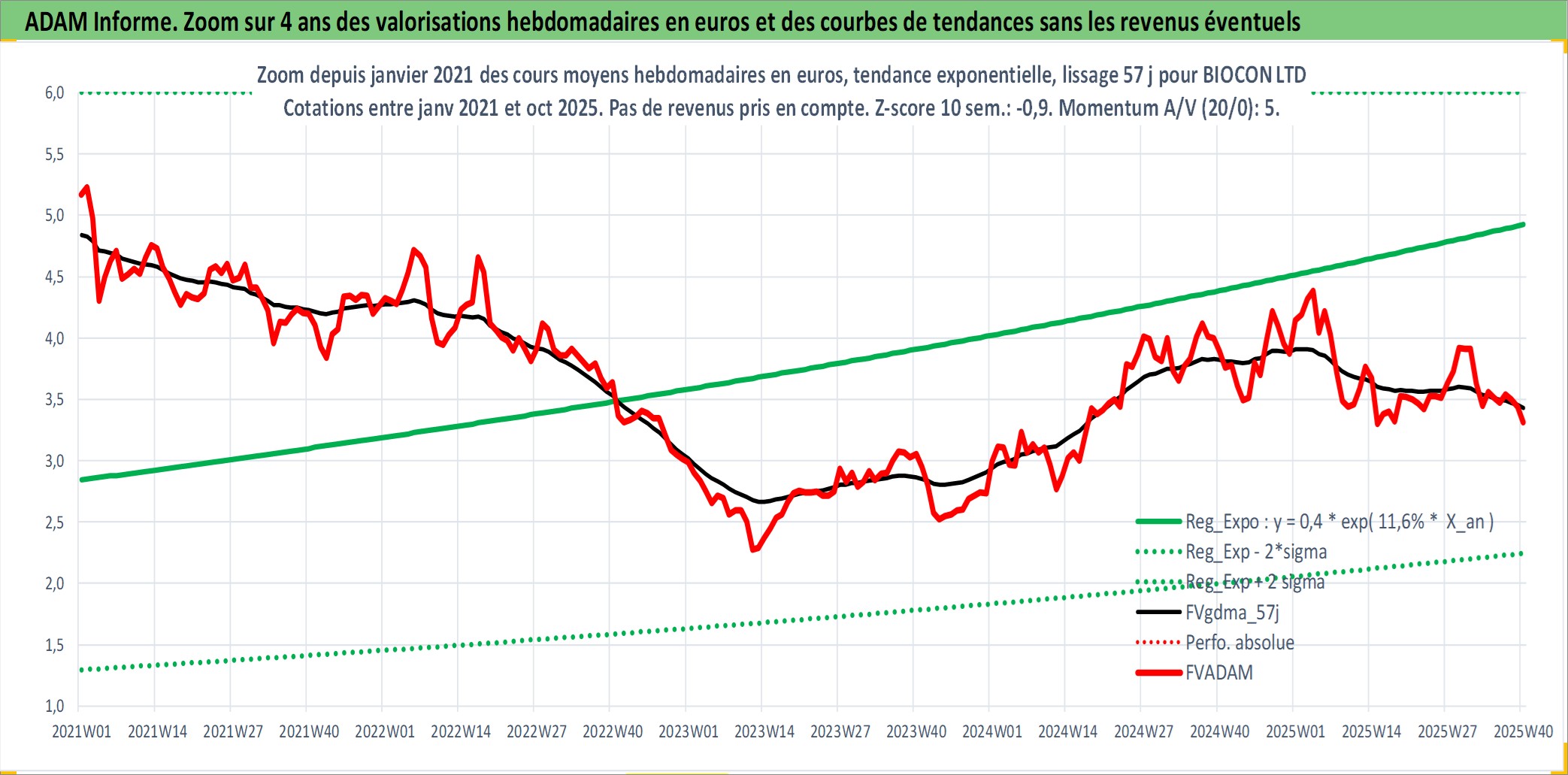 Site dédié aux investisseursPage dédiée sur site financeAnalyse des valorisations hebdomadaires de l'action BIOCON LTD. Cet actif est cote en INR. Les valorisations sont en contrevaleur EURO et couvrent les semaines 2004W15 a 2025W40. Les revenus de cet actif financier sont pris en compte depuis la semaine 2004W27. La note ESG de cet actif n'est pas connue.