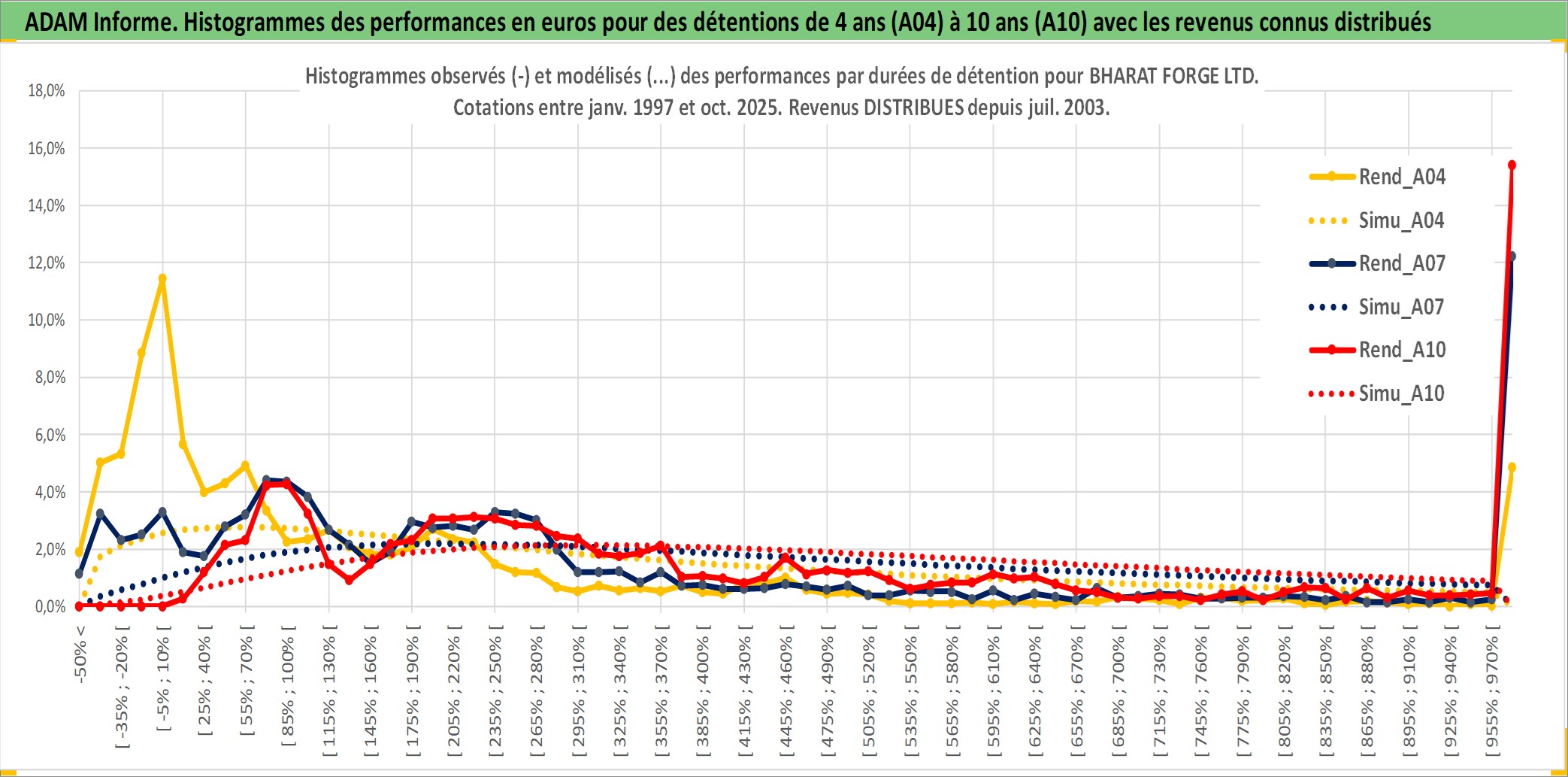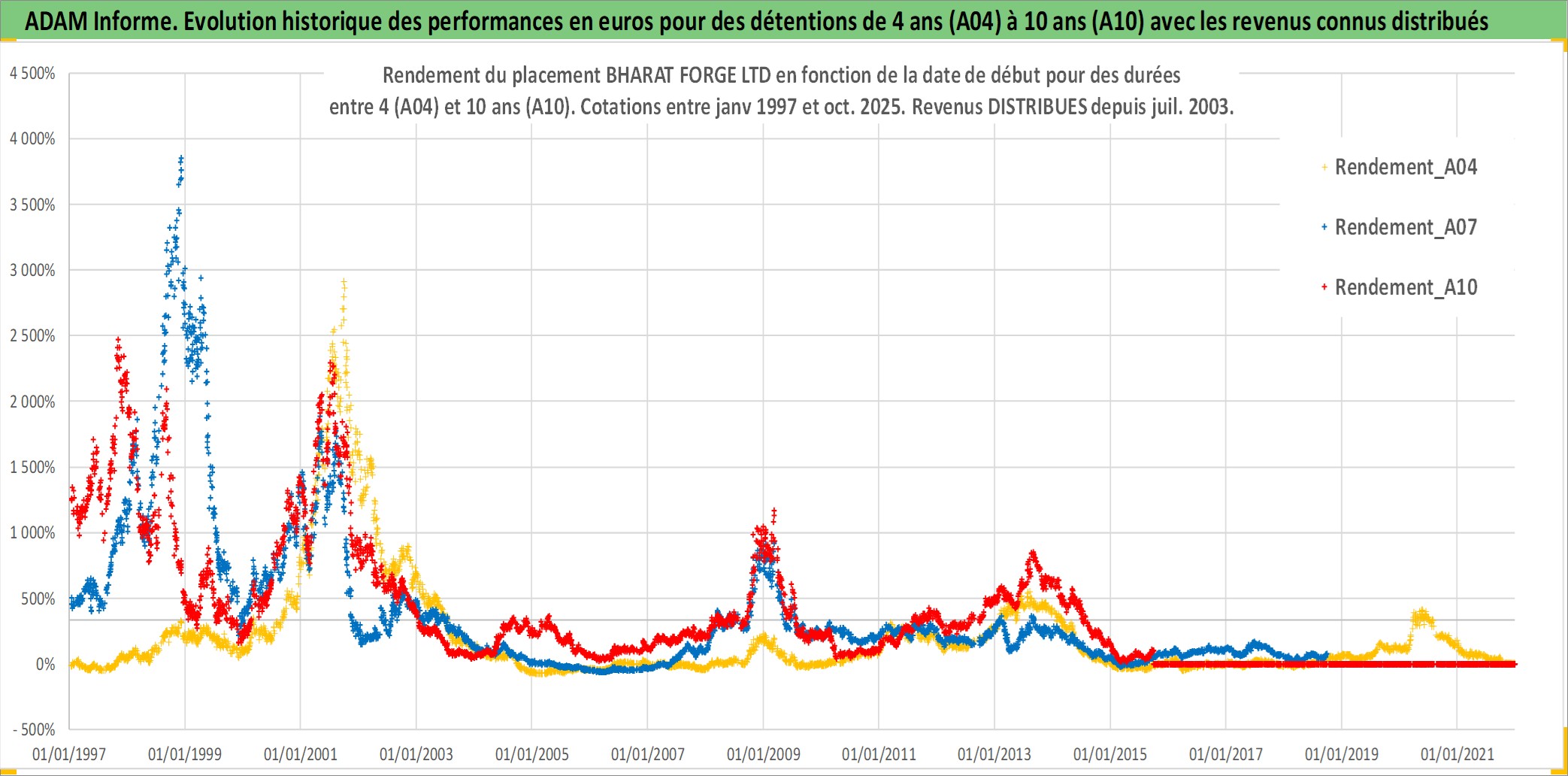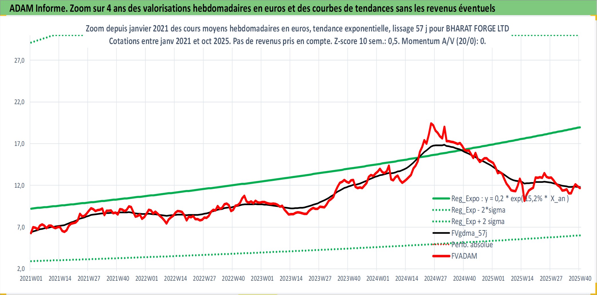 Site dédié aux investisseursPage dédiée sur site financeAnalyse des valorisations hebdomadaires de l'action BHARAT FORGE LTD. Cet actif est cote en INR. Les valorisations sont en contrevaleur EURO et couvrent les semaines 1997W01 a 2025W40. Les revenus de cet actif financier sont pris en compte depuis la semaine 2003W27. La note ESG de cet actif n'est pas connue.