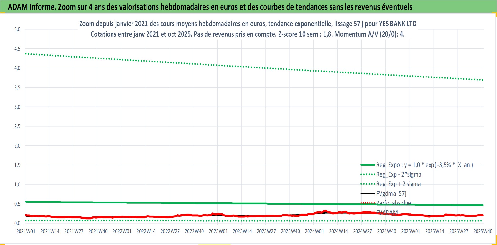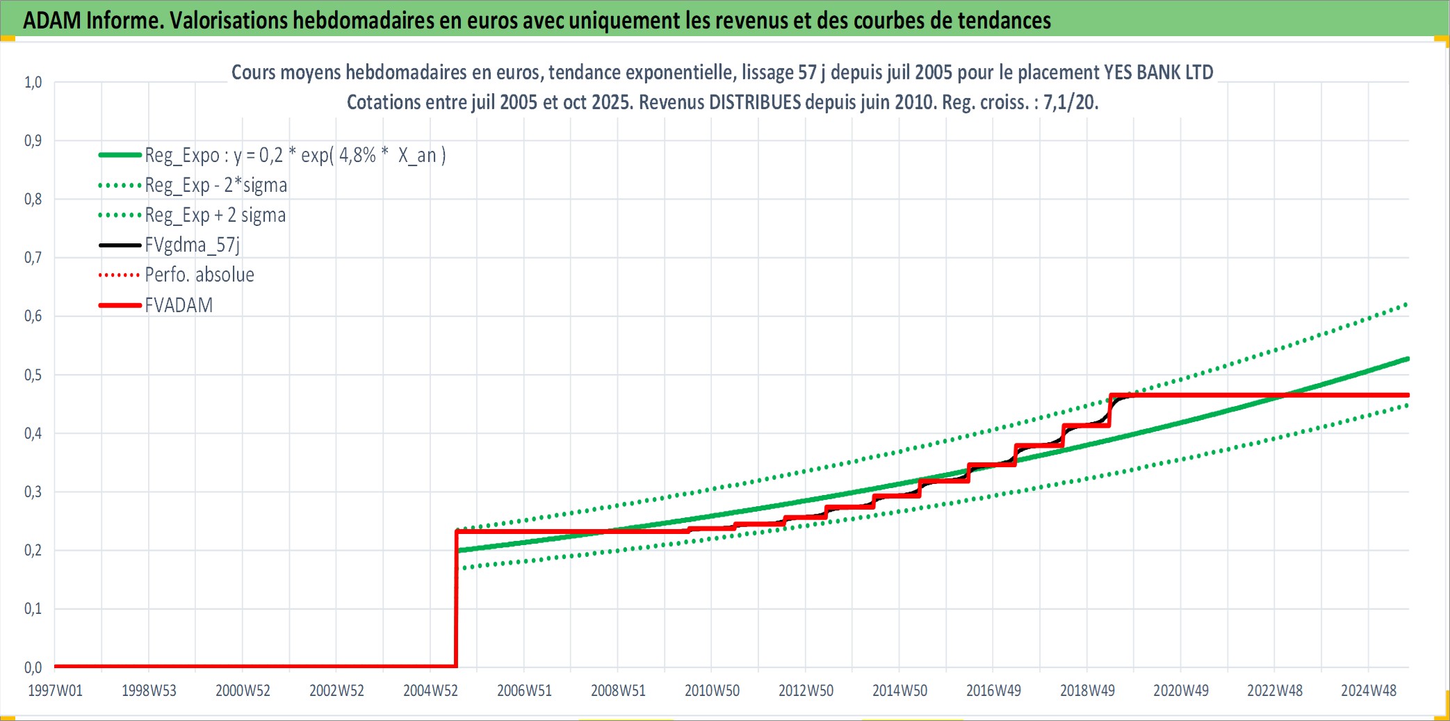 Site dédié aux investisseursPage dédiée sur site financeAnalyse des valorisations hebdomadaires de l'action YES BANK LTD. Cet actif est cote en INR. Les valorisations sont en contrevaleur EURO et couvrent les semaines 2005W28 a 2025W40. Les revenus de cet actif financier sont pris en compte depuis la semaine 2010W25. La note globale ESG de cet actif est estimee a 7.0 (apres rebasage entre 0 et 20).
