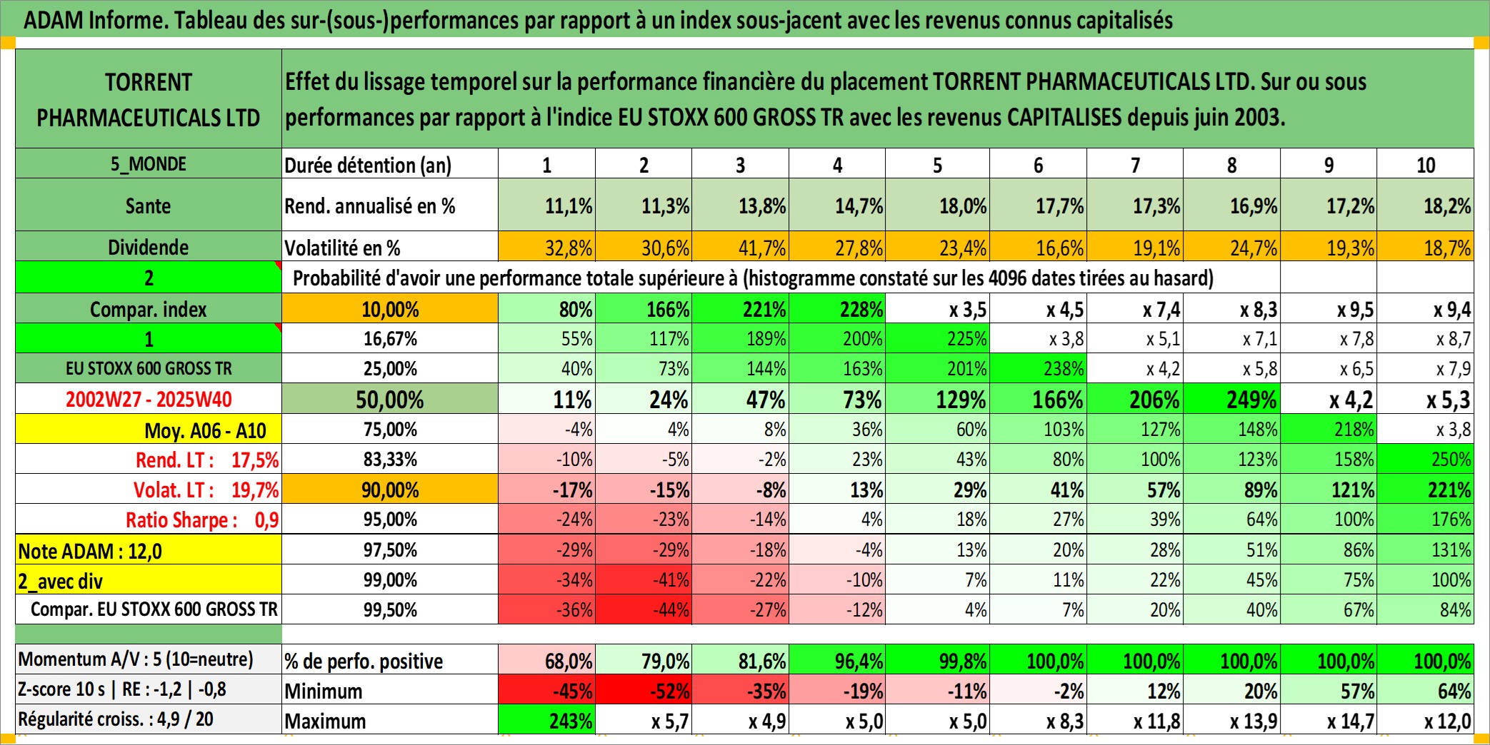 Site dédié aux investisseursPage dédiée sur site financeAnalyse des valorisations hebdomadaires de l'action TORRENT PHARMACEUTICALS LTD. Cet actif est cote en INR. Les valorisations sont en contrevaleur EURO et couvrent les semaines 2002W27 a 2025W40. Les revenus de cet actif financier sont pris en compte depuis la semaine 2003W24. La note ESG de cet actif n'est pas connue.