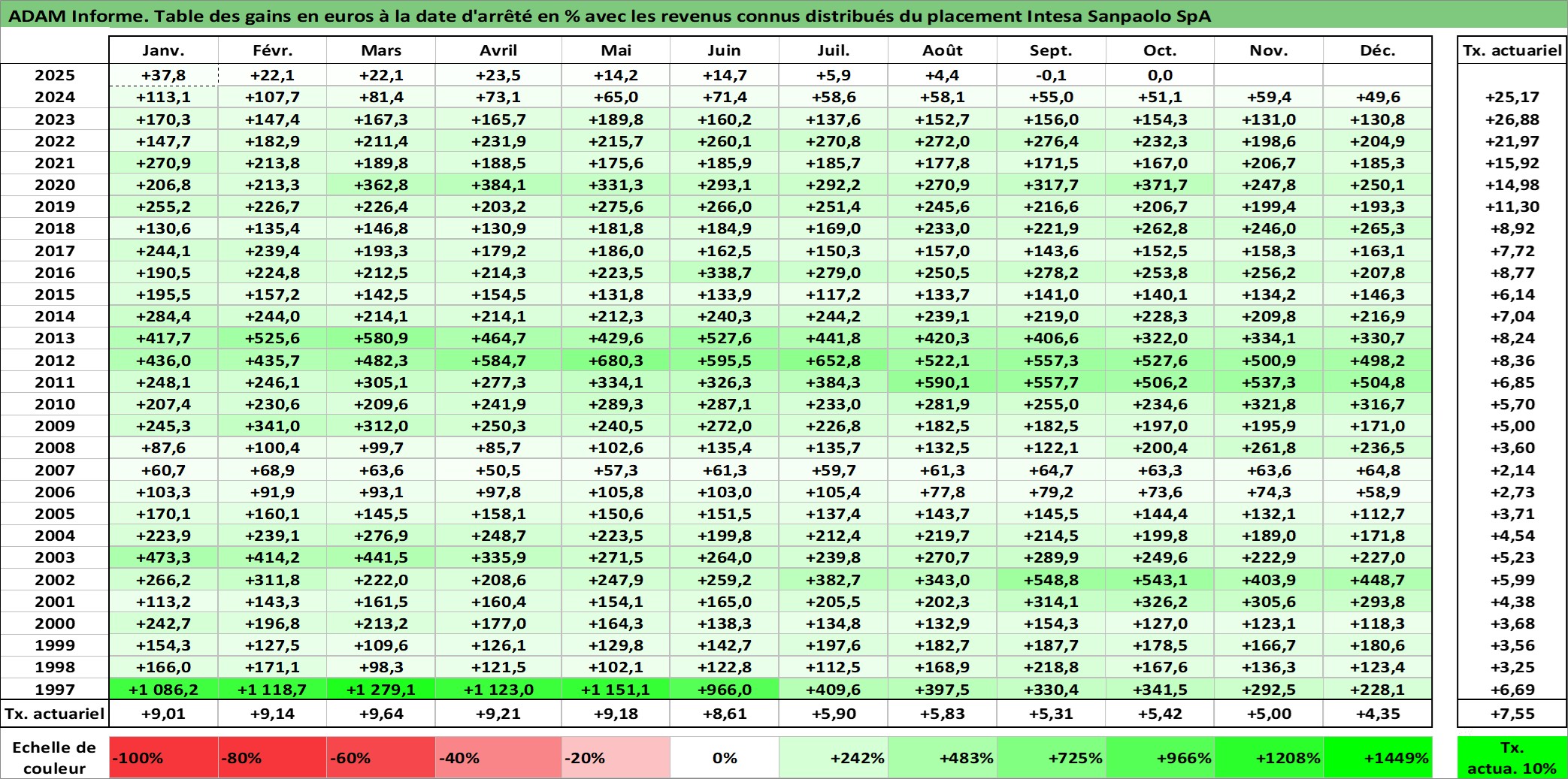 Dernière perfo 10 ans en %