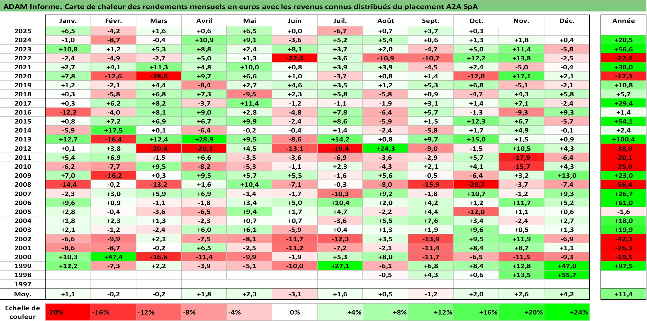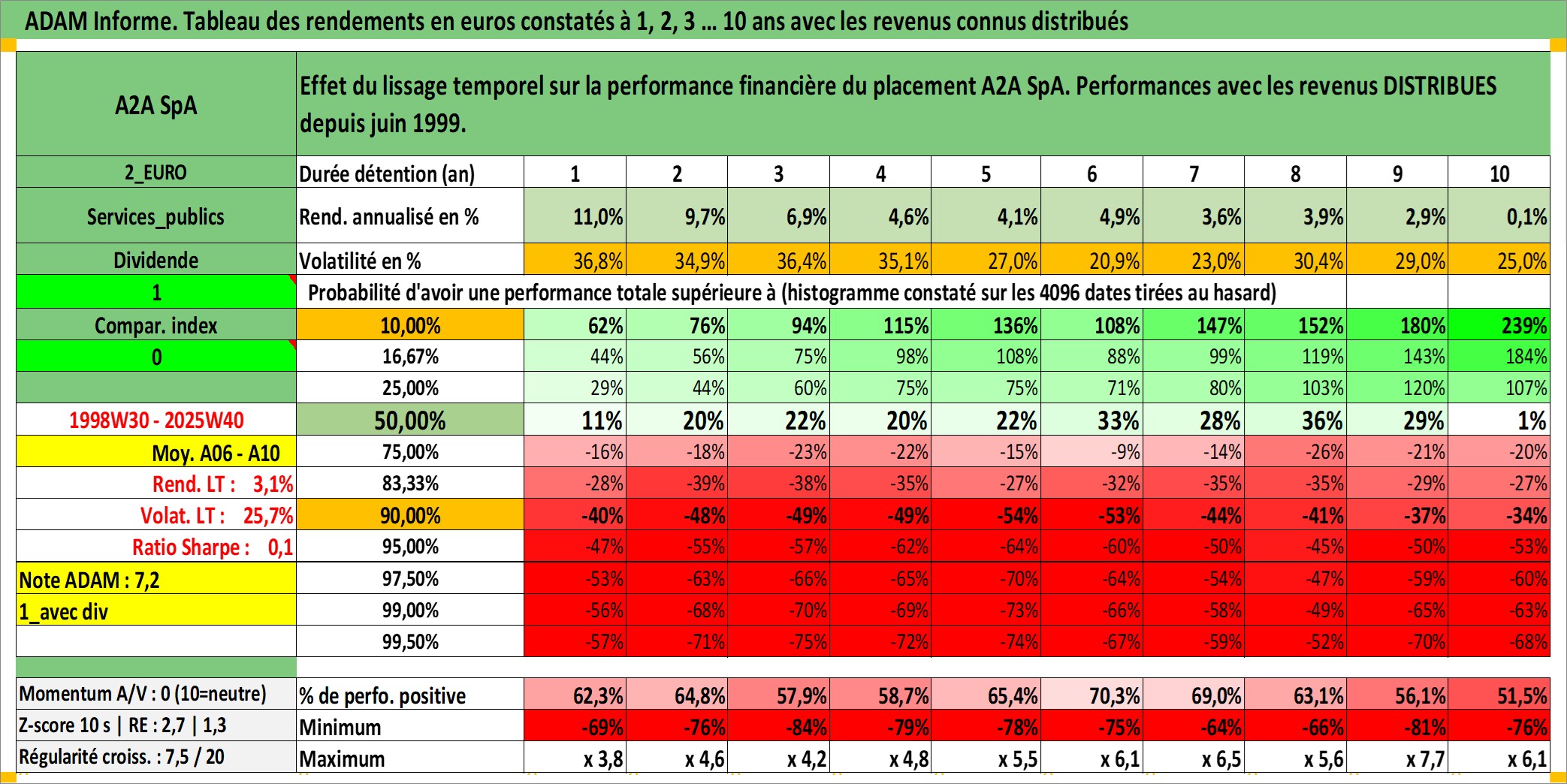 Site dédié aux investisseursPage dédiée sur site financeAnalyse des valorisations hebdomadaires de l'action A2A SpA. Cet actif est cote en EUR. Les valorisations couvrent les semaines 1998W30 a 2025W40. Les revenus de cet actif financier sont pris en compte depuis la semaine 1999W25. La note ESG de cet actif n'est pas connue.