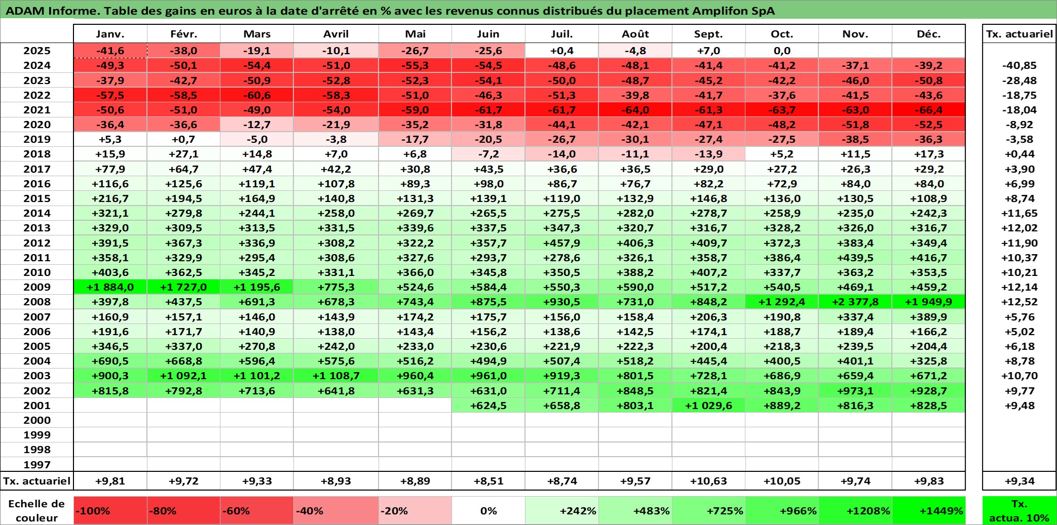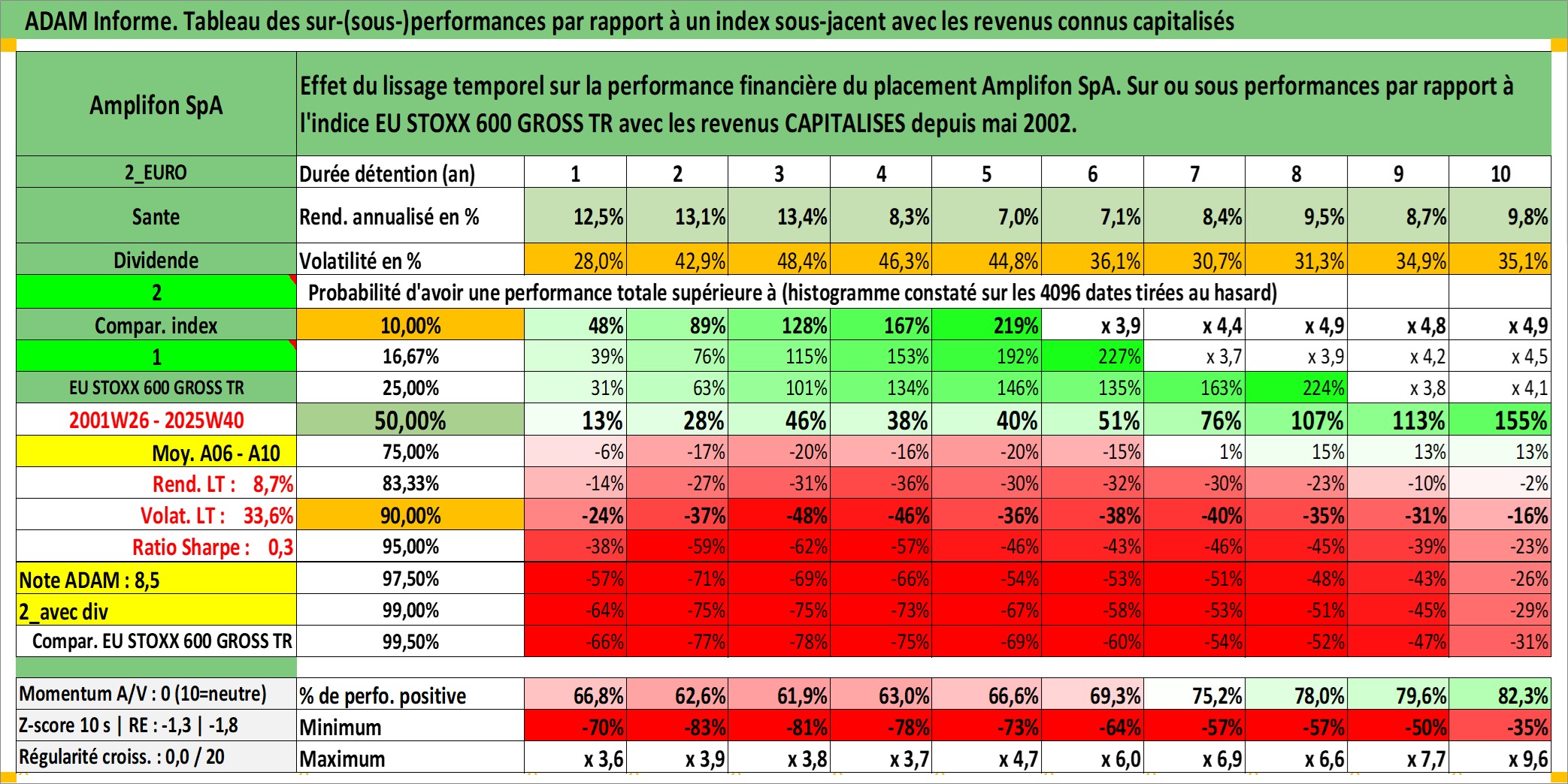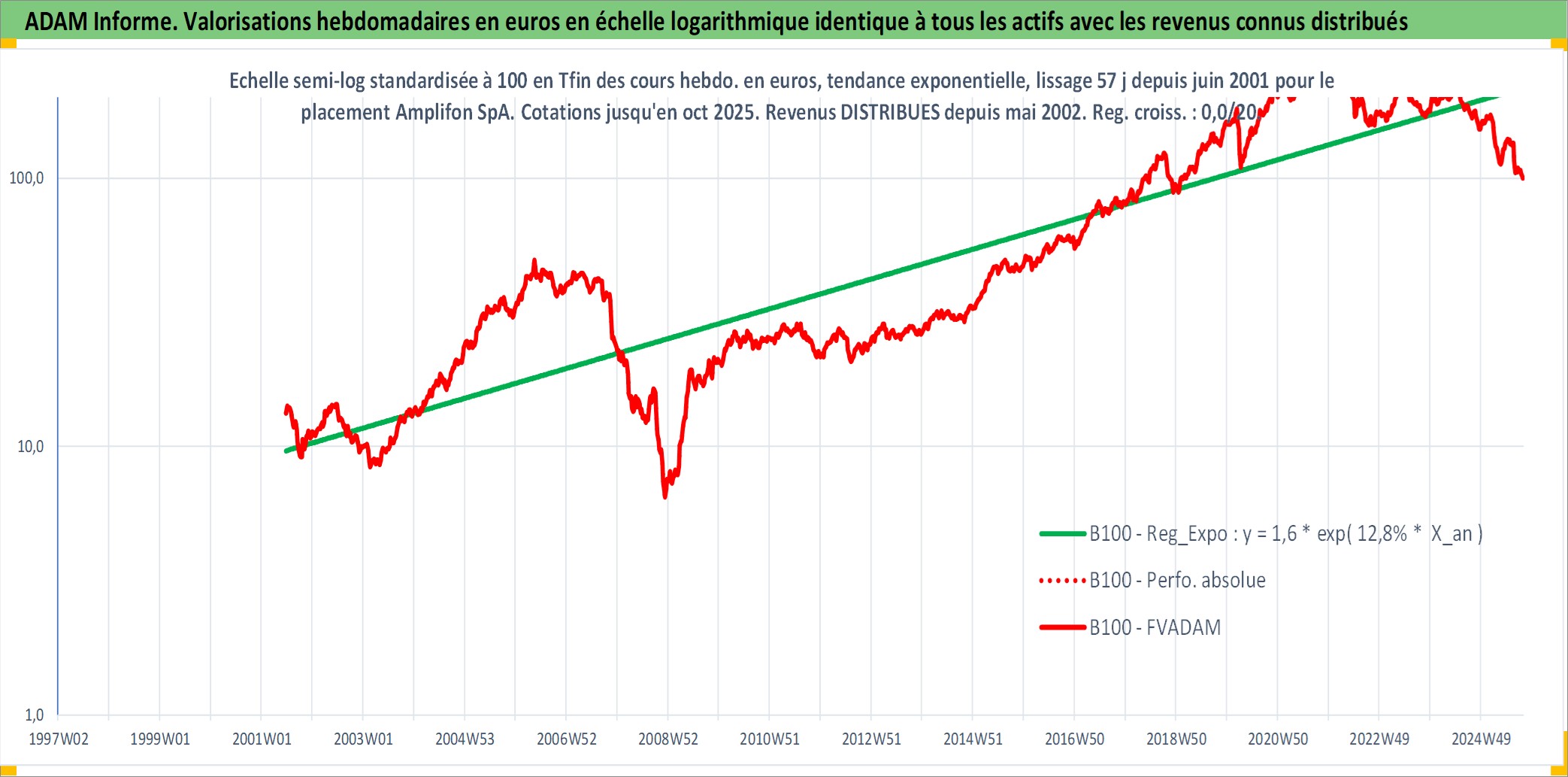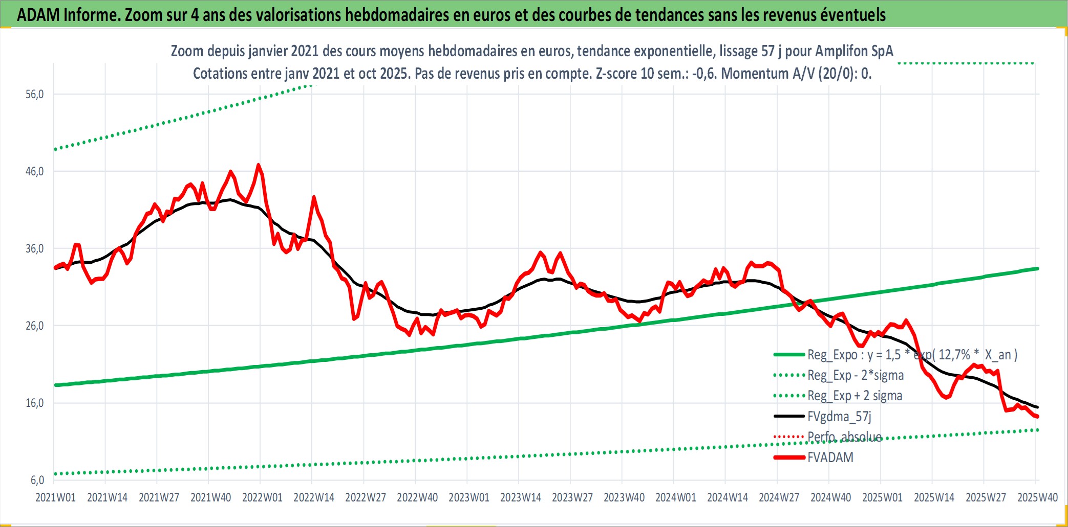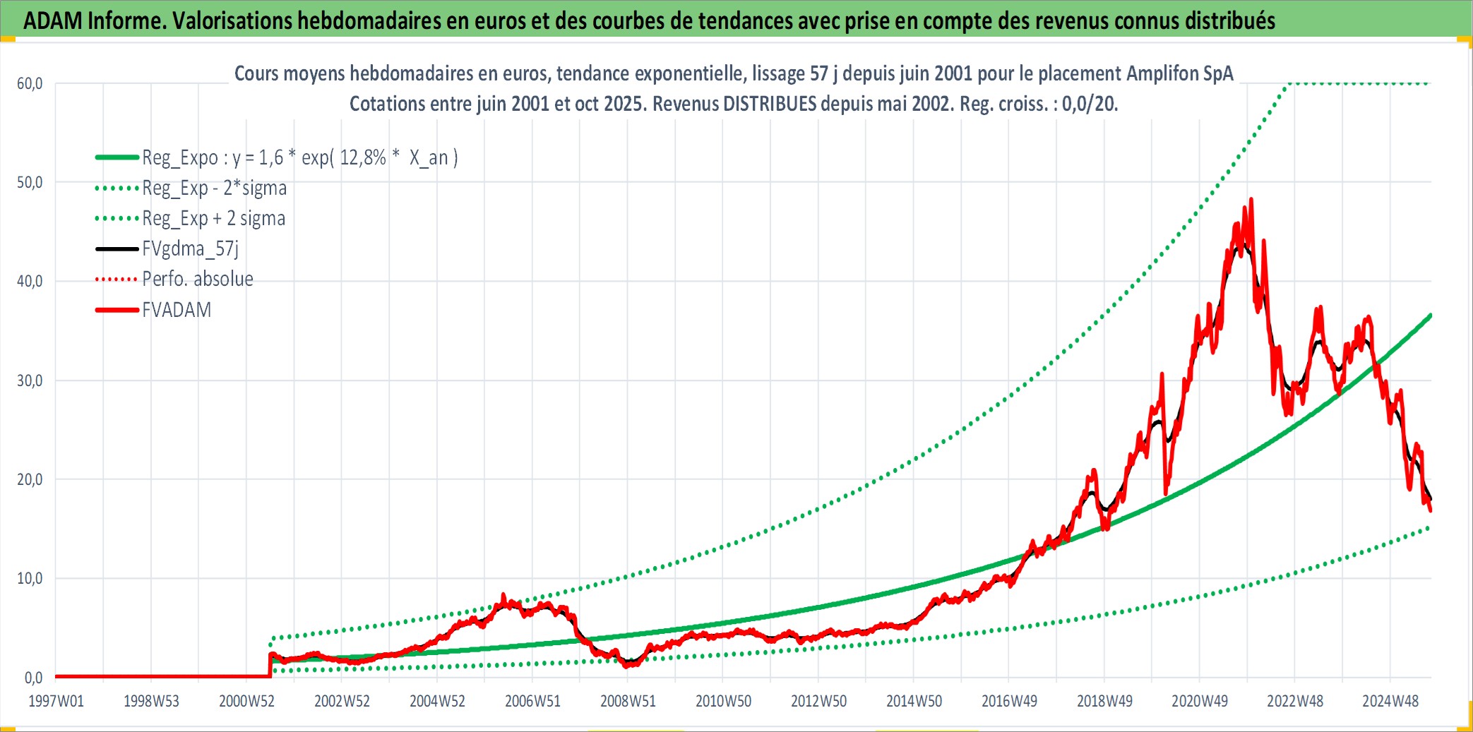 Site dédié aux investisseursPage dédiée sur site financeAnalyse des valorisations hebdomadaires de l'action Amplifon SpA. Cet actif est cote en EUR. Les valorisations couvrent les semaines 2001W26 a 2025W40. Les revenus de cet actif financier sont pris en compte depuis la semaine 2002W19. La note ESG de cet actif n'est pas connue.
