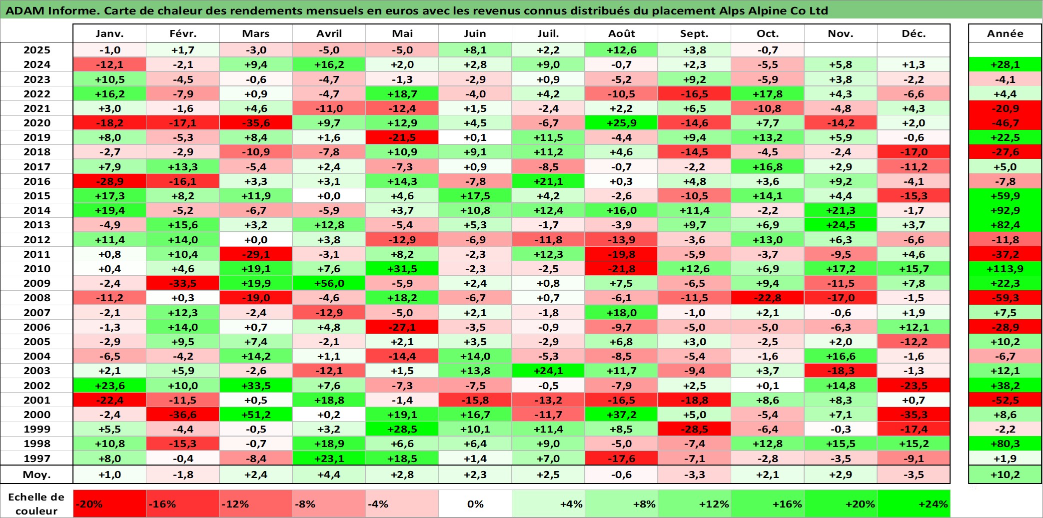 Dernière perfo 10 ans en %