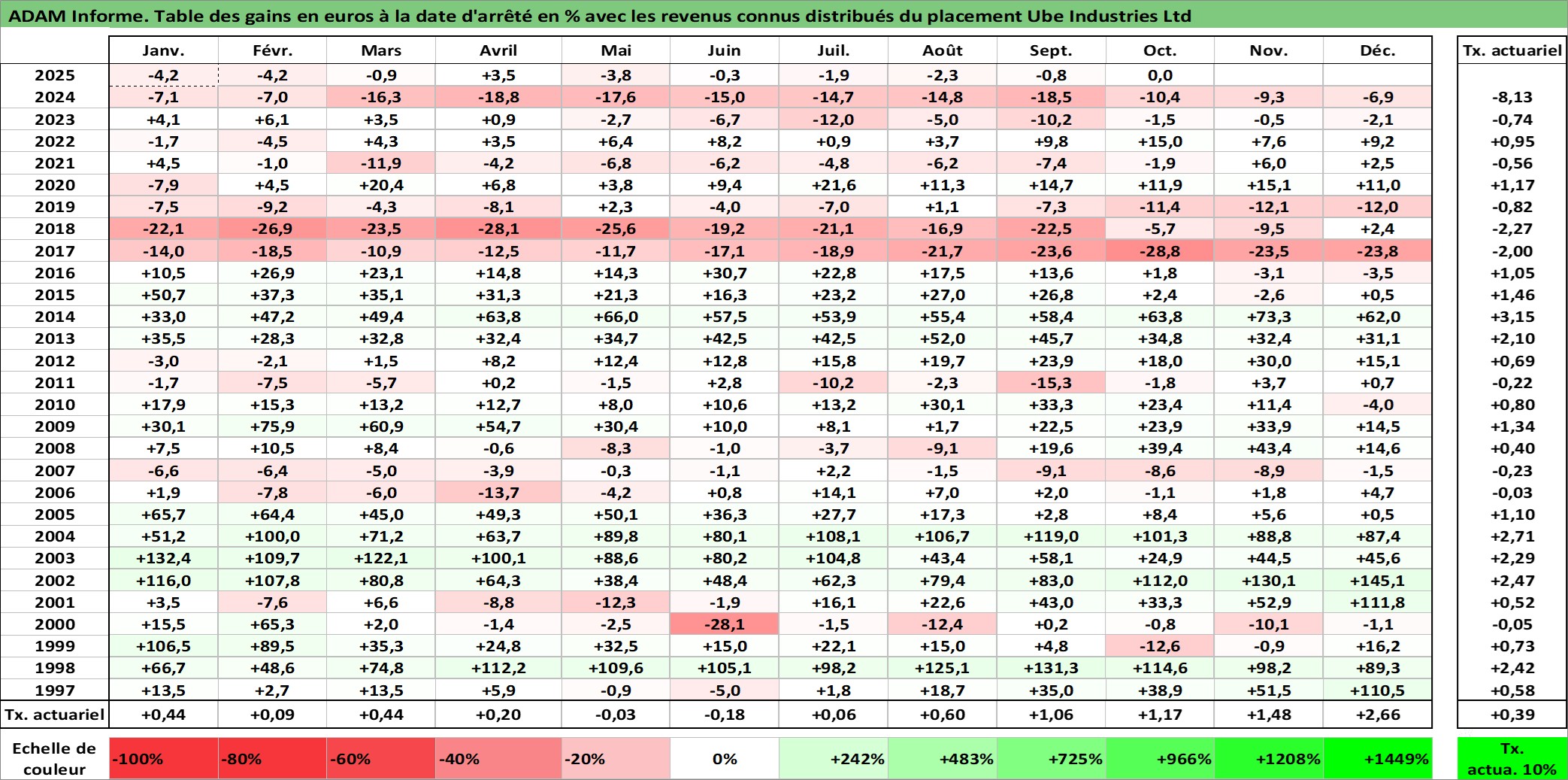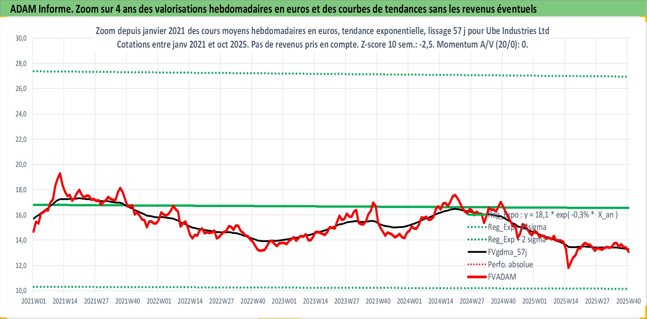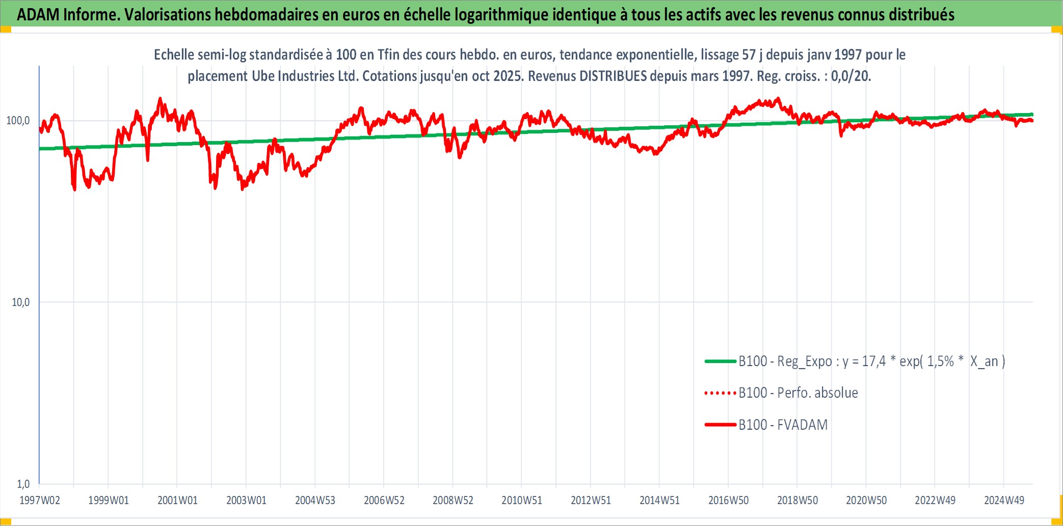 Site dédié aux investisseursPage dédiée sur site financeAnalyse des valorisations hebdomadaires de l'action Ube Industries Ltd. Cet actif est cote en JPY. Les valorisations sont en contrevaleur EURO et couvrent les semaines 1997W01 a 2025W40. Les revenus de cet actif financier sont pris en compte depuis la semaine 1997W13. La note ESG de cet actif n'est pas connue.