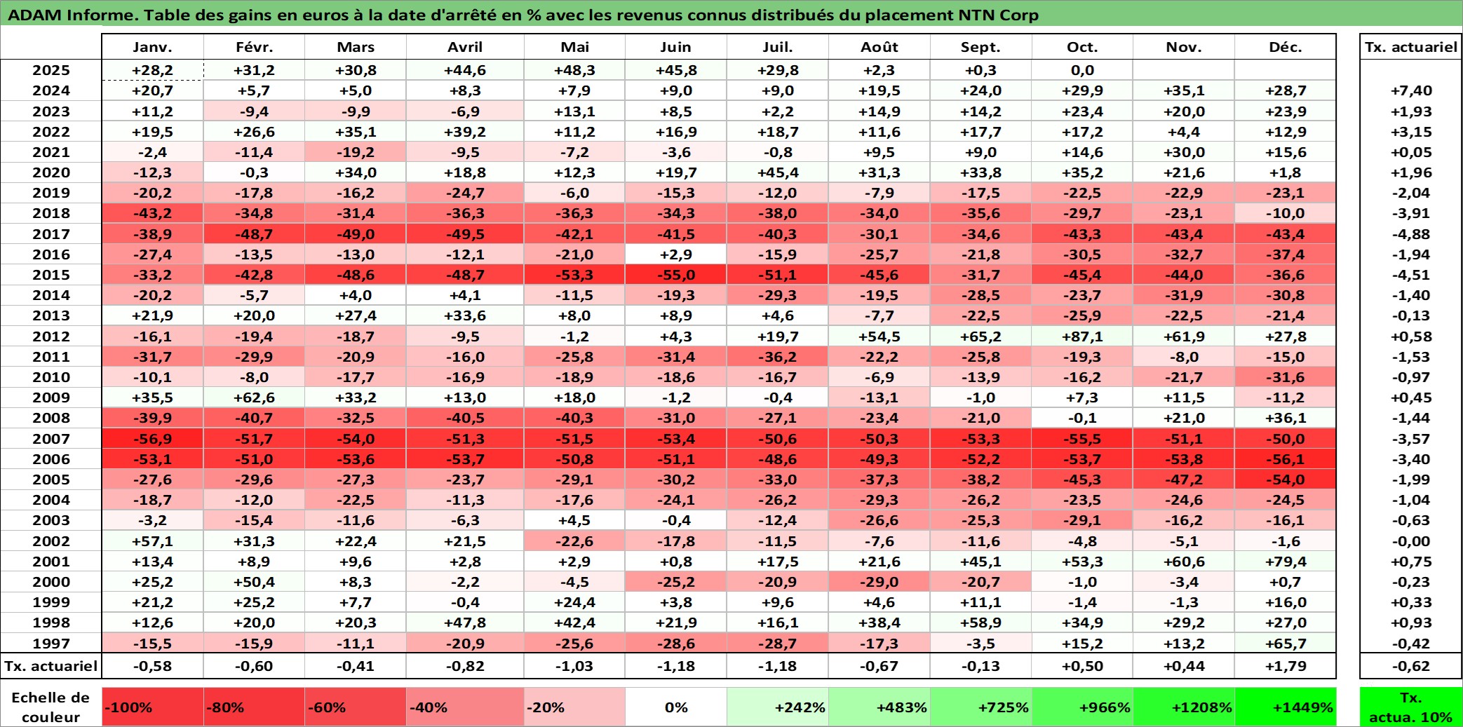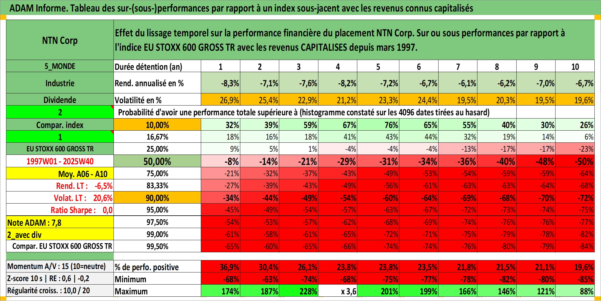 Site dédié aux investisseursPage dédiée sur site financeAnalyse des valorisations hebdomadaires de l'action NTN Corp. Cet actif est cote en JPY. Les valorisations sont en contrevaleur EURO et couvrent les semaines 1997W01 a 2025W40. Les revenus de cet actif financier sont pris en compte depuis la semaine 1997W13. La note ESG de cet actif n'est pas connue.