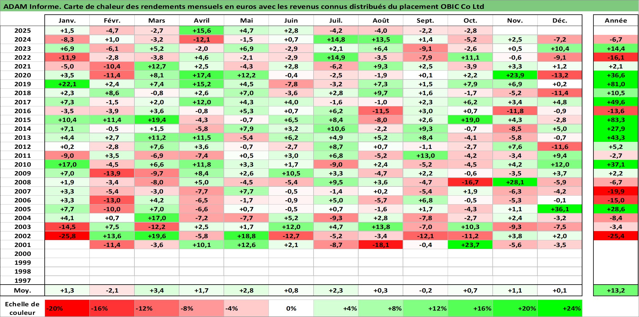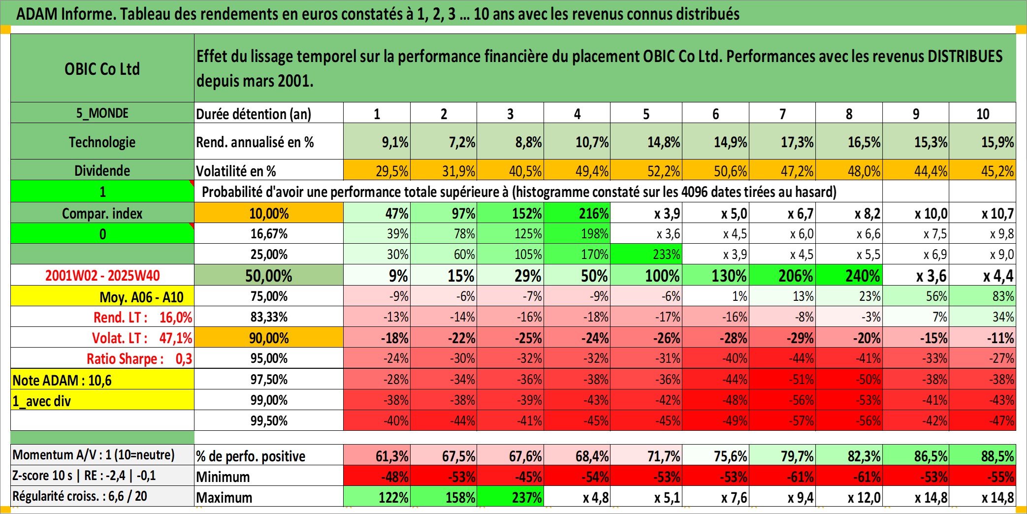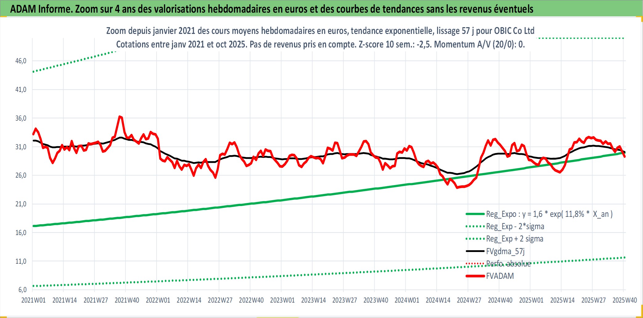 Site dédié aux investisseursPage dédiée sur site financeAnalyse des valorisations hebdomadaires de l'action OBIC Co Ltd. Cet actif est cote en JPY. Les valorisations sont en contrevaleur EURO et couvrent les semaines 2001W02 a 2025W40. Les revenus de cet actif financier sont pris en compte depuis la semaine 2001W13. La note ESG de cet actif n'est pas connue.