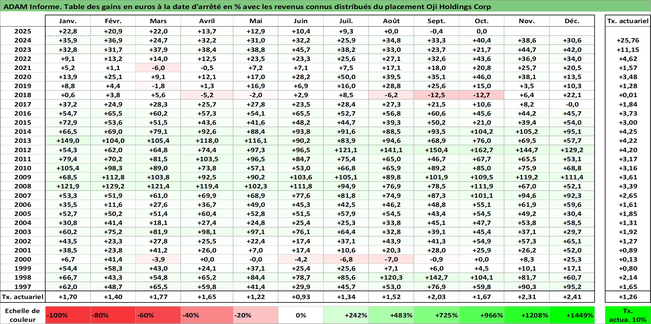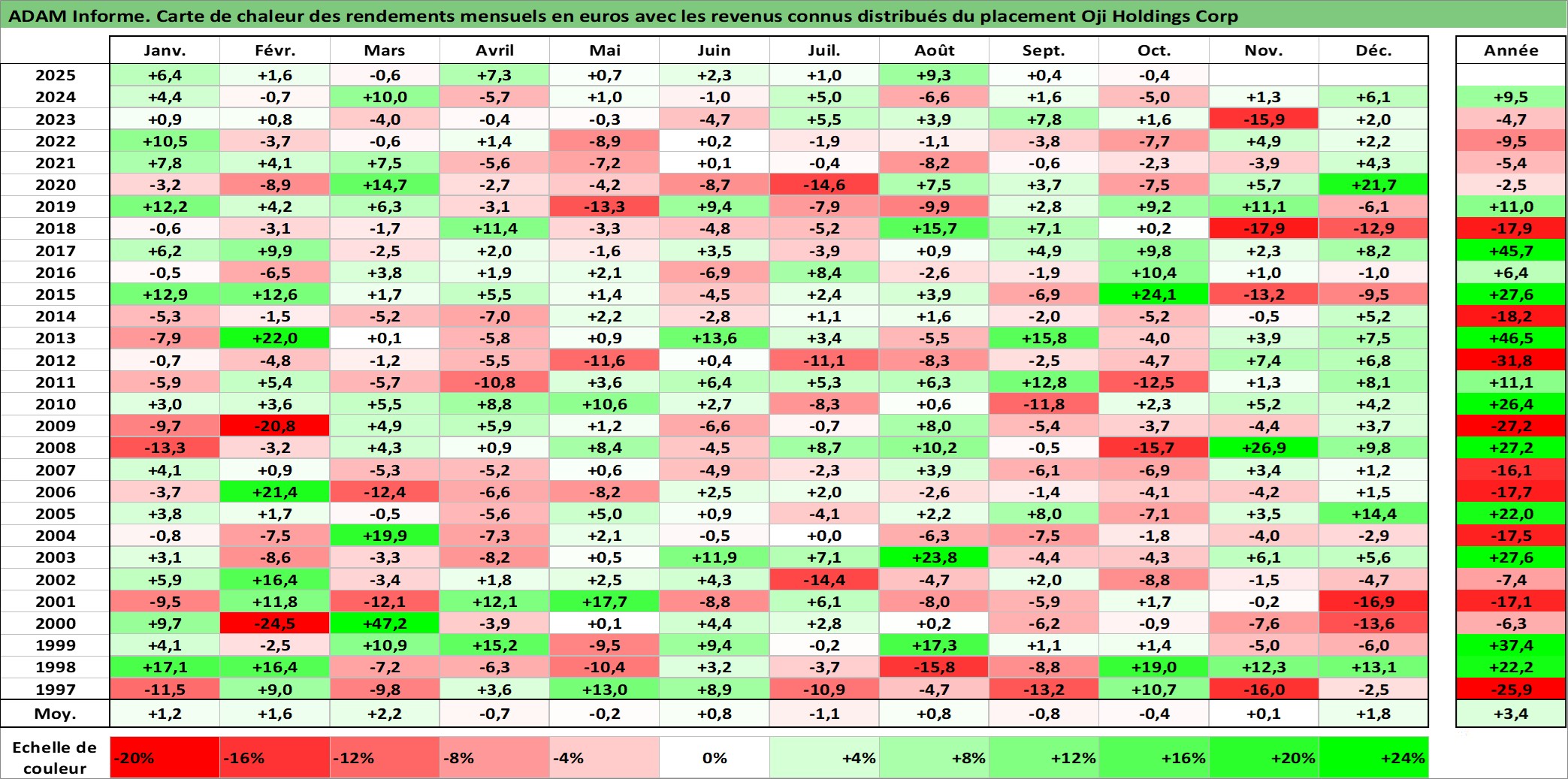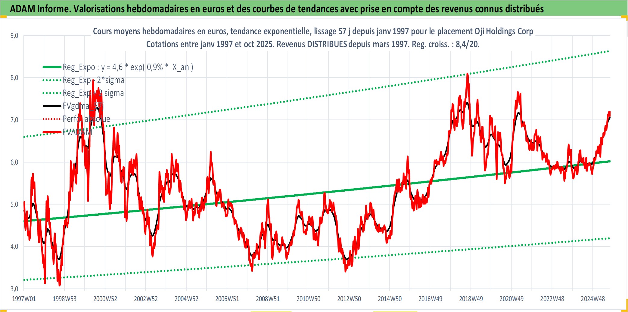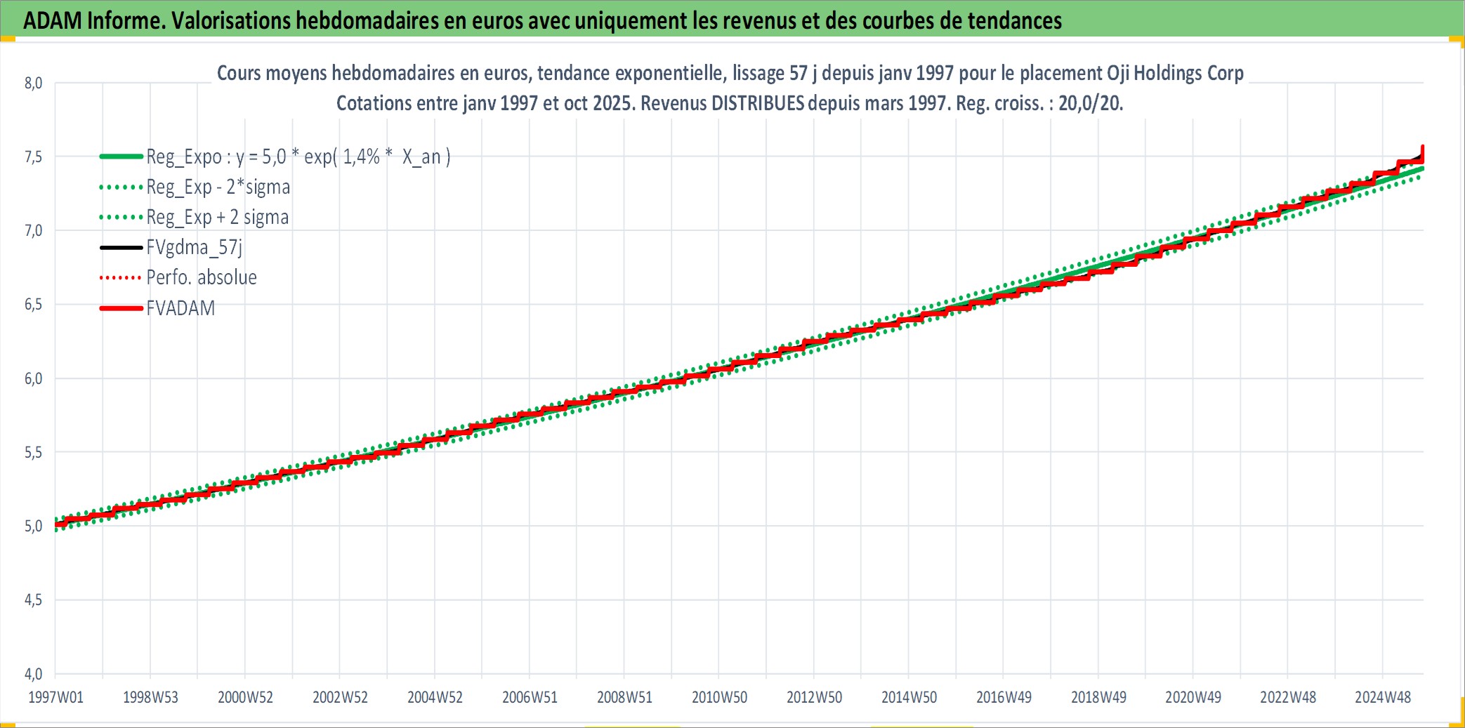Site dédié aux investisseursPage dédiée sur site financeAnalyse des valorisations hebdomadaires de l'action Oji Holdings Corp. Cet actif est cote en JPY. Les valorisations sont en contrevaleur EURO et couvrent les semaines 1997W01 a 2025W40. Les revenus de cet actif financier sont pris en compte depuis la semaine 1997W13. La note ESG de cet actif n'est pas connue.