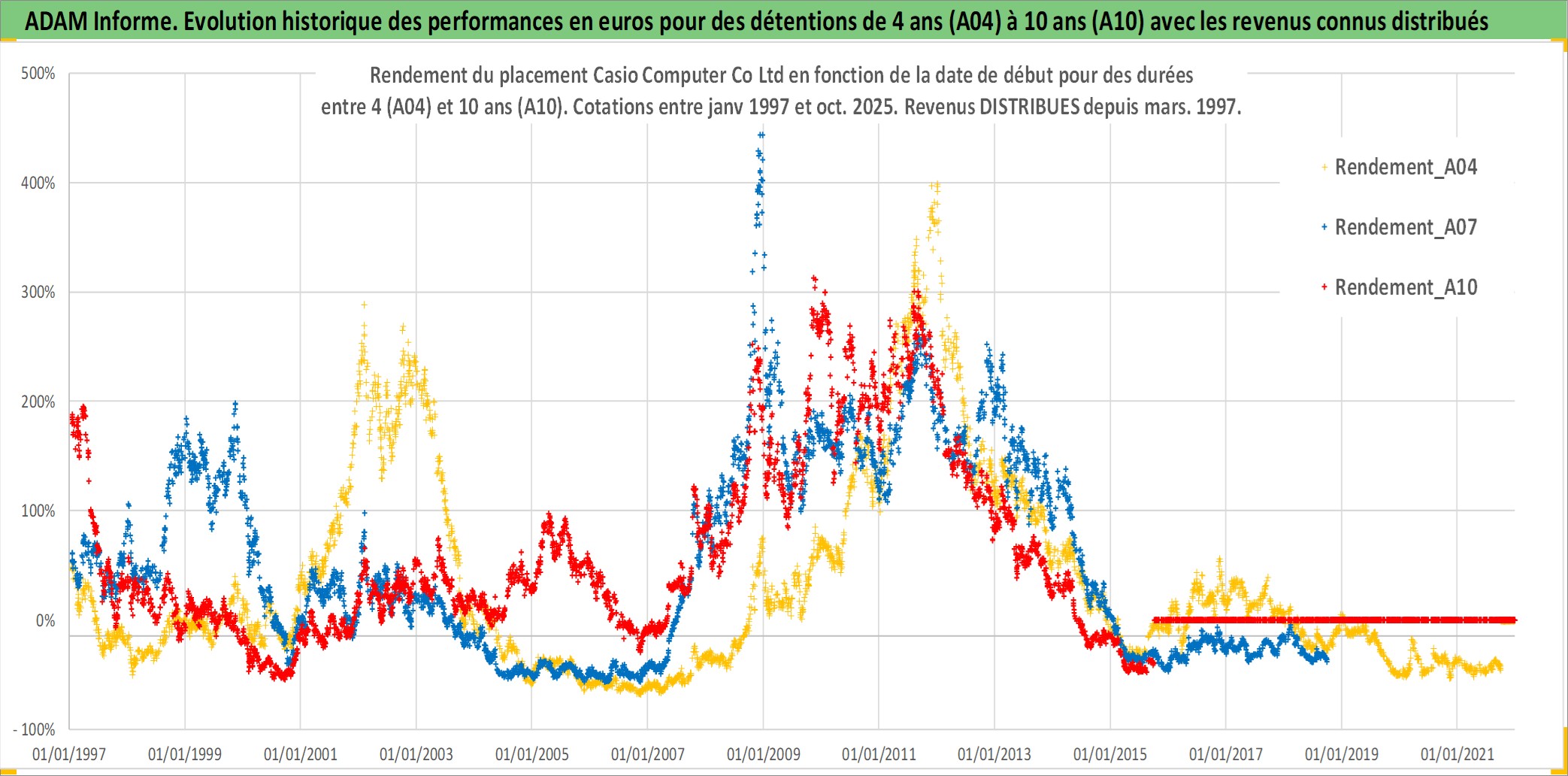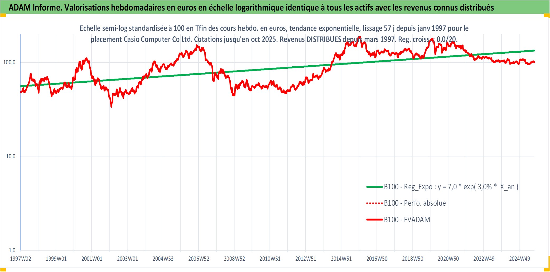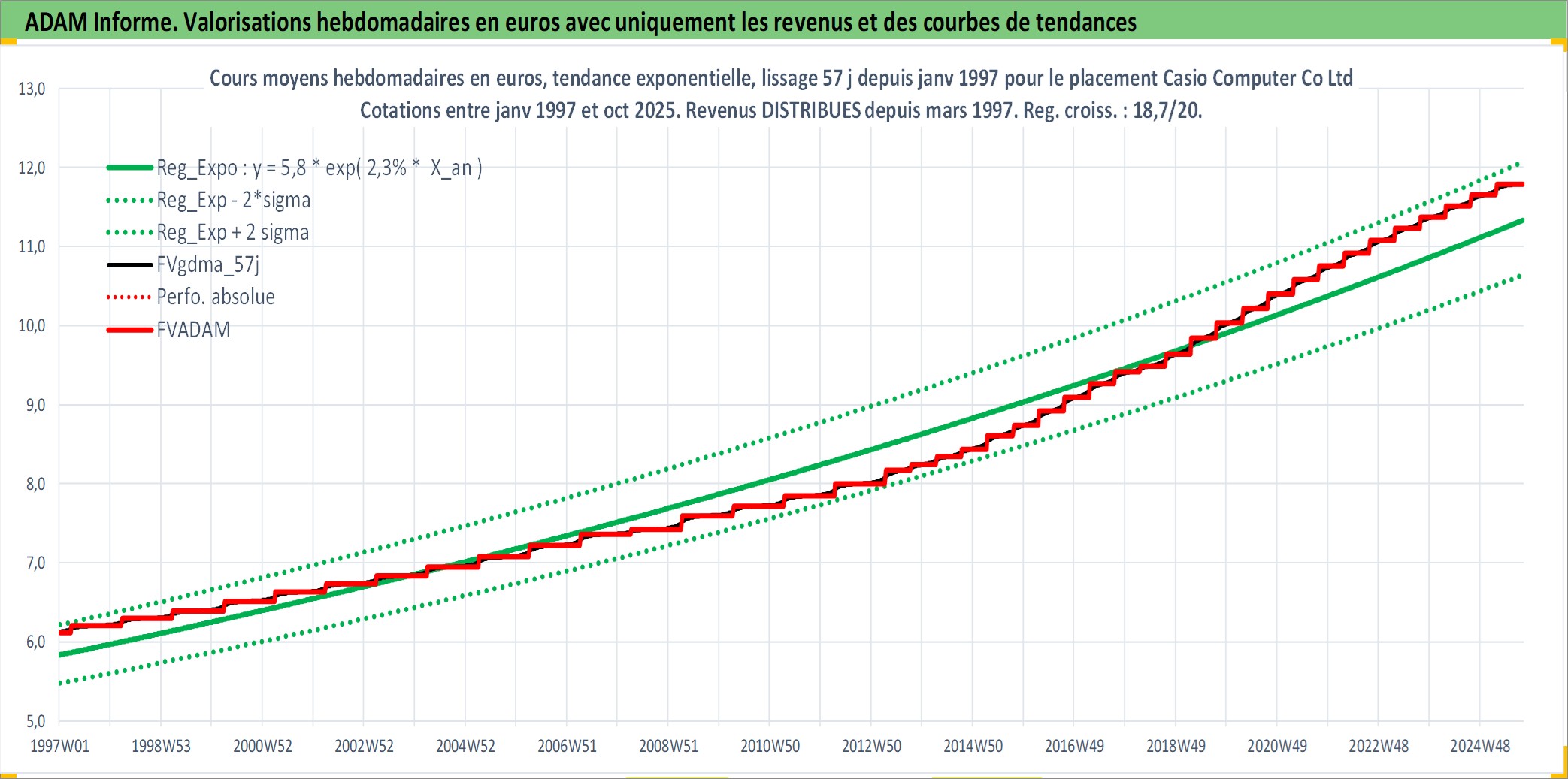 Site dédié aux investisseursPage dédiée sur site financeAnalyse des valorisations hebdomadaires de l'action Casio Computer Co Ltd. Cet actif est cote en JPY. Les valorisations sont en contrevaleur EURO et couvrent les semaines 1997W01 a 2025W40. Les revenus de cet actif financier sont pris en compte depuis la semaine 1997W13. La note ESG de cet actif n'est pas connue.