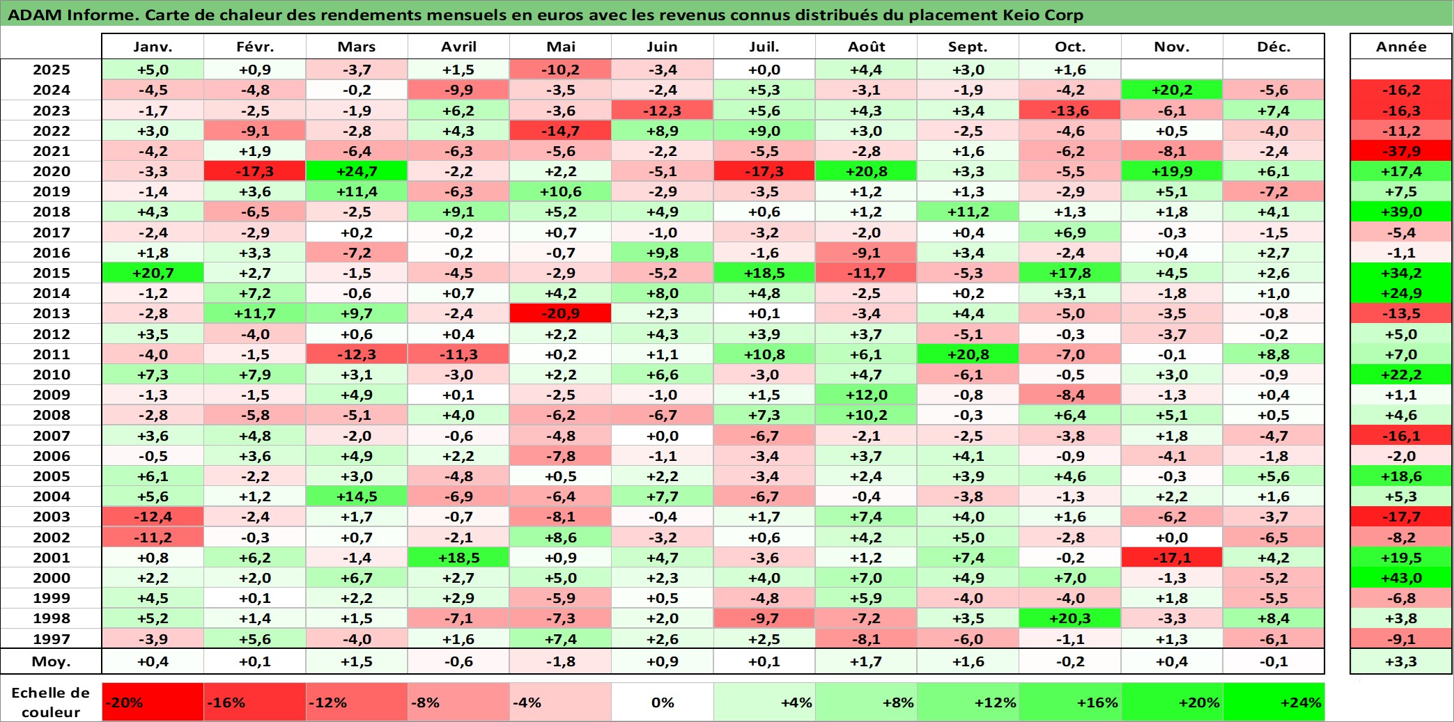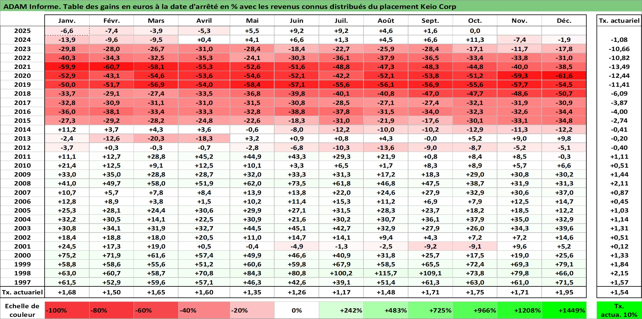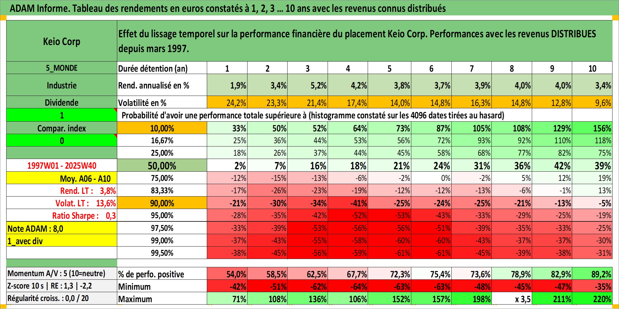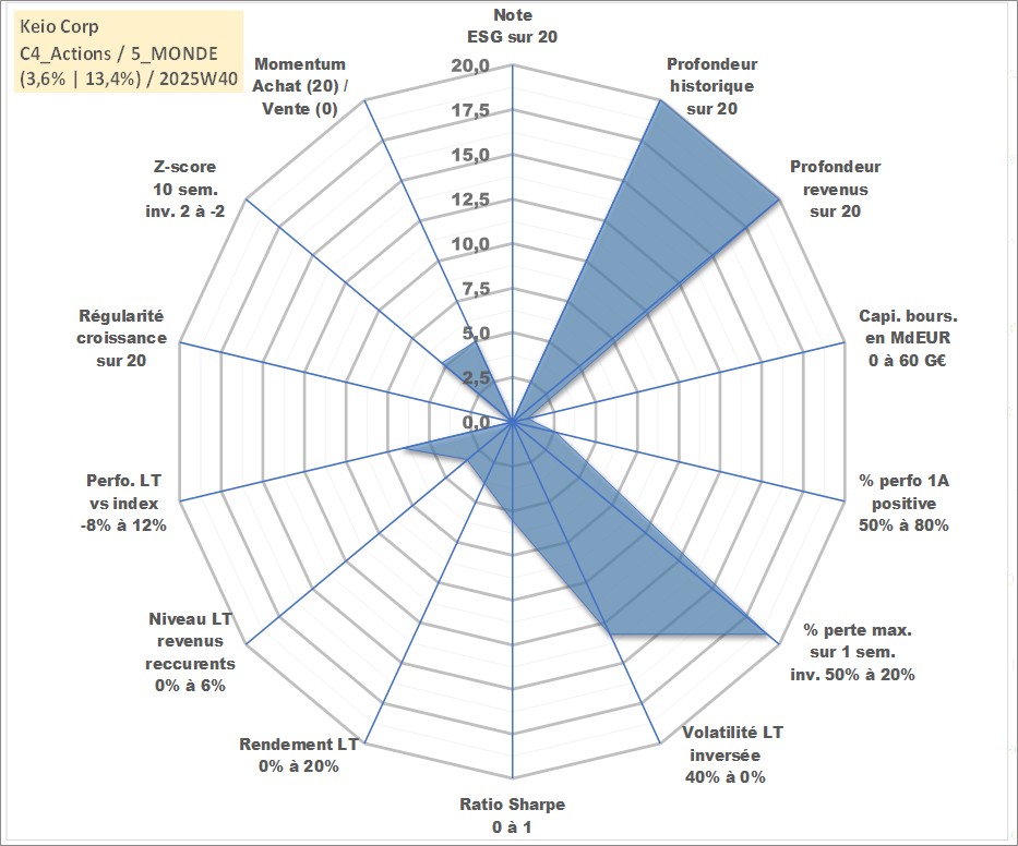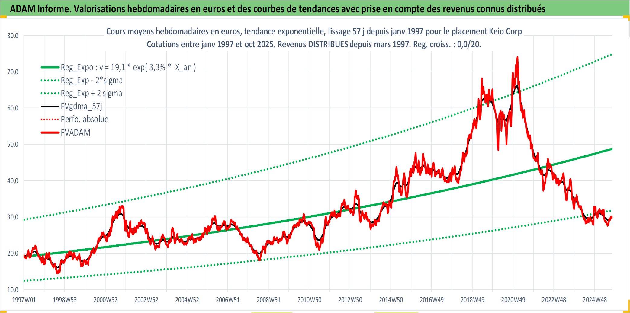 Site dédié aux investisseursPage dédiée sur site financeAnalyse des valorisations hebdomadaires de l'action Keio Corp. Cet actif est cote en JPY. Les valorisations sont en contrevaleur EURO et couvrent les semaines 1997W01 a 2025W40. Les revenus de cet actif financier sont pris en compte depuis la semaine 1997W13. La note ESG de cet actif n'est pas connue.