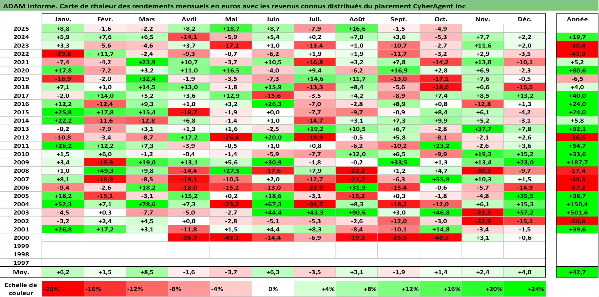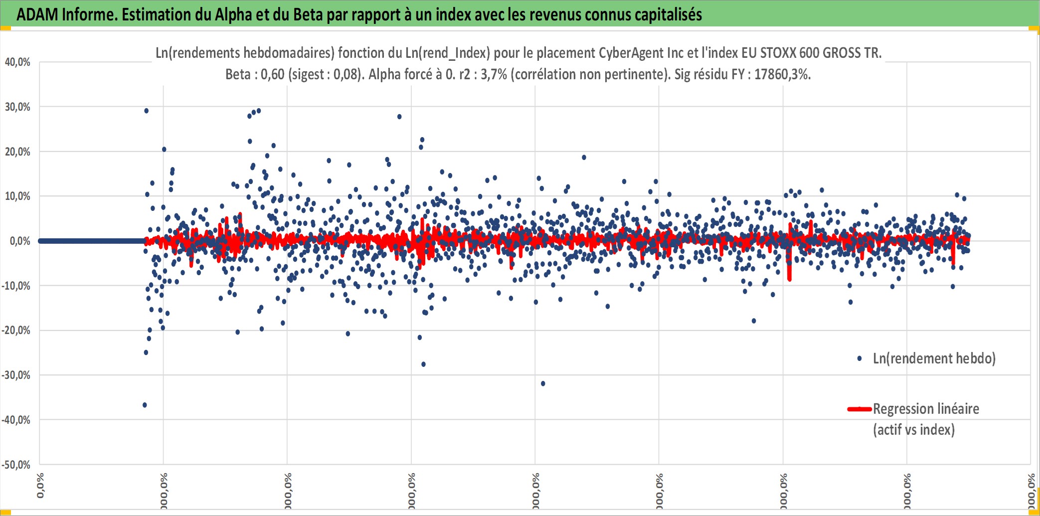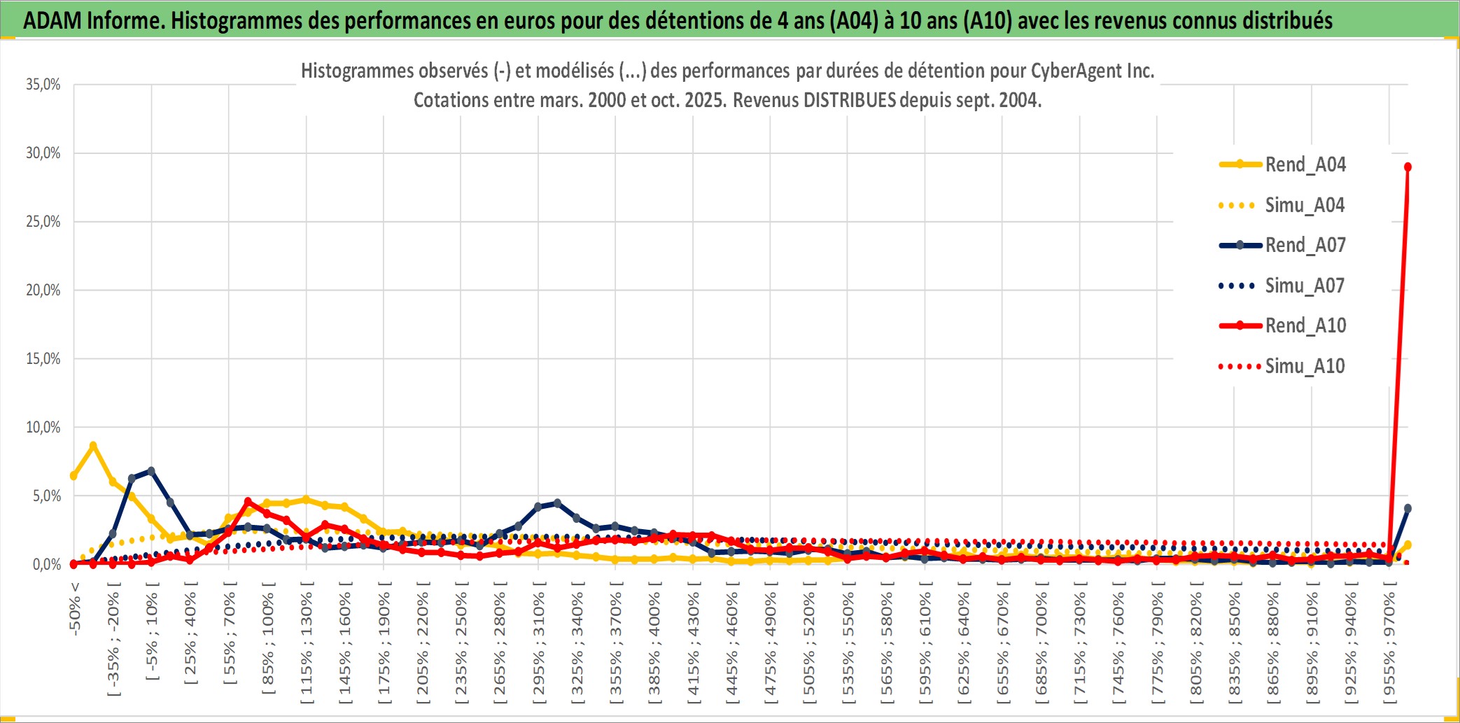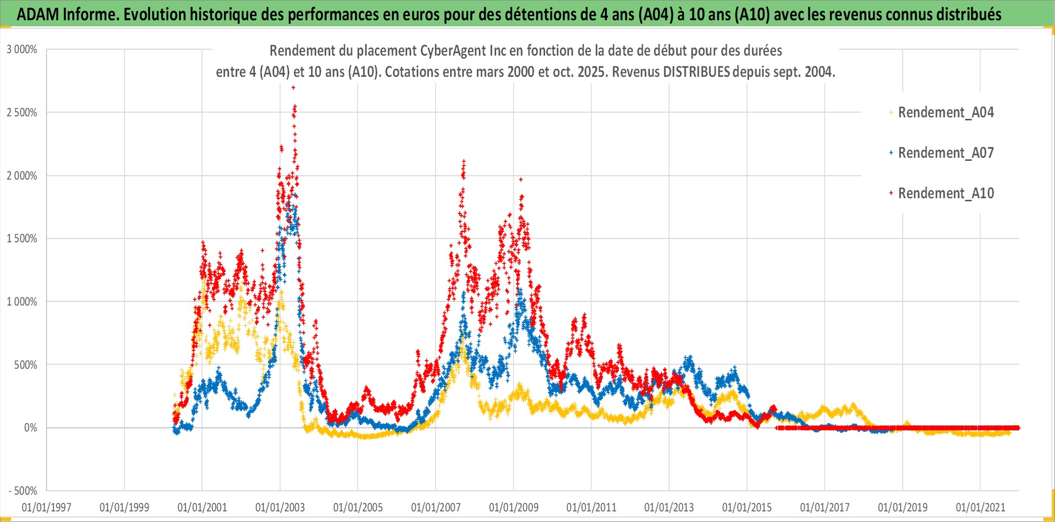 Site dédié aux investisseursPage dédiée sur site financeAnalyse des valorisations hebdomadaires de l'action CyberAgent Inc. Cet actif est cote en JPY. Les valorisations sont en contrevaleur EURO et couvrent les semaines 2000W13 a 2025W40. Les revenus de cet actif financier sont pris en compte depuis la semaine 2004W40. La note ESG de cet actif n'est pas connue.