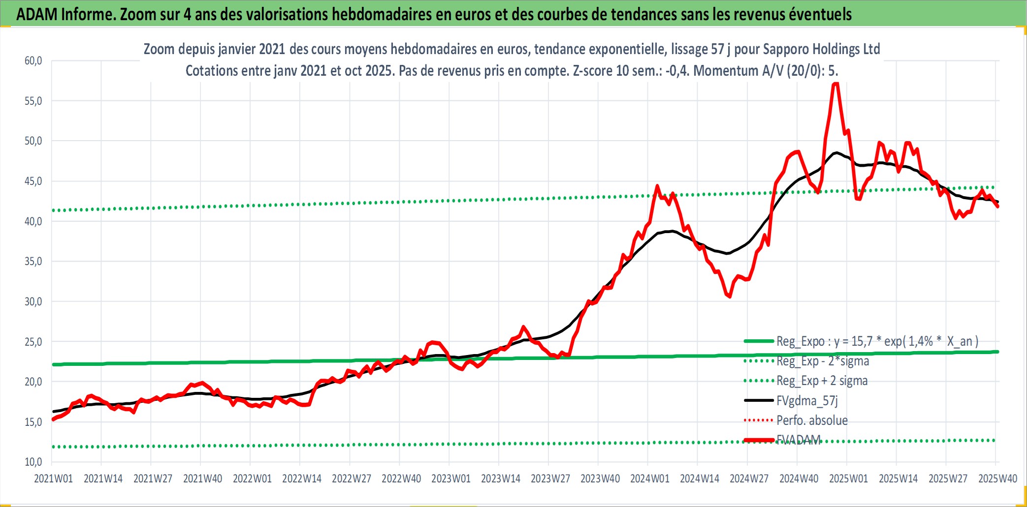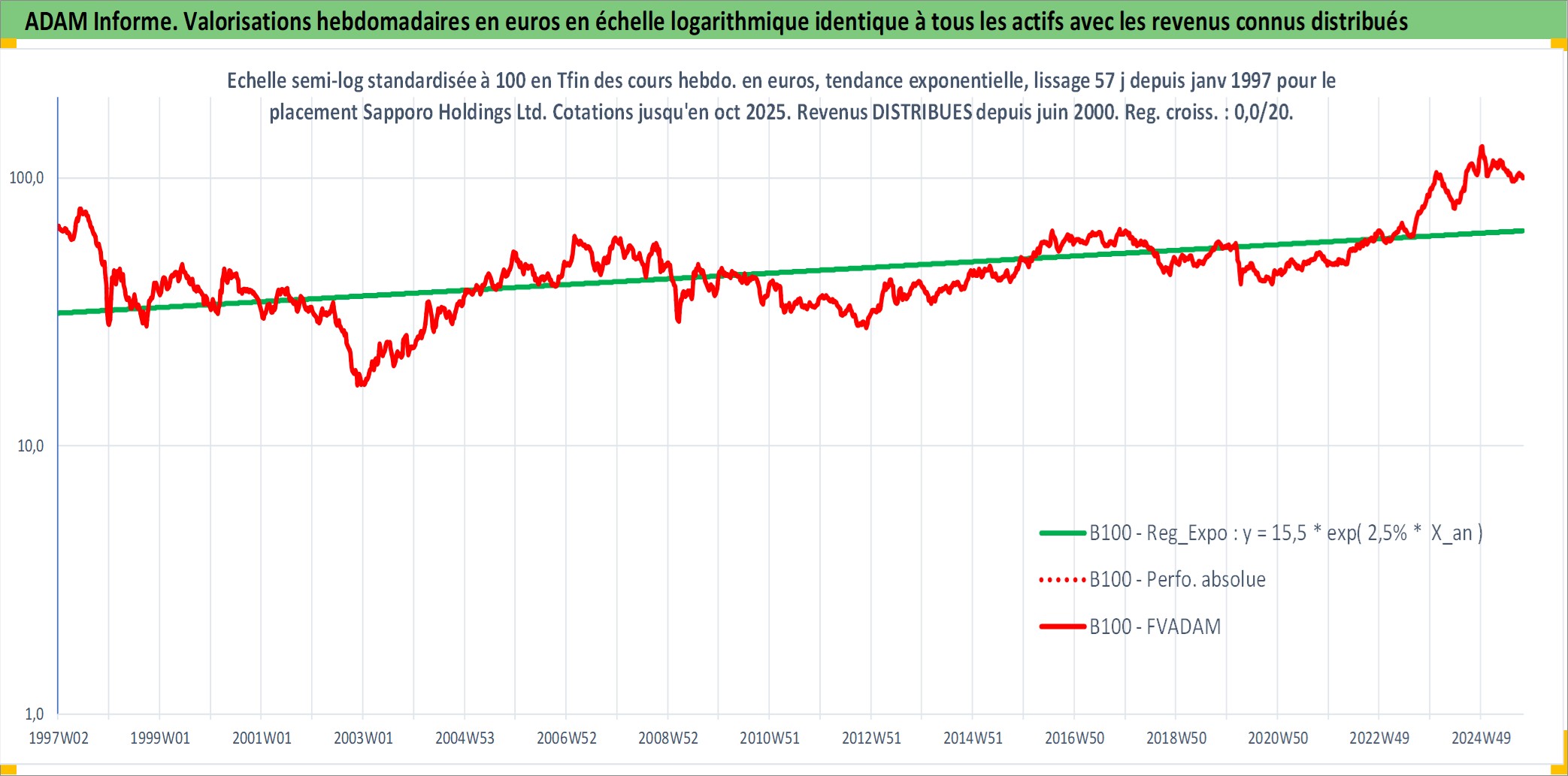 Site dédié aux investisseursPage dédiée sur site financeAnalyse des valorisations hebdomadaires de l'action Sapporo Holdings Ltd. Cet actif est cote en JPY. Les valorisations sont en contrevaleur EURO et couvrent les semaines 1997W01 a 2025W40. Les revenus de cet actif financier sont pris en compte depuis la semaine 2000W26. La note ESG de cet actif n'est pas connue.