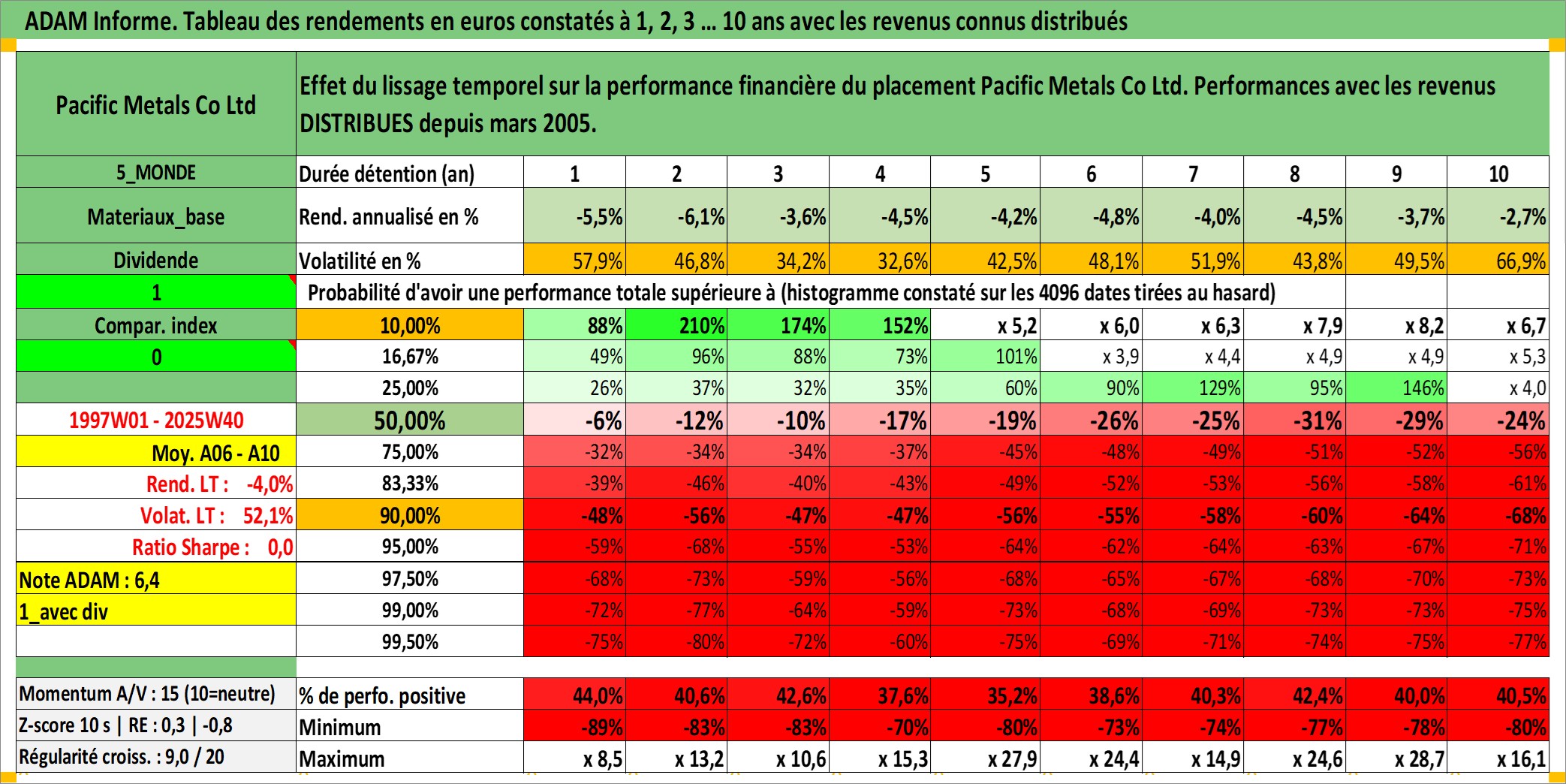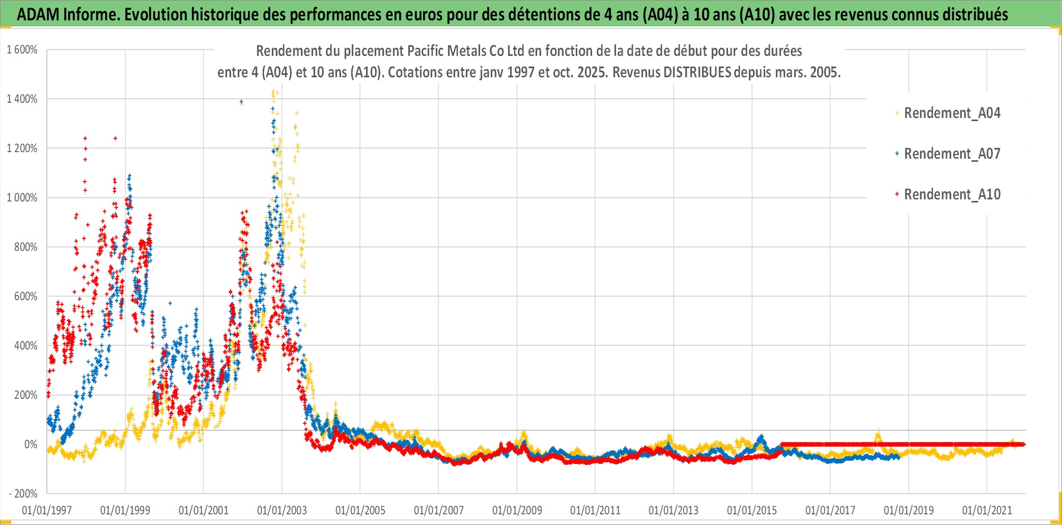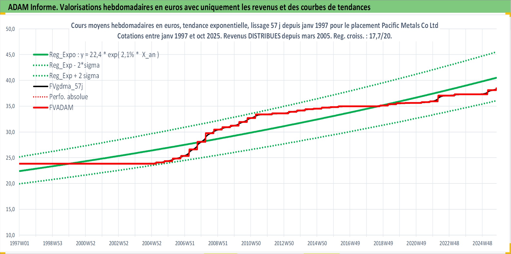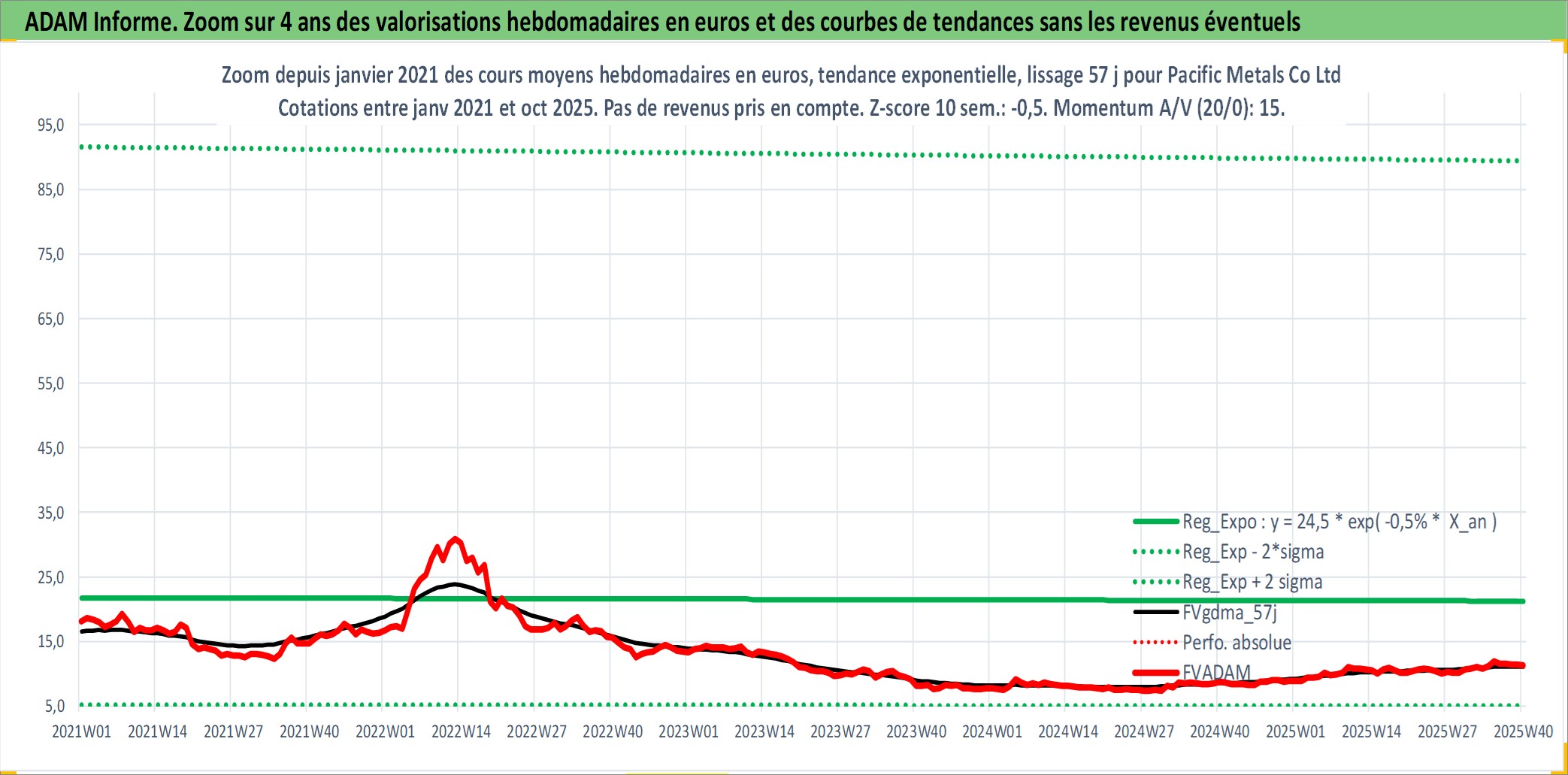 Site dédié aux investisseursPage dédiée sur site financeAnalyse des valorisations hebdomadaires de l'action Pacific Metals Co Ltd. Cet actif est cote en JPY. Les valorisations sont en contrevaleur EURO et couvrent les semaines 1997W01 a 2025W40. Les revenus de cet actif financier sont pris en compte depuis la semaine 2005W13. La note ESG de cet actif n'est pas connue.