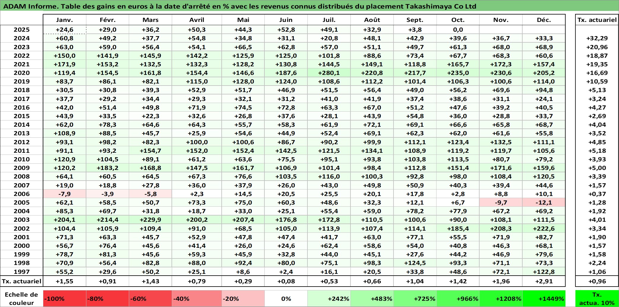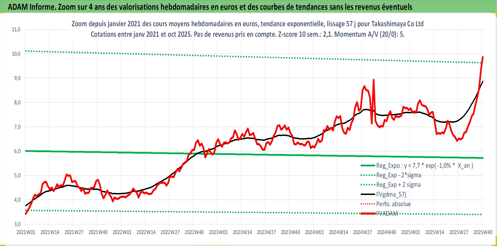 Site dédié aux investisseursPage dédiée sur site financeAnalyse des valorisations hebdomadaires de l'action Takashimaya Co Ltd. Cet actif est cote en JPY. Les valorisations sont en contrevaleur EURO et couvrent les semaines 1997W01 a 2025W40. Les revenus de cet actif financier sont pris en compte depuis la semaine 1997W09. La note ESG de cet actif n'est pas connue.