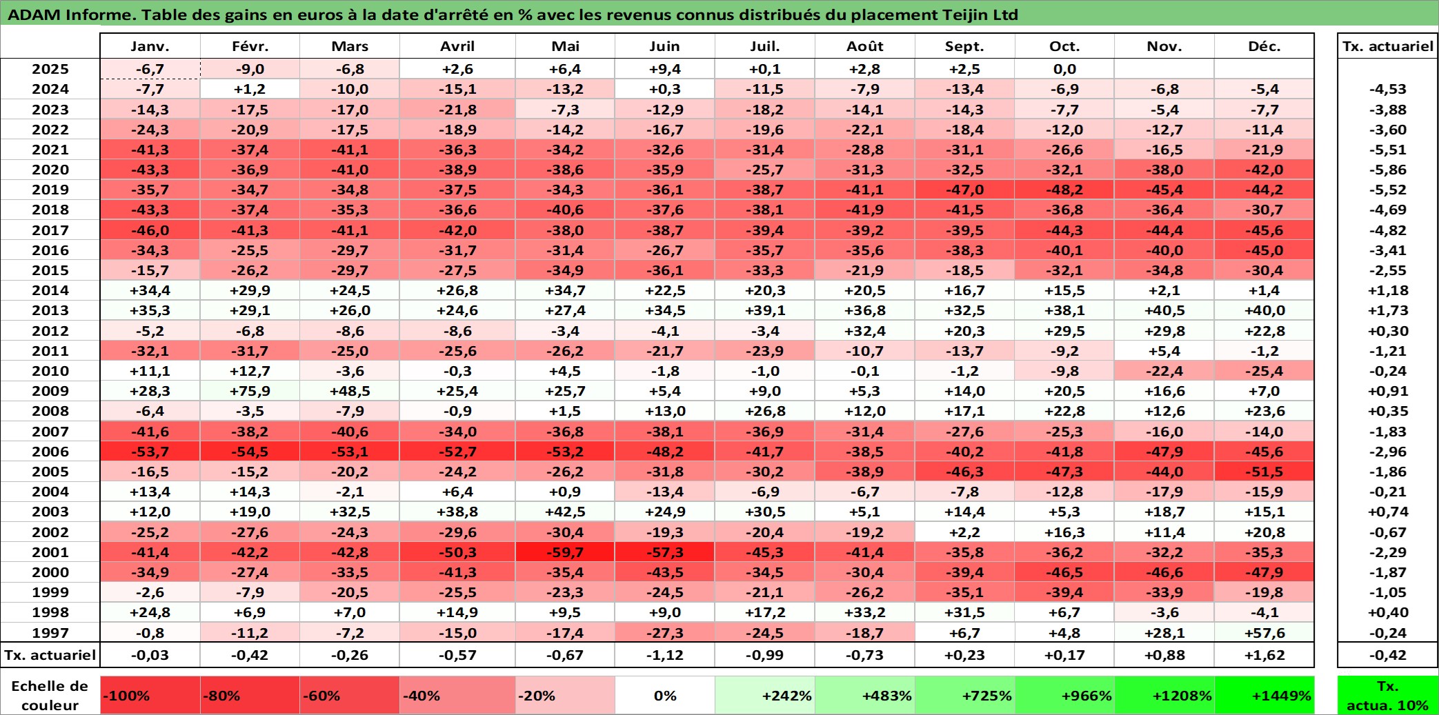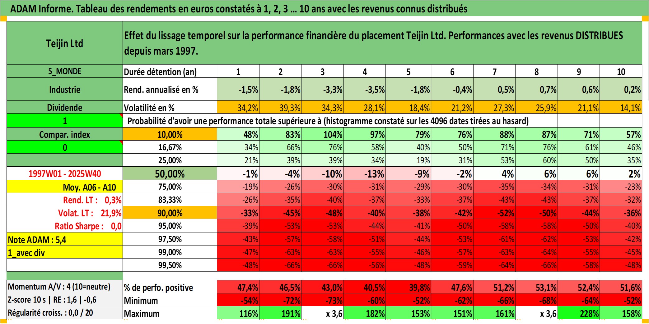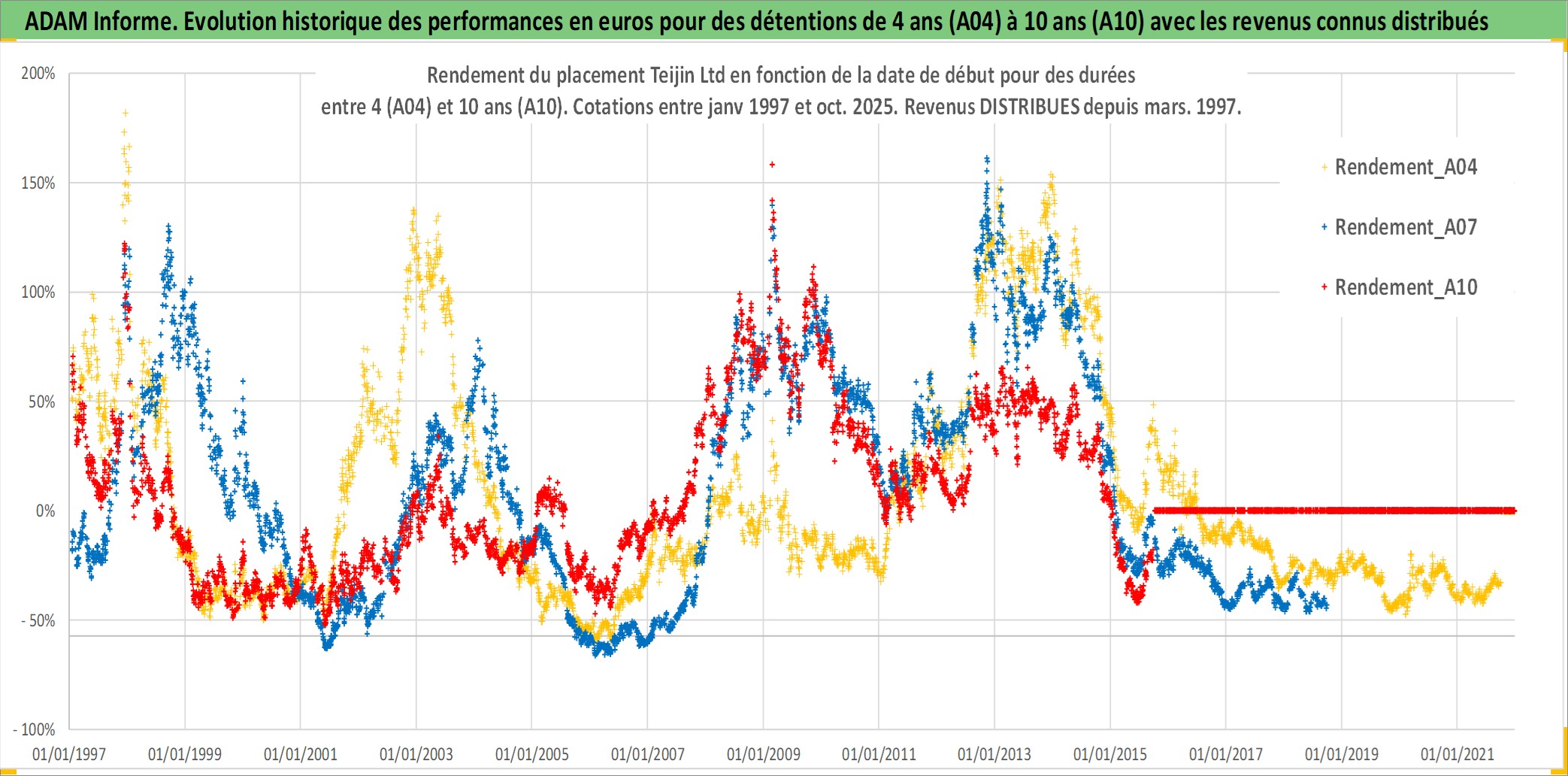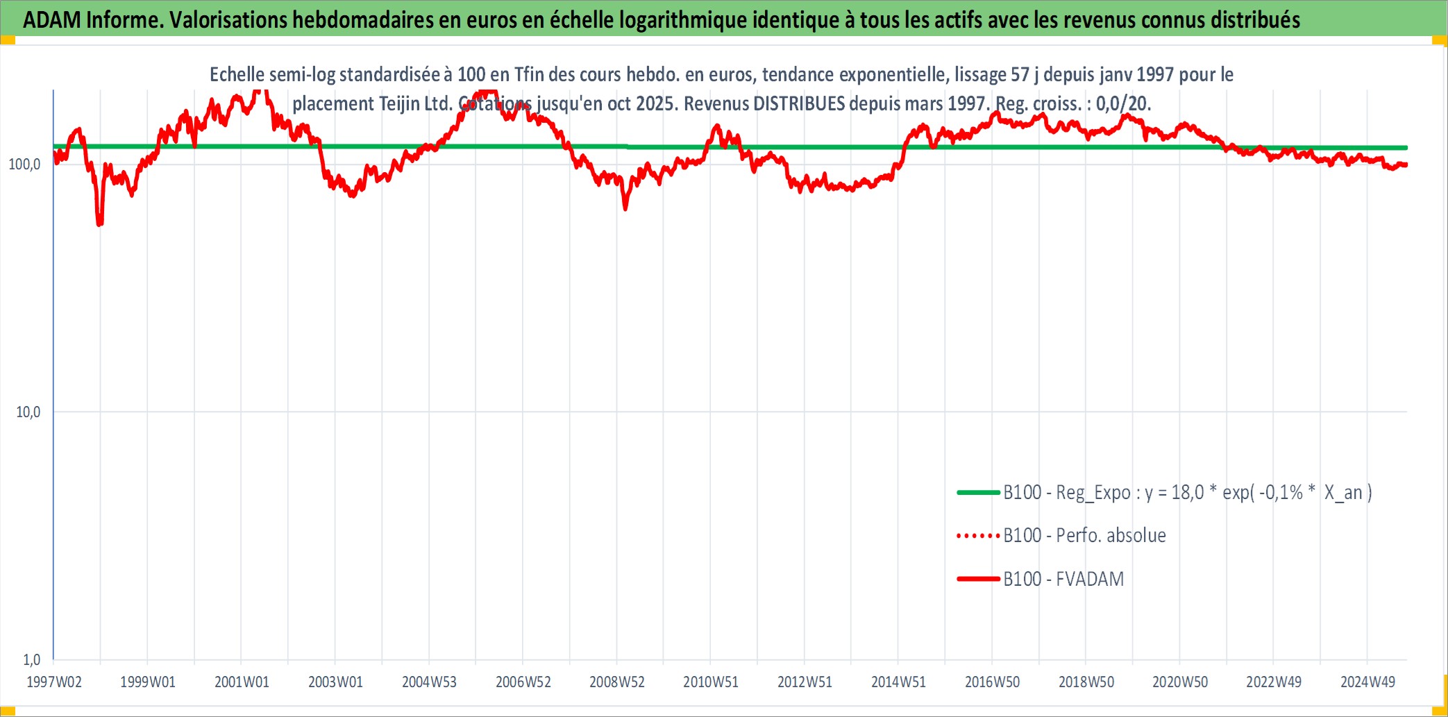 Site dédié aux investisseursPage dédiée sur site financeAnalyse des valorisations hebdomadaires de l'action Teijin Ltd. Cet actif est cote en JPY. Les valorisations sont en contrevaleur EURO et couvrent les semaines 1997W01 a 2025W40. Les revenus de cet actif financier sont pris en compte depuis la semaine 1997W13. La note ESG de cet actif n'est pas connue.