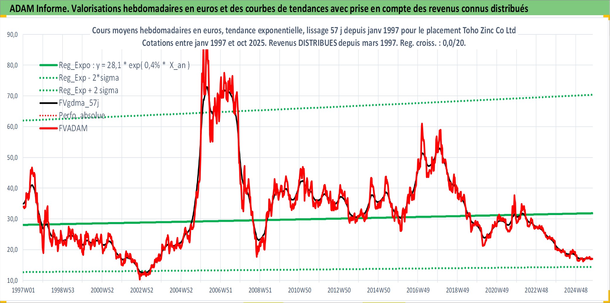 Site dédié aux investisseursPage dédiée sur site financeAnalyse des valorisations hebdomadaires de l'action Toho Zinc Co Ltd. Cet actif est cote en JPY. Les valorisations sont en contrevaleur EURO et couvrent les semaines 1997W01 a 2025W40. Les revenus de cet actif financier sont pris en compte depuis la semaine 1997W13. La note ESG de cet actif n'est pas connue.