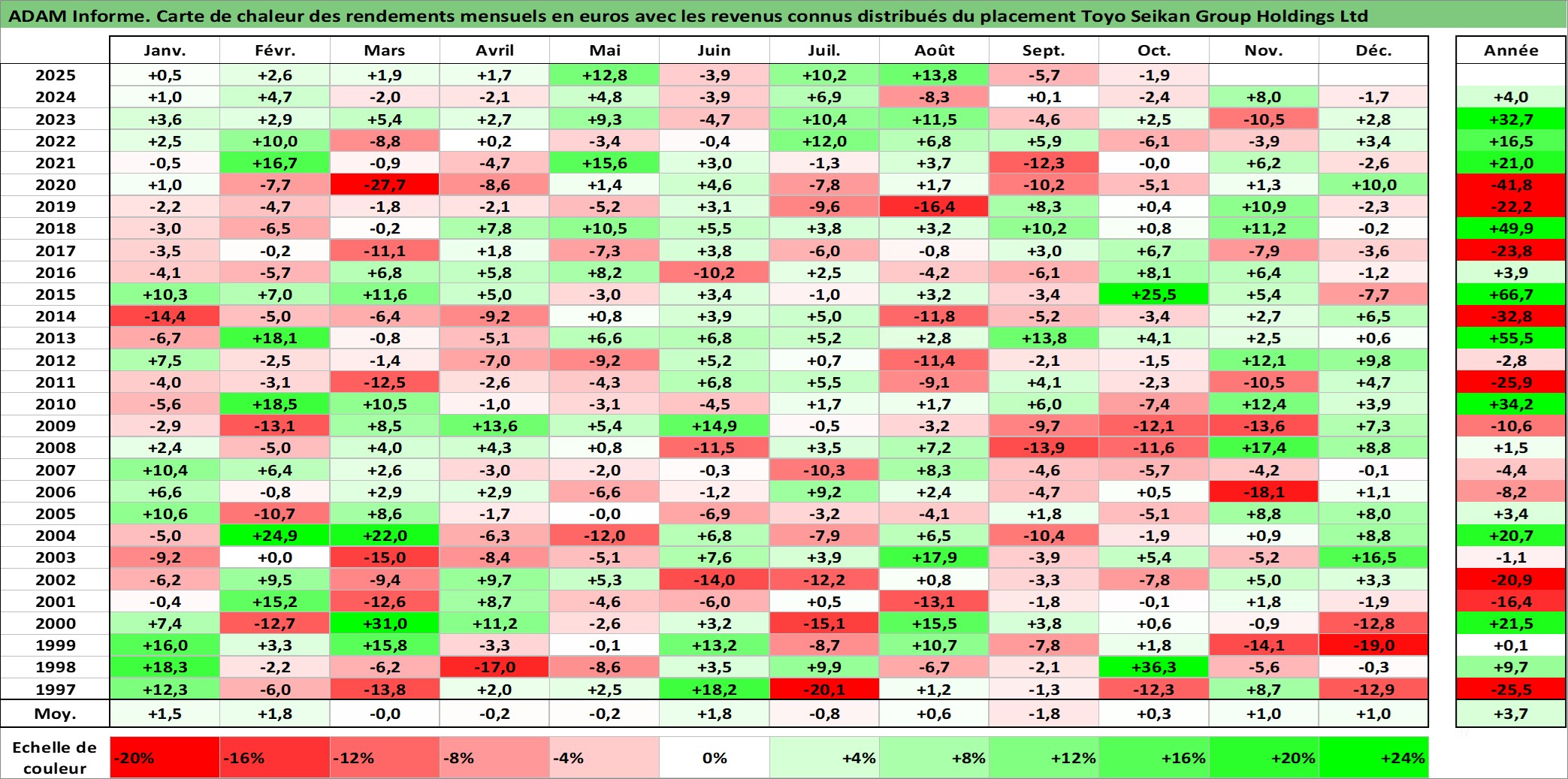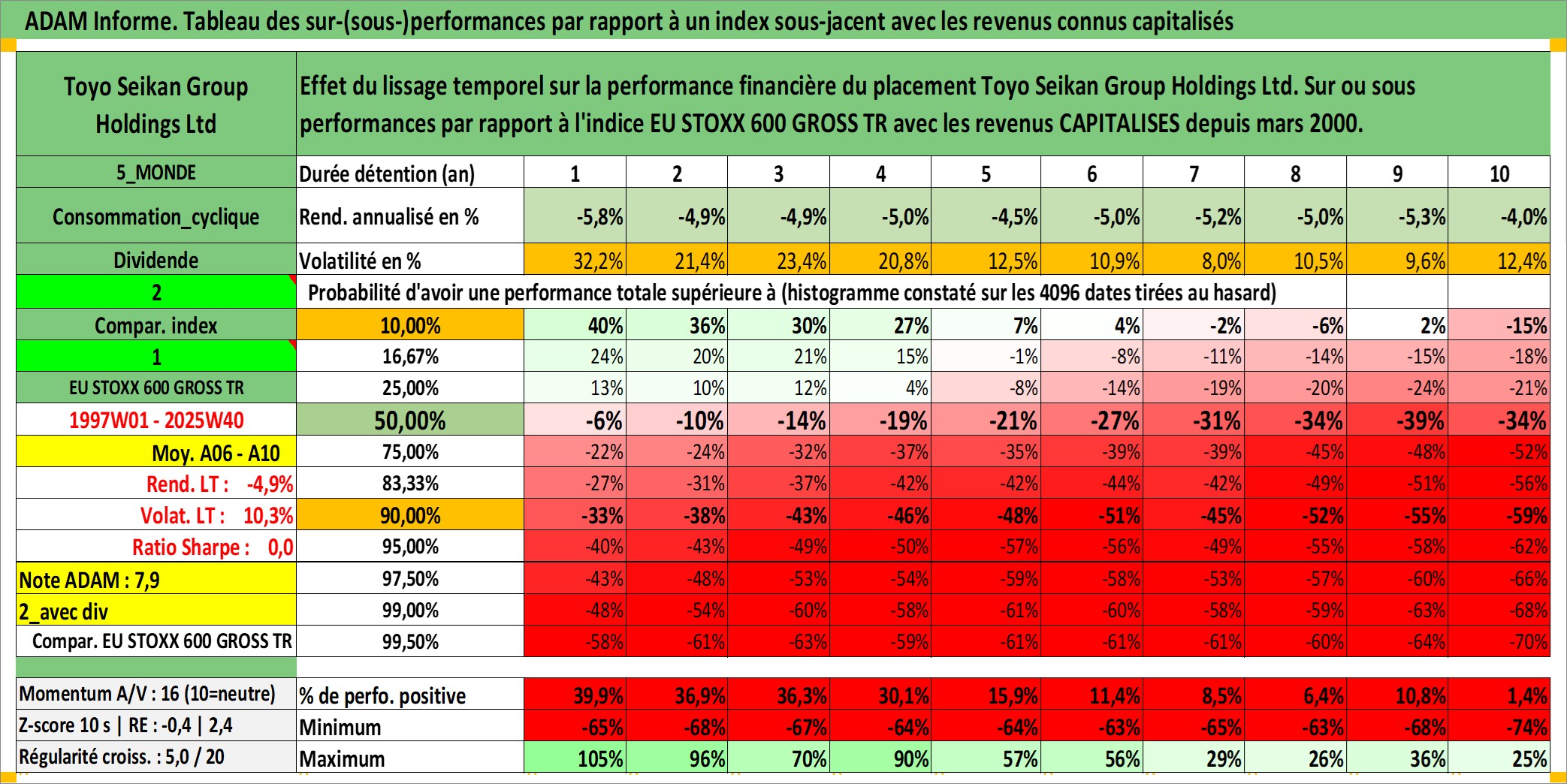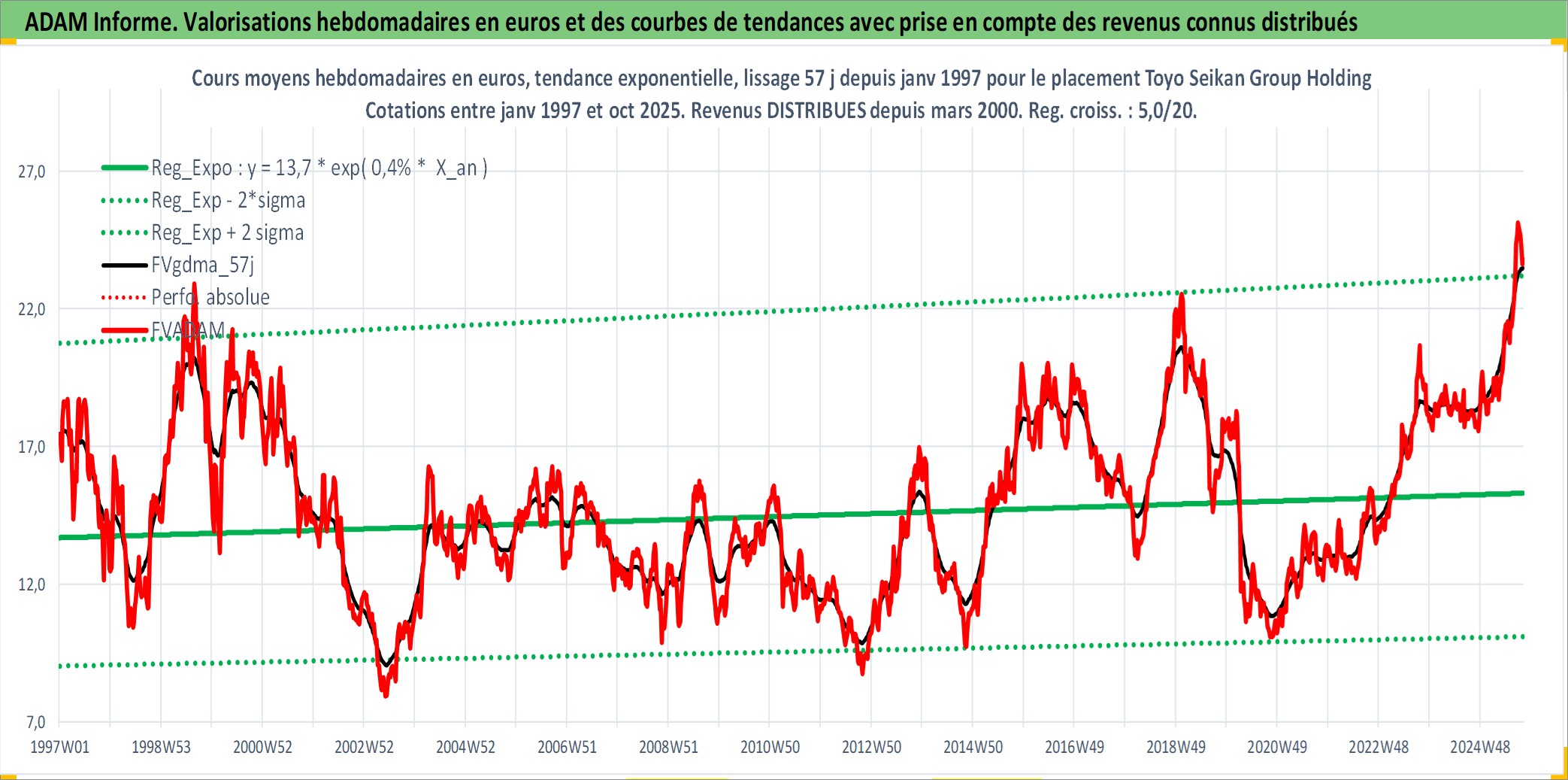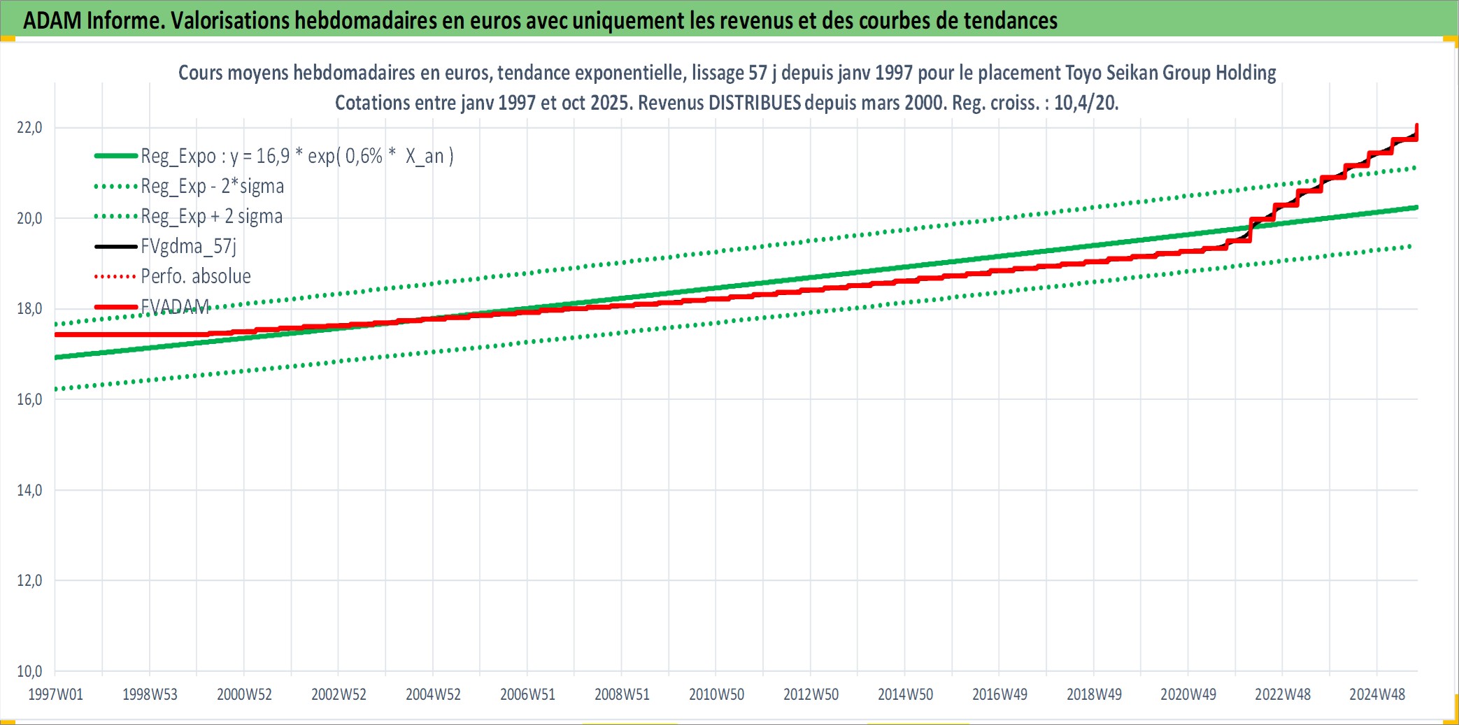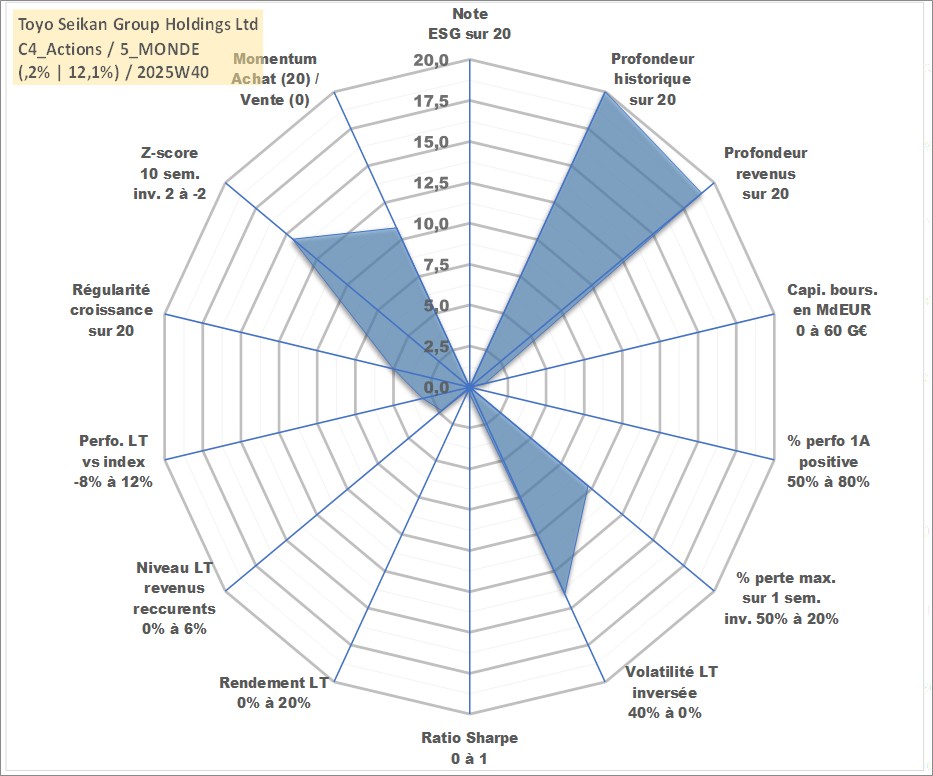 Site dédié aux investisseursPage dédiée sur site financeAnalyse des valorisations hebdomadaires de l'action Toyo Seikan Group Holdings Ltd. Cet actif est cote en JPY. Les valorisations sont en contrevaleur EURO et couvrent les semaines 1997W01 a 2025W40. Les revenus de cet actif financier sont pris en compte depuis la semaine 2000W13. La note ESG de cet actif n'est pas connue.