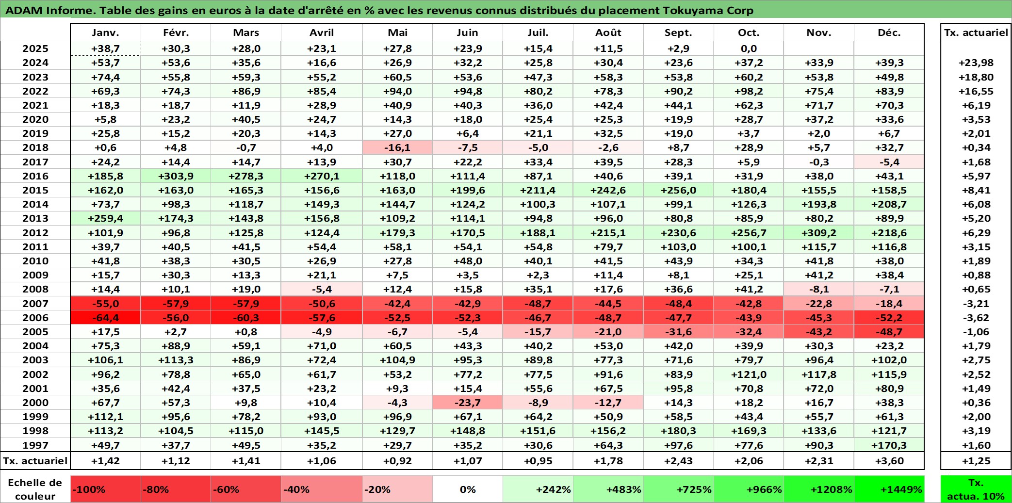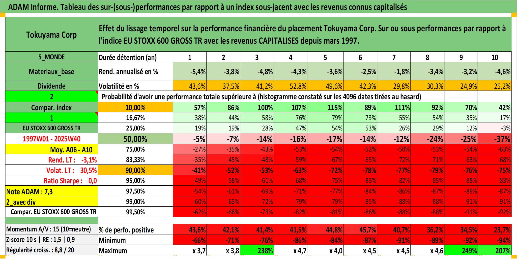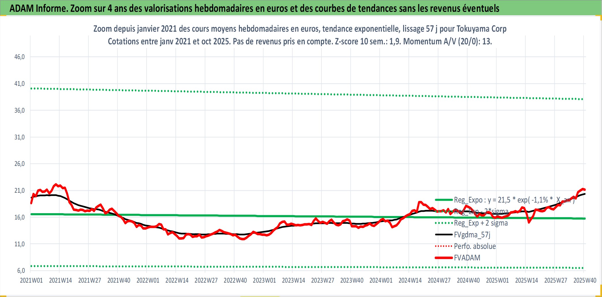 Site dédié aux investisseursPage dédiée sur site financeAnalyse des valorisations hebdomadaires de l'action Tokuyama Corp. Cet actif est cote en JPY. Les valorisations sont en contrevaleur EURO et couvrent les semaines 1997W01 a 2025W40. Les revenus de cet actif financier sont pris en compte depuis la semaine 1997W13. La note ESG de cet actif n'est pas connue.