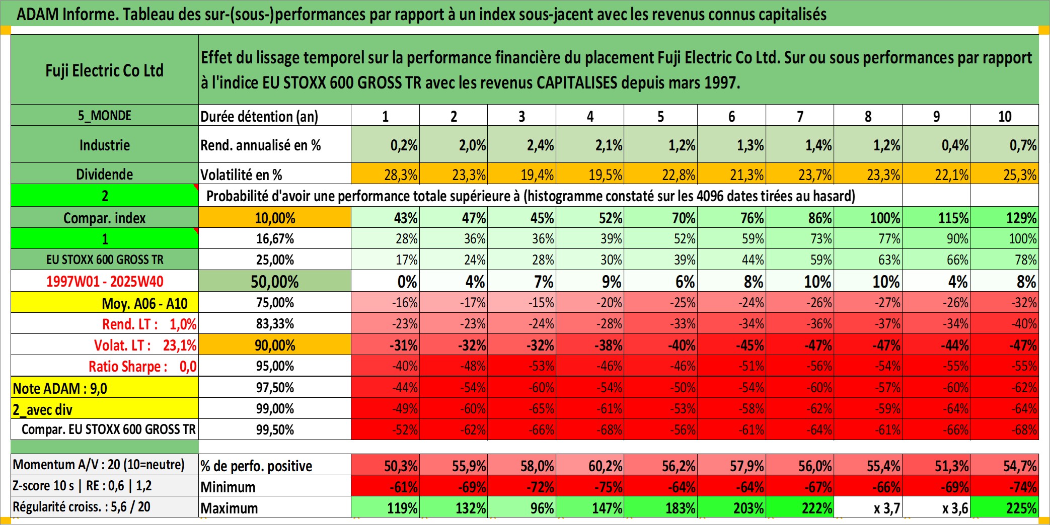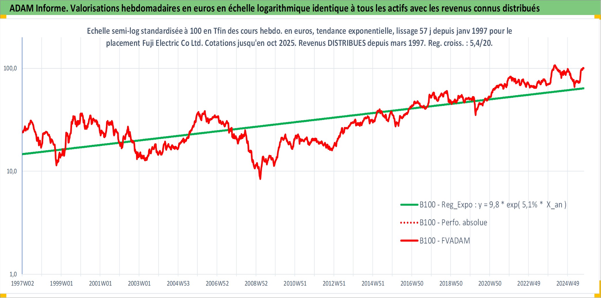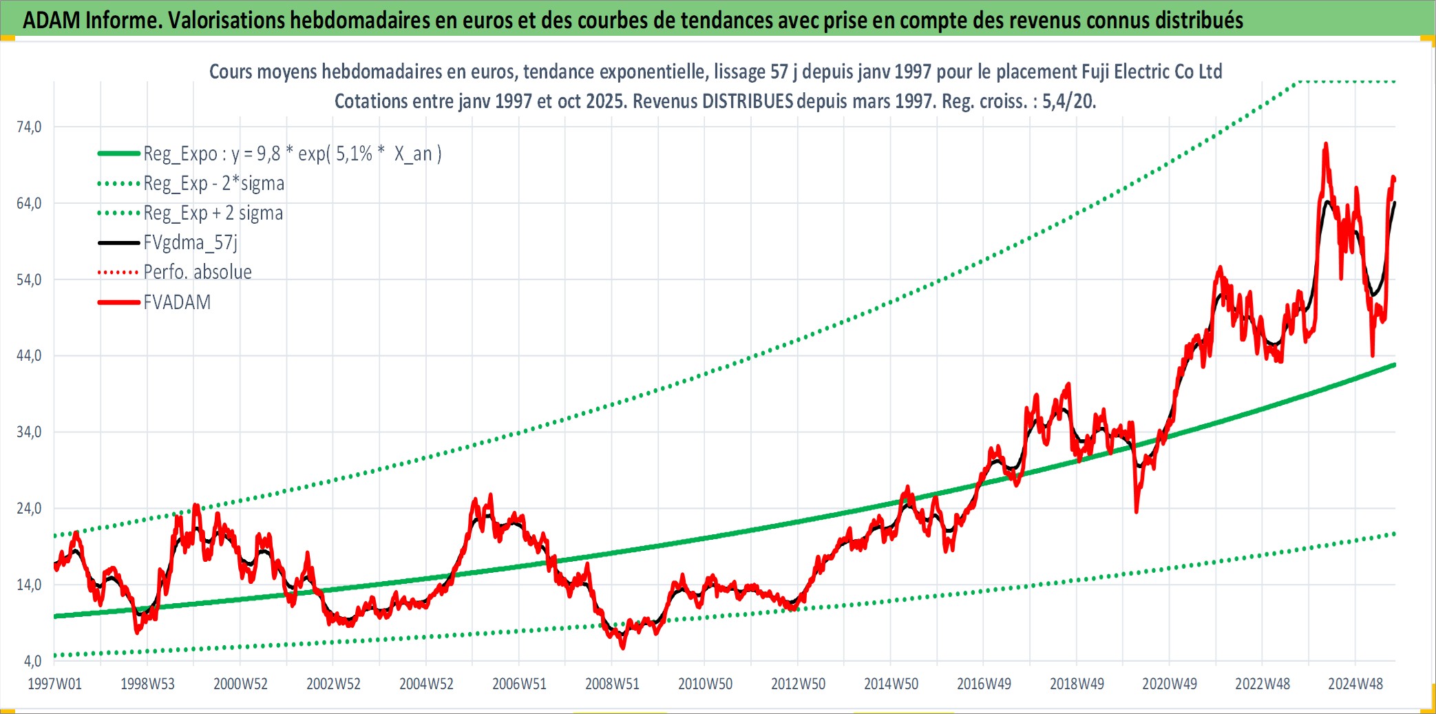 Site dédié aux investisseursPage dédiée sur site financeAnalyse des valorisations hebdomadaires de l'action Fuji Electric Co Ltd. Cet actif est cote en JPY. Les valorisations sont en contrevaleur EURO et couvrent les semaines 1997W01 a 2025W40. Les revenus de cet actif financier sont pris en compte depuis la semaine 1997W13. La note ESG de cet actif n'est pas connue.