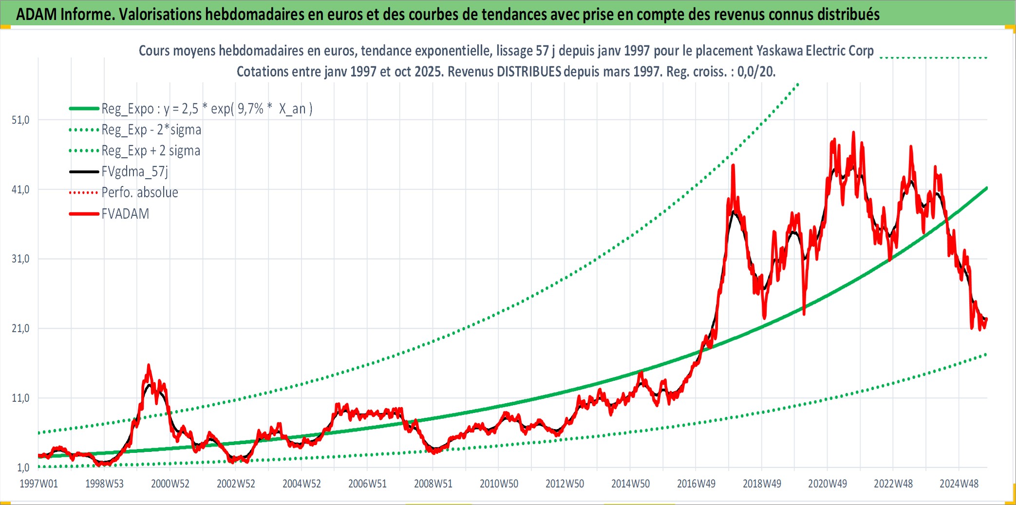 Site dédié aux investisseursPage dédiée sur site financeAnalyse des valorisations hebdomadaires de l'action Yaskawa Electric Corp. Cet actif est cote en JPY. Les valorisations sont en contrevaleur EURO et couvrent les semaines 1997W01 a 2025W40. Les revenus de cet actif financier sont pris en compte depuis la semaine 1997W11. La note ESG de cet actif n'est pas connue.