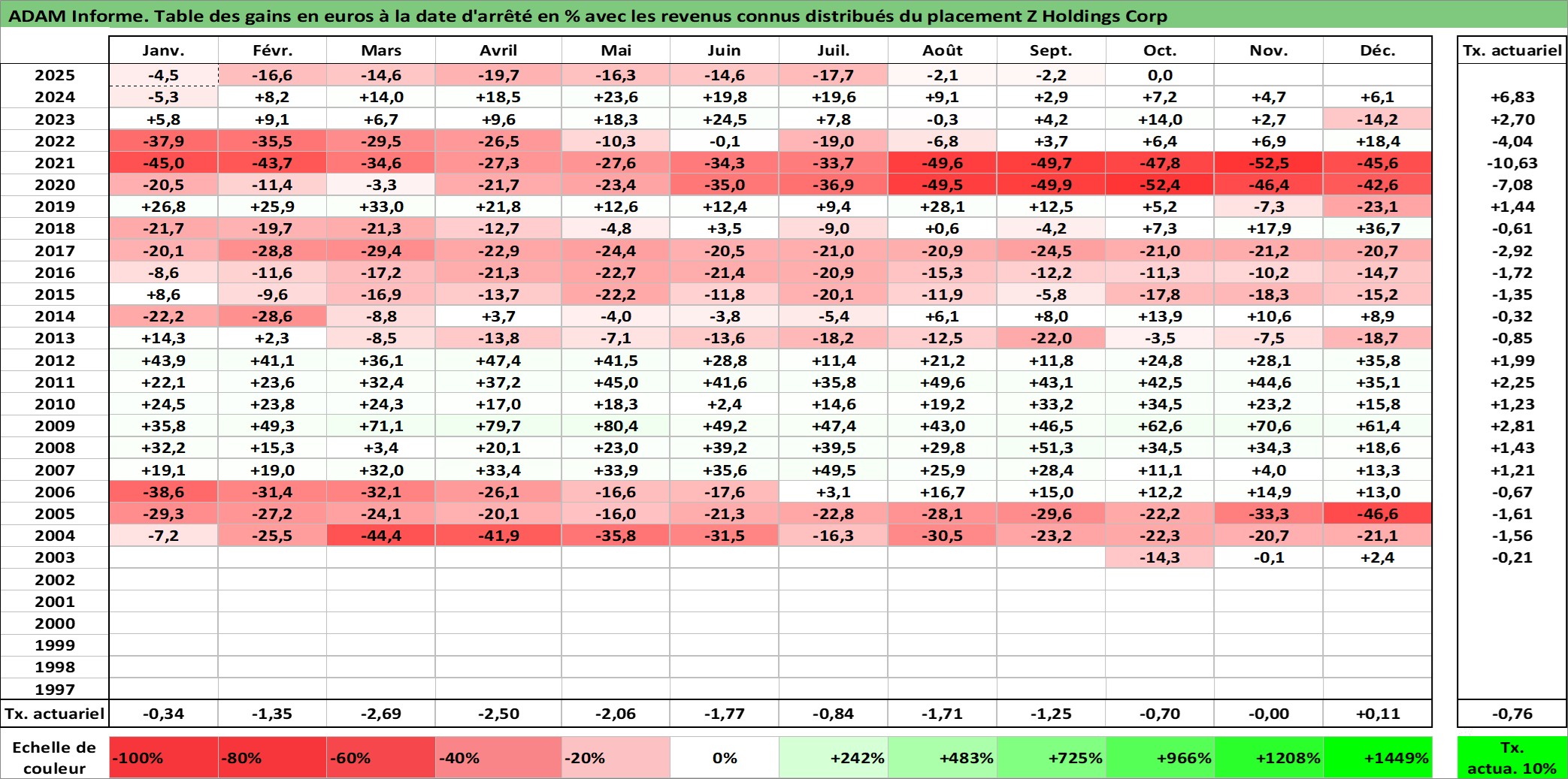 Dernière perfo 10 ans en %