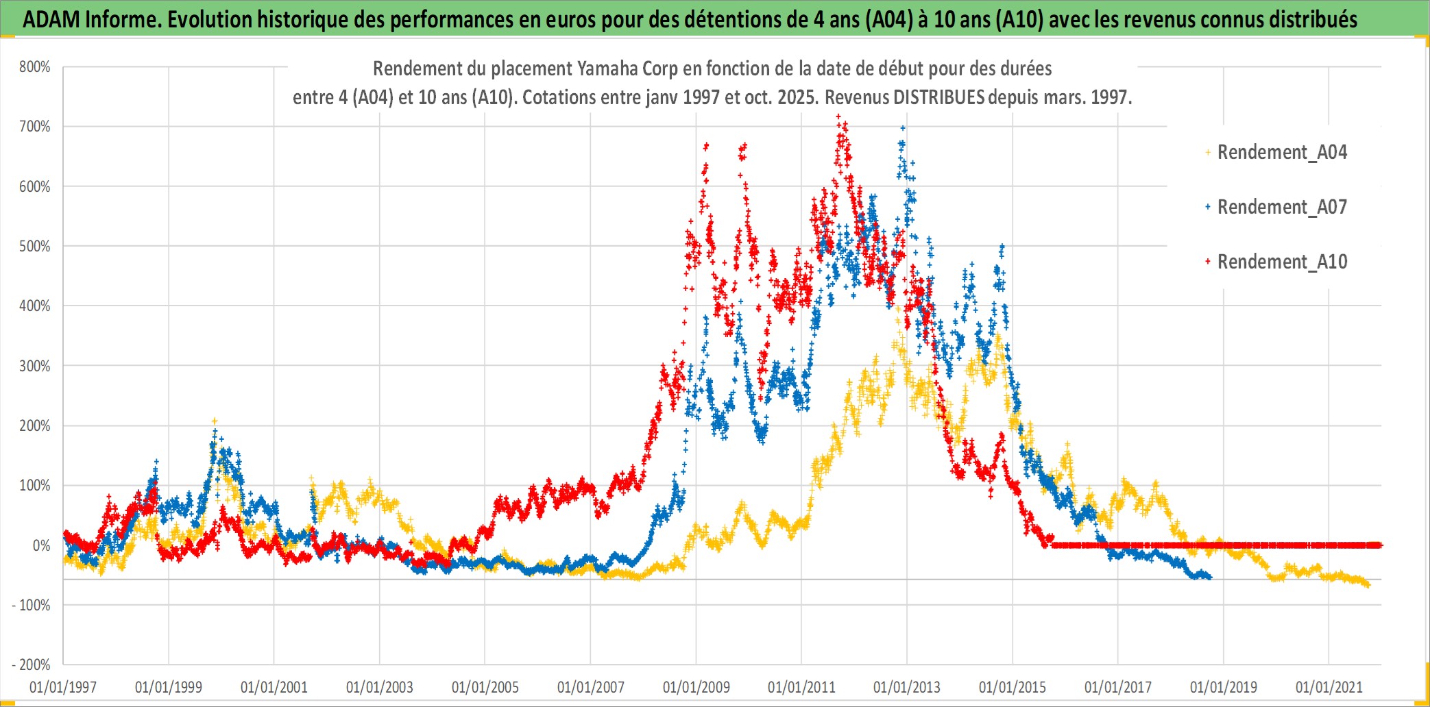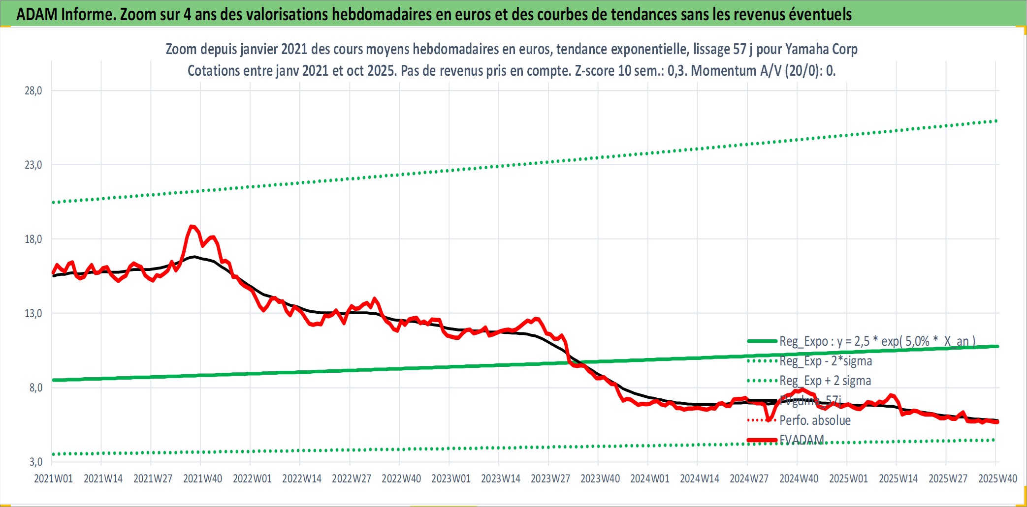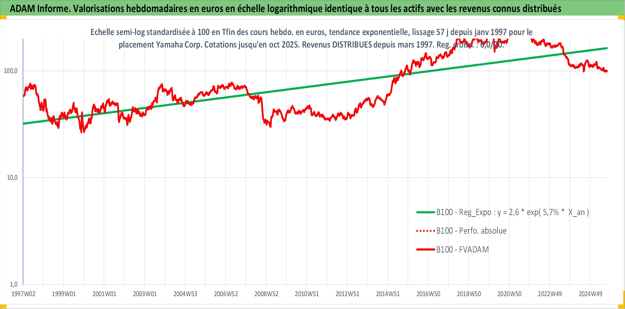 Site dédié aux investisseursPage dédiée sur site financeAnalyse des valorisations hebdomadaires de l'action Yamaha Corp. Cet actif est cote en JPY. Les valorisations sont en contrevaleur EURO et couvrent les semaines 1997W01 a 2025W40. Les revenus de cet actif financier sont pris en compte depuis la semaine 1997W13. La note ESG de cet actif n'est pas connue.