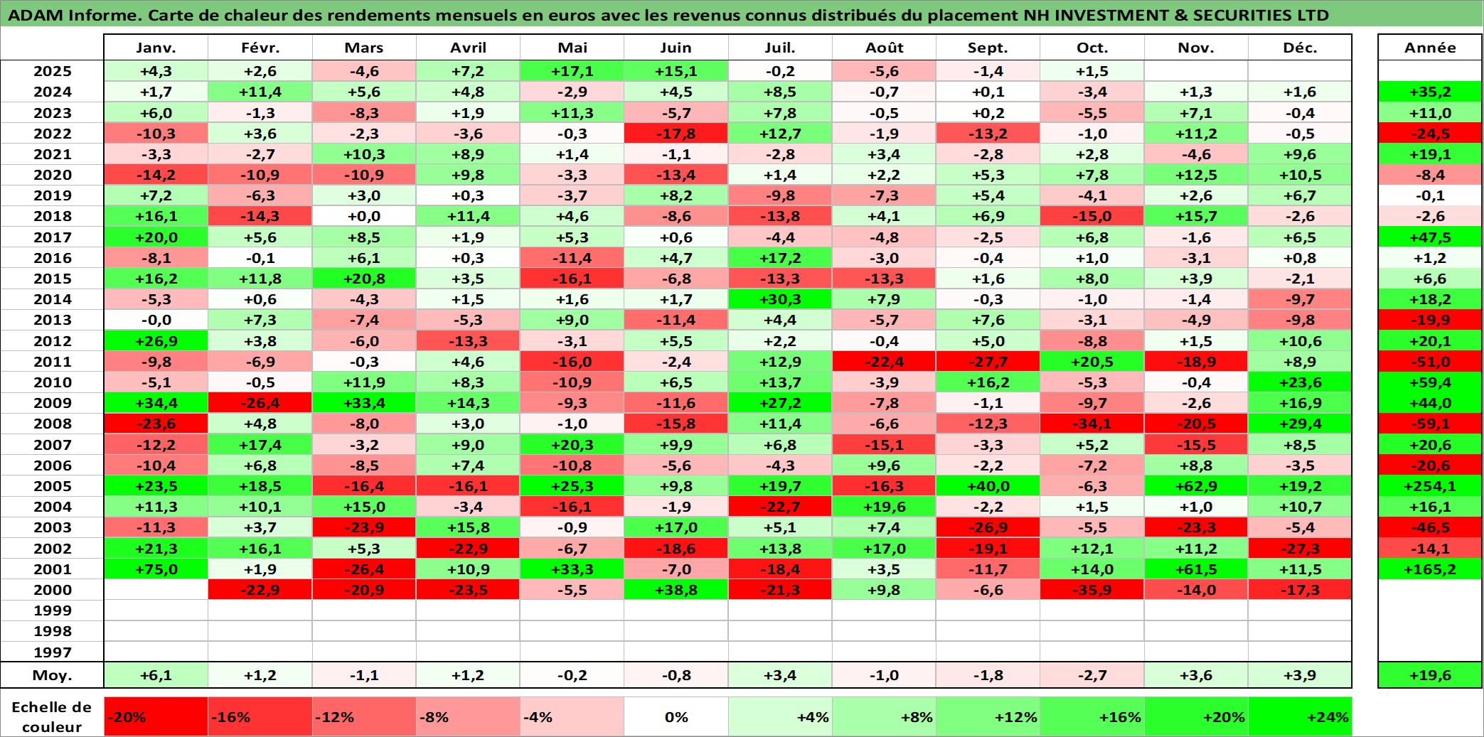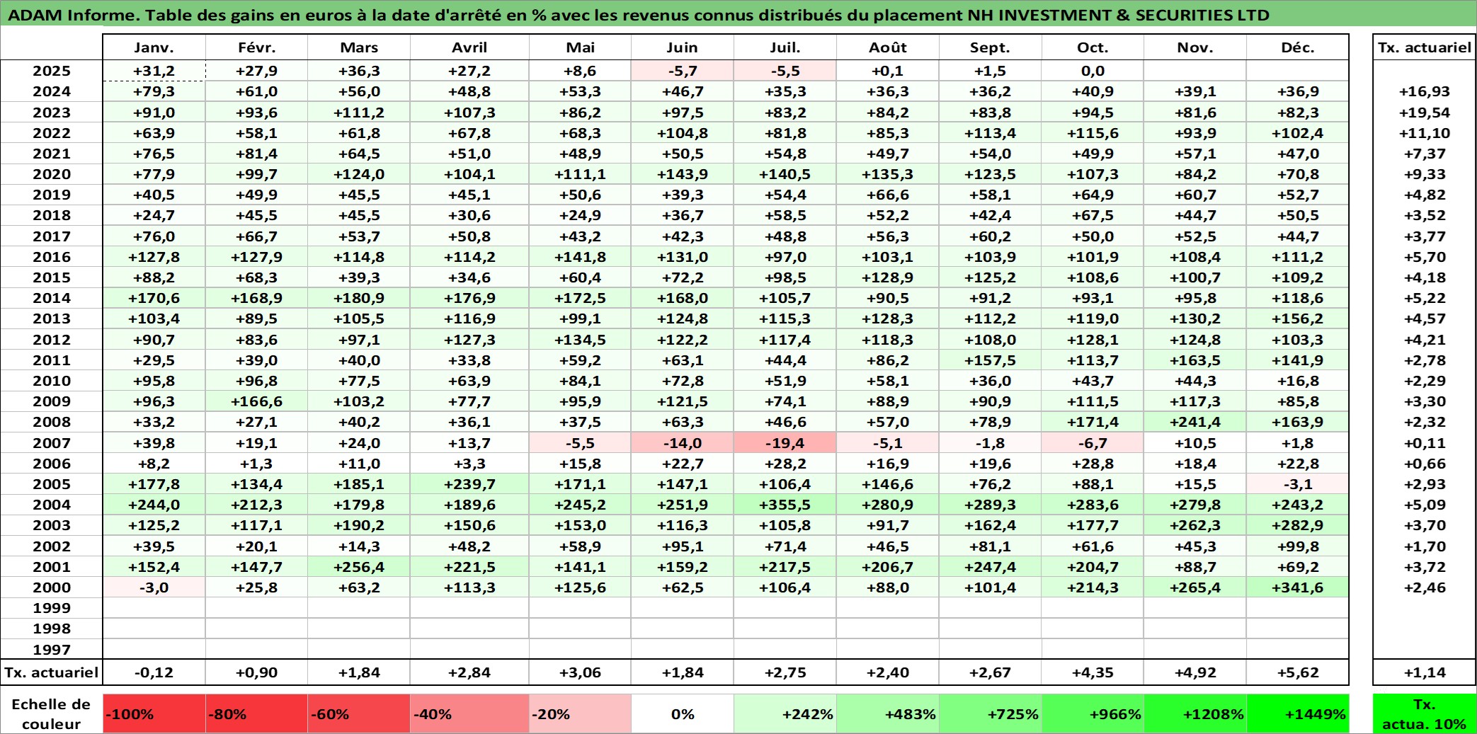Site dédié aux investisseursPage dédiée sur site financeAnalyse des valorisations hebdomadaires de l'action NH INVESTMENT & SECURITIES LTD. Cet actif est cote en KRW. Les valorisations sont en contrevaleur EURO et couvrent les semaines 2000W02 a 2025W40. Les revenus de cet actif financier sont pris en compte depuis la semaine 2000W13. La note ESG de cet actif n'est pas connue.