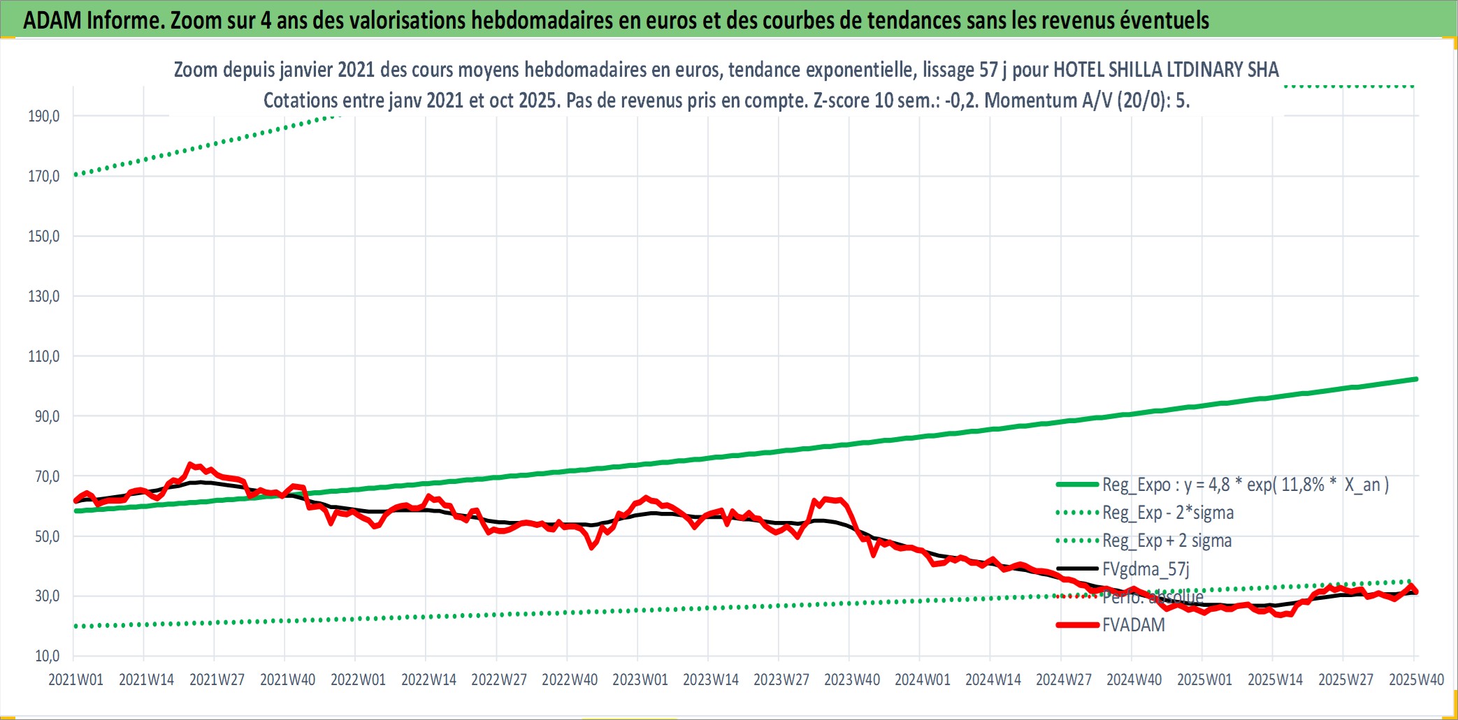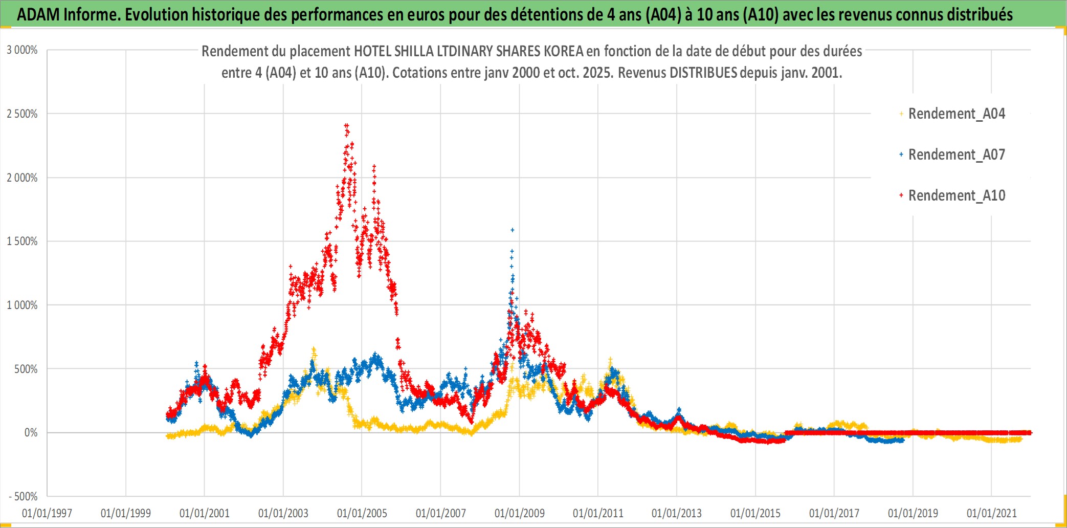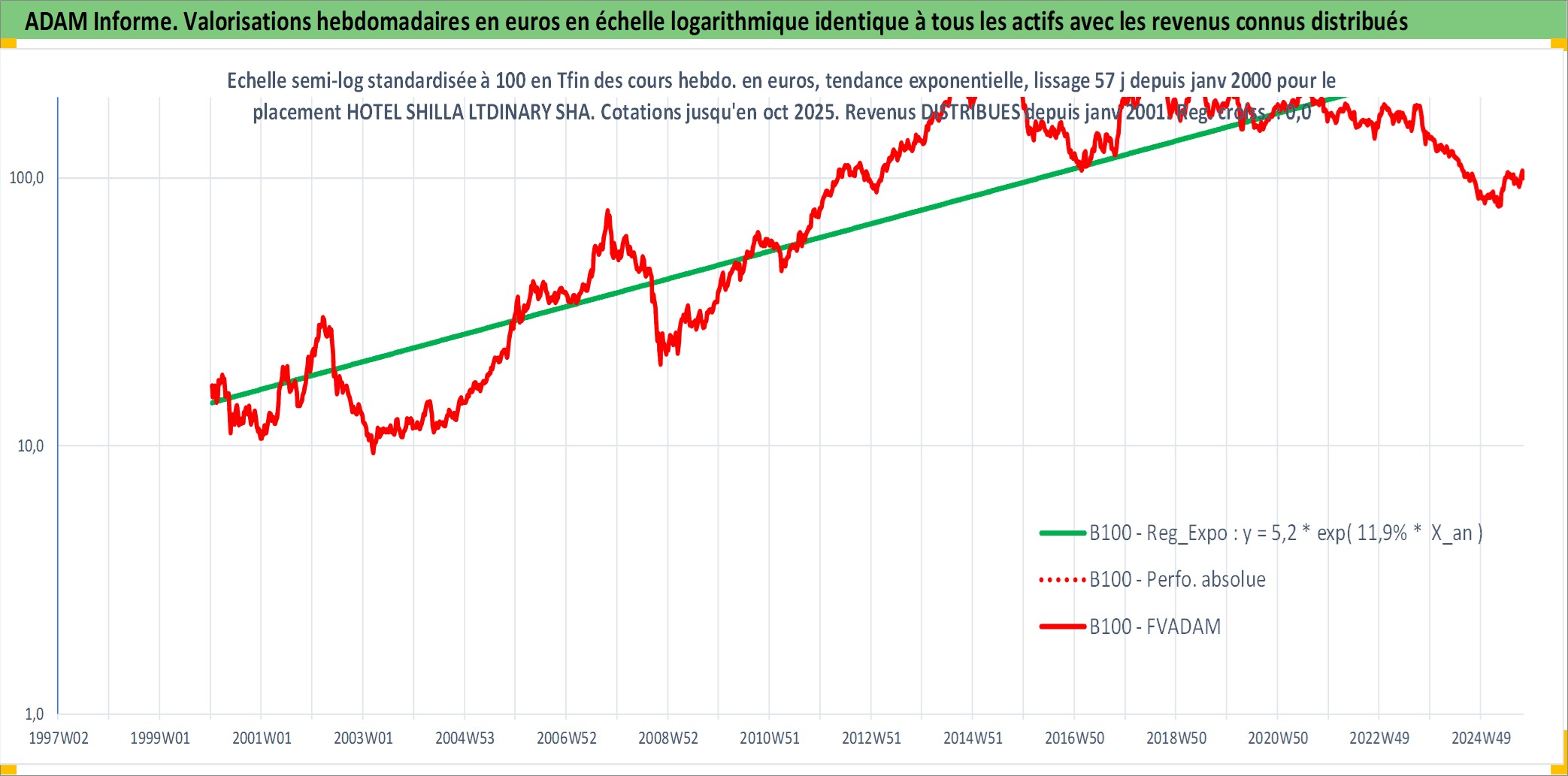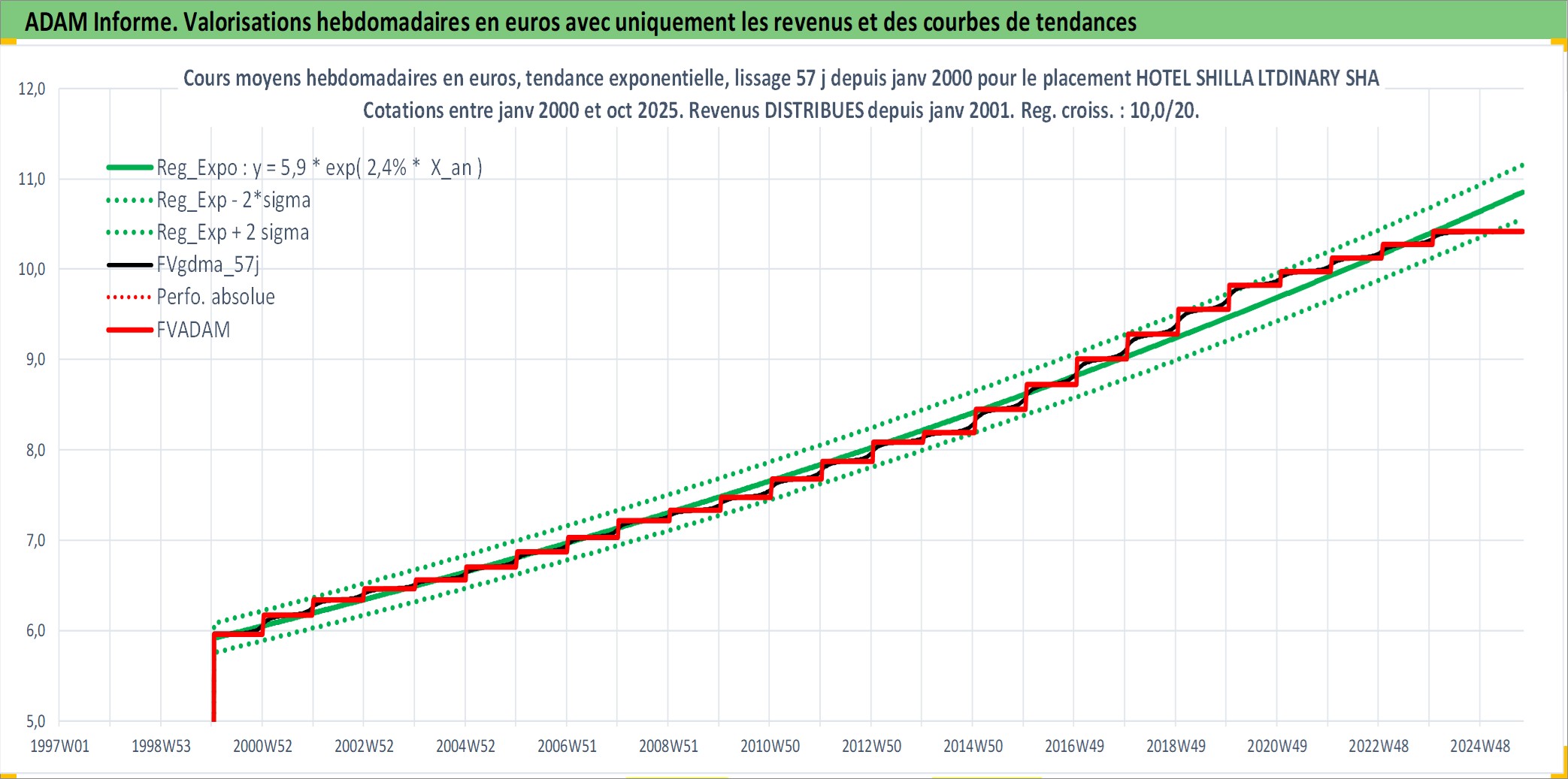 Site dédié aux investisseursPage dédiée sur site financeAnalyse des valorisations hebdomadaires de l'action HOTEL SHILLA LTDINARY SHARES KOREA. Cet actif est cote en KRW. Les valorisations sont en contrevaleur EURO et couvrent les semaines 2000W02 a 2025W40. Les revenus de cet actif financier sont pris en compte depuis la semaine 2001W01. La note ESG de cet actif n'est pas connue.