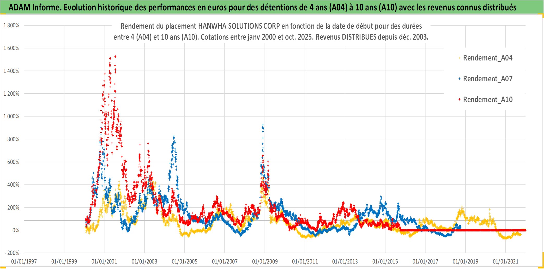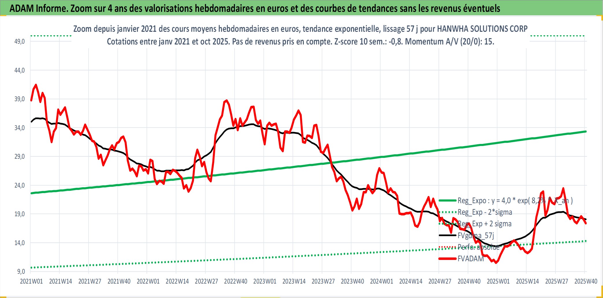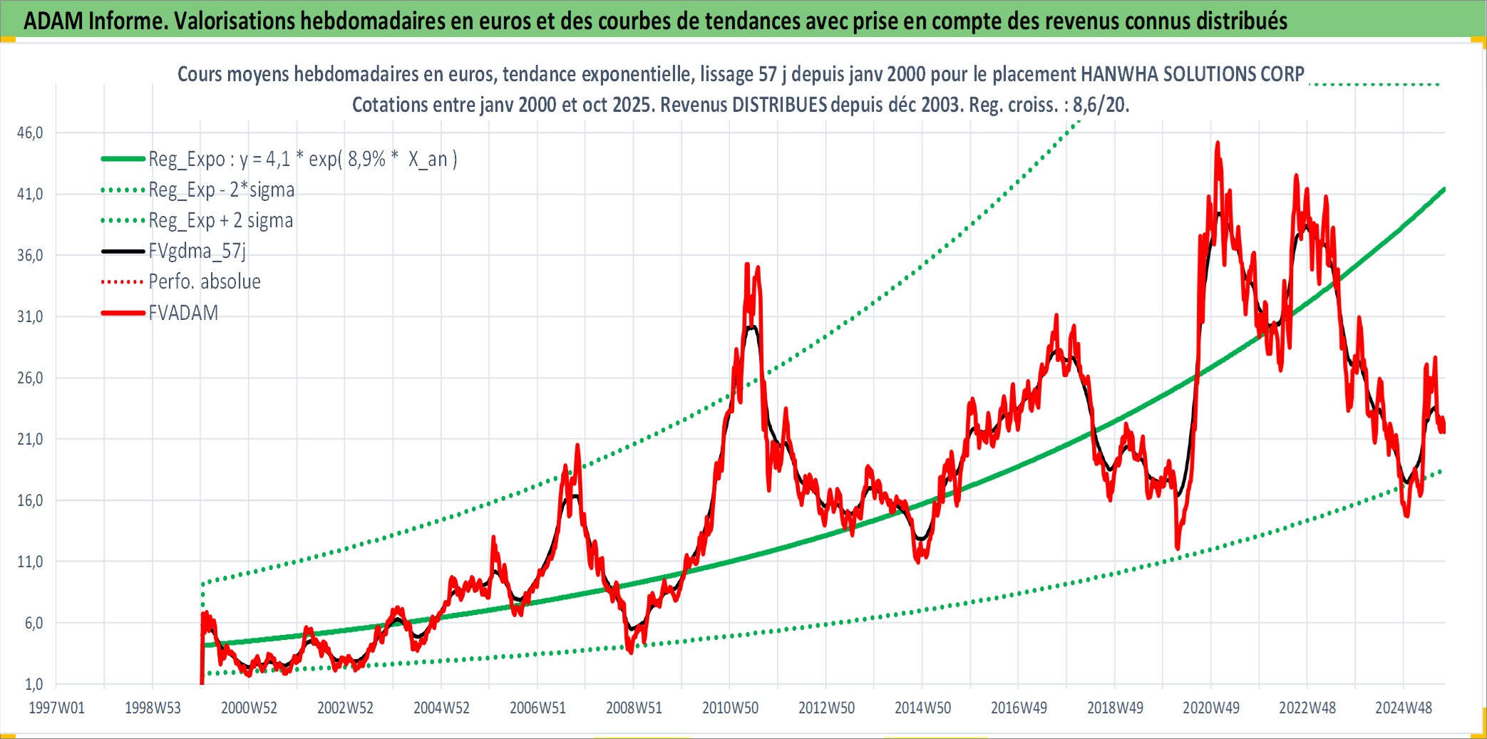Site dédié aux investisseursPage dédiée sur site financeAnalyse des valorisations hebdomadaires de l'action HANWHA SOLUTIONS CORP. Cet actif est cote en KRW. Les valorisations sont en contrevaleur EURO et couvrent les semaines 2000W02 a 2025W40. Les revenus de cet actif financier sont pris en compte depuis la semaine 2004W01. La note ESG de cet actif n'est pas connue.