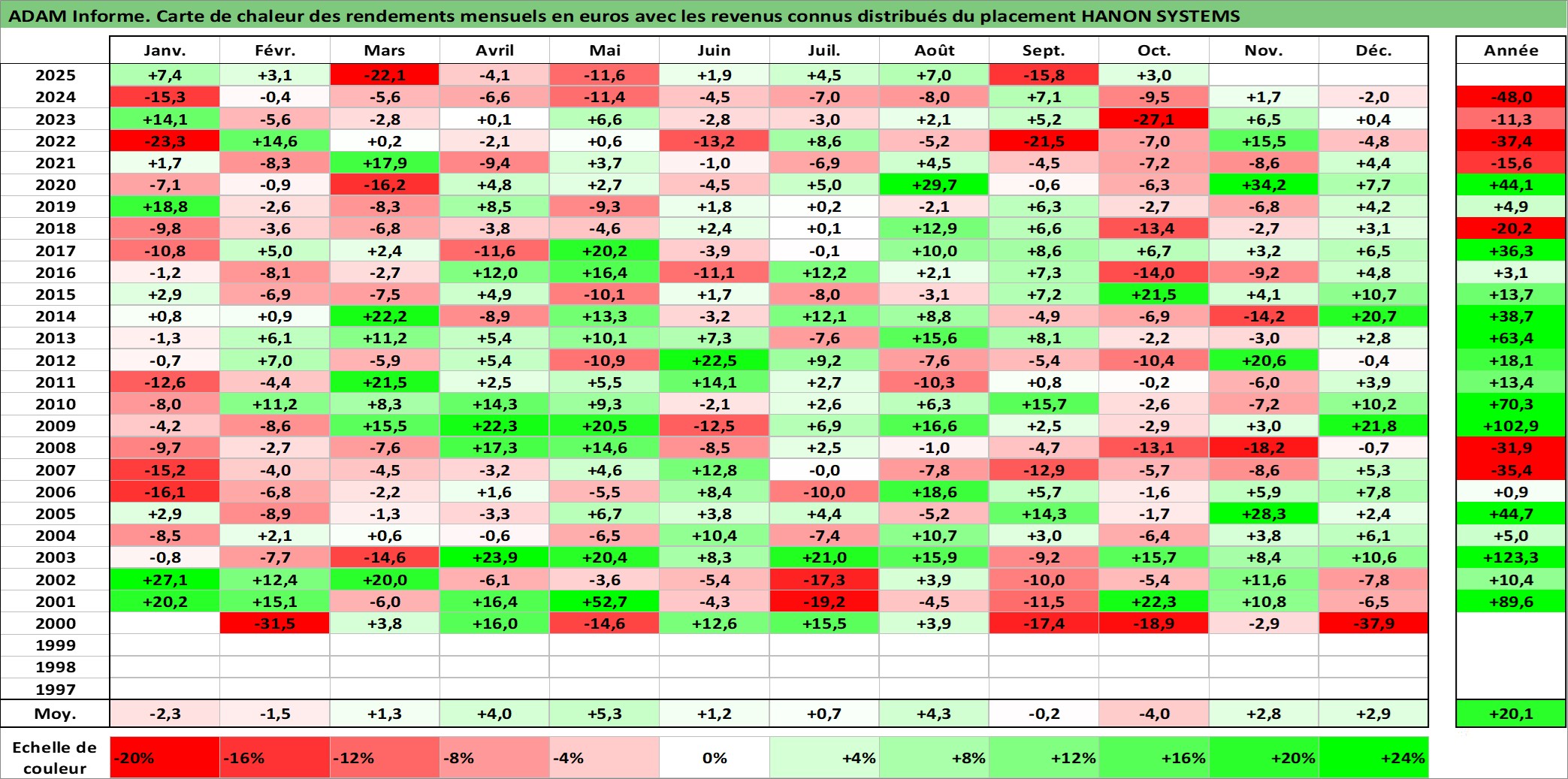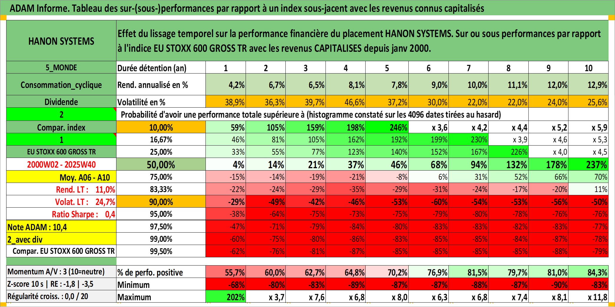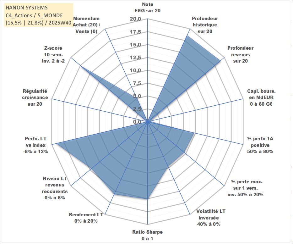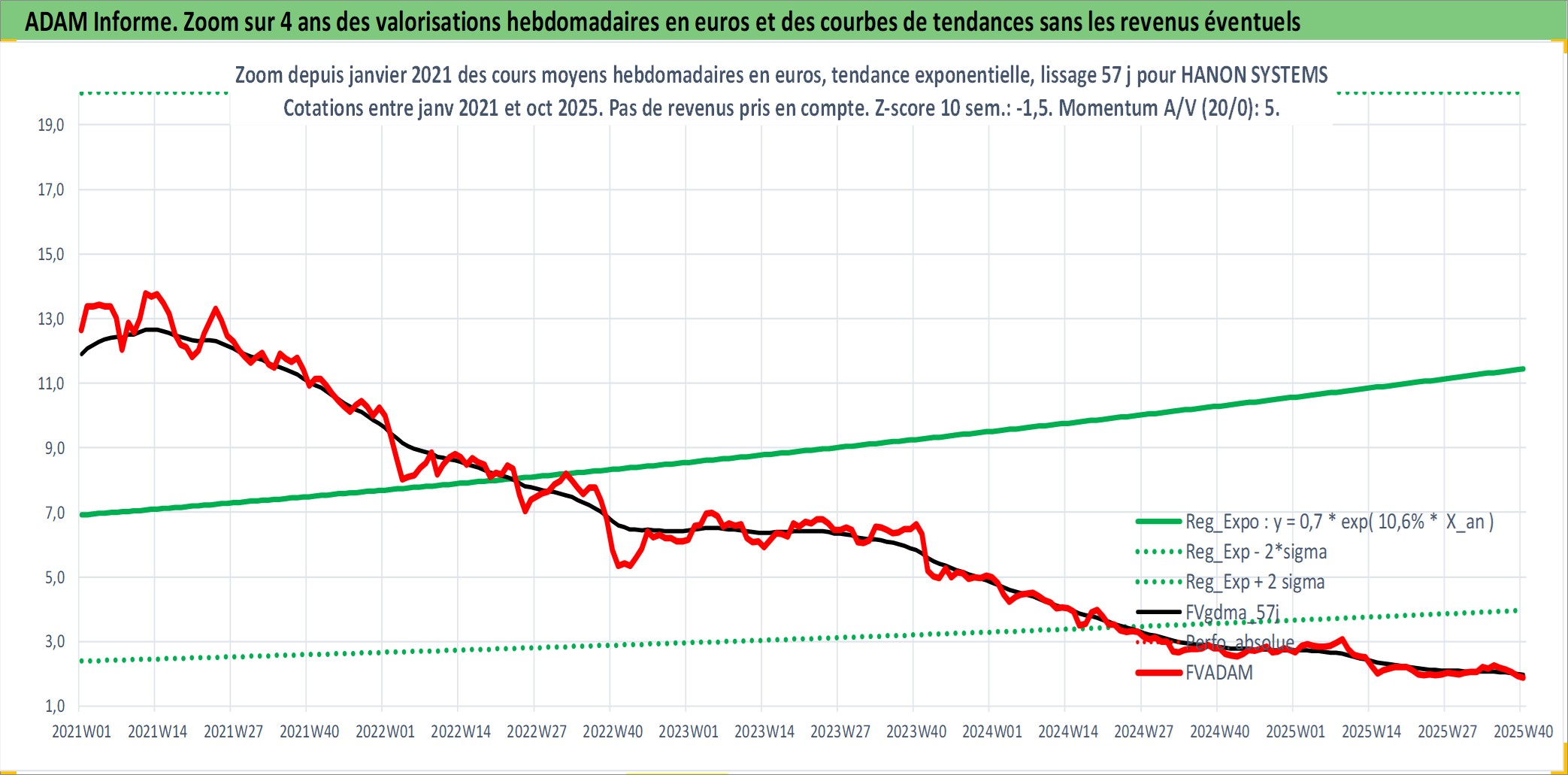 Site dédié aux investisseursPage dédiée sur site financeAnalyse des valorisations hebdomadaires de l'action HANON SYSTEMS. Cet actif est cote en KRW. Les valorisations sont en contrevaleur EURO et couvrent les semaines 2000W02 a 2025W40. Les revenus de cet actif financier sont pris en compte depuis la semaine 2000W01. La note ESG de cet actif n'est pas connue.