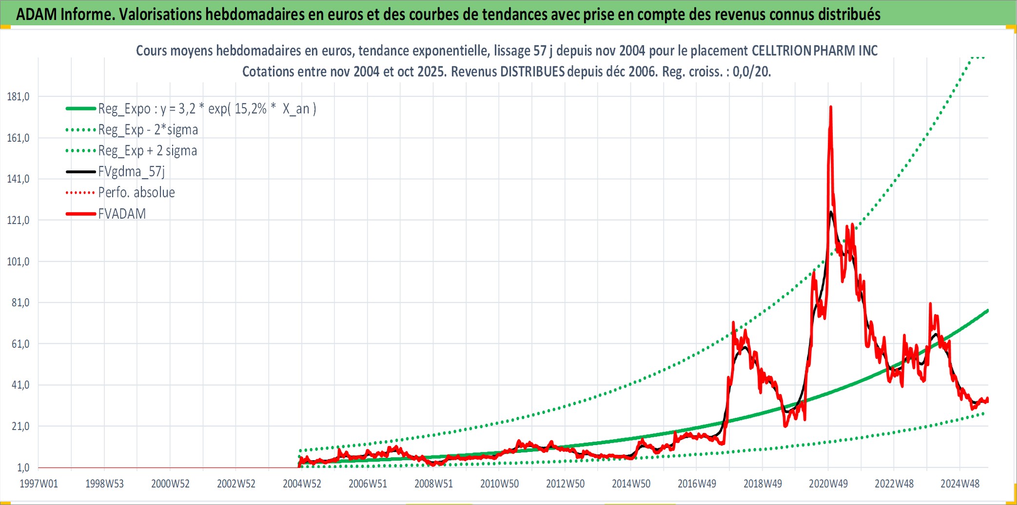 Site dédié aux investisseursPage dédiée sur site financeAnalyse des valorisations hebdomadaires de l'action CELLTRION PHARM INC. Cet actif est cote en KRW. Les valorisations sont en contrevaleur EURO et couvrent les semaines 2004W48 a 2025W40. Les revenus de cet actif financier sont pris en compte depuis la semaine 2006W52. La note ESG de cet actif n'est pas connue.