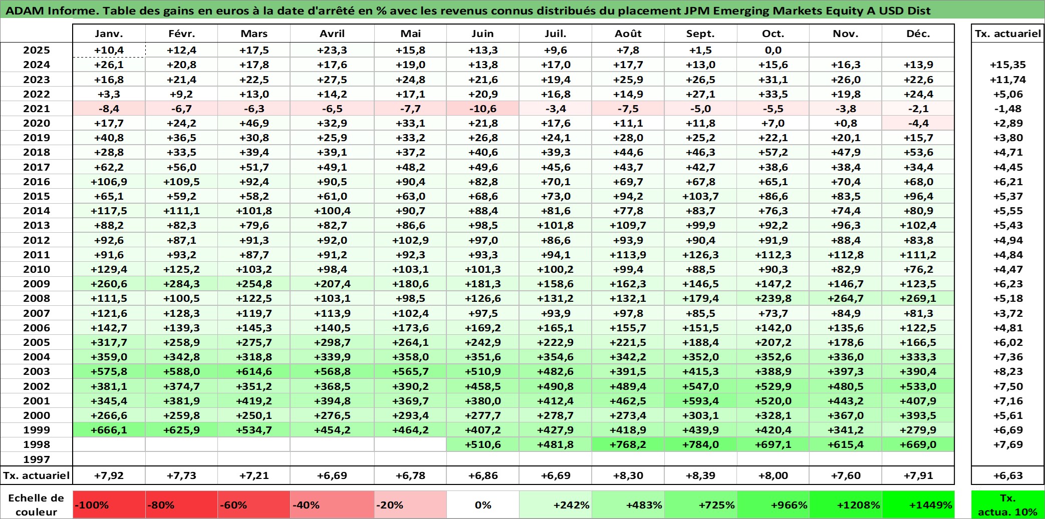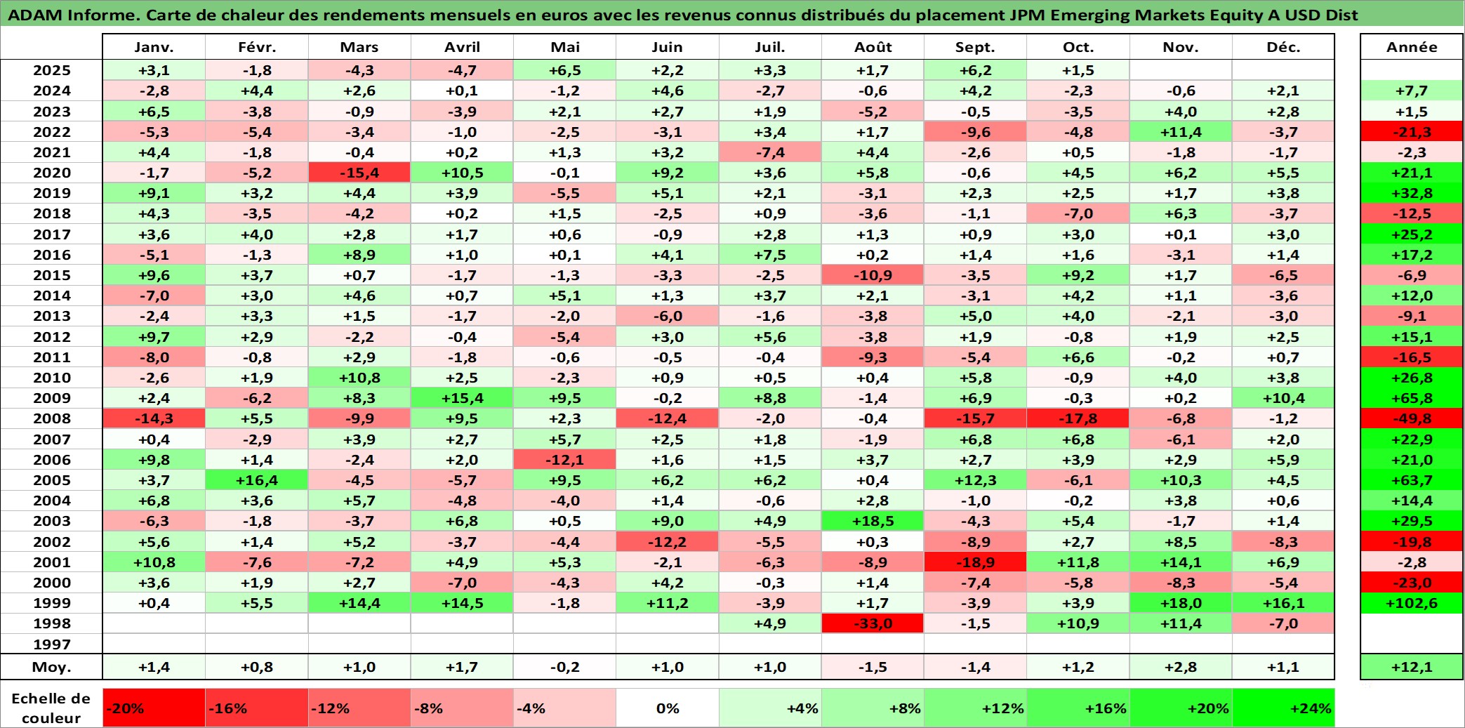 Site dédié aux investisseursPage dédiée sur site financeAnalyse des valorisations hebdomadaires du fonds JPM Emerging Markets Equity A USD Dist. Cet actif est cote en USD. Les valorisations sont en contrevaleur EURO et couvrent les semaines 1998W29 a 2025W40. Les revenus de cet actif financier sont pris en compte depuis la semaine 1998W40. La note ESG de cet actif n'est pas connue.