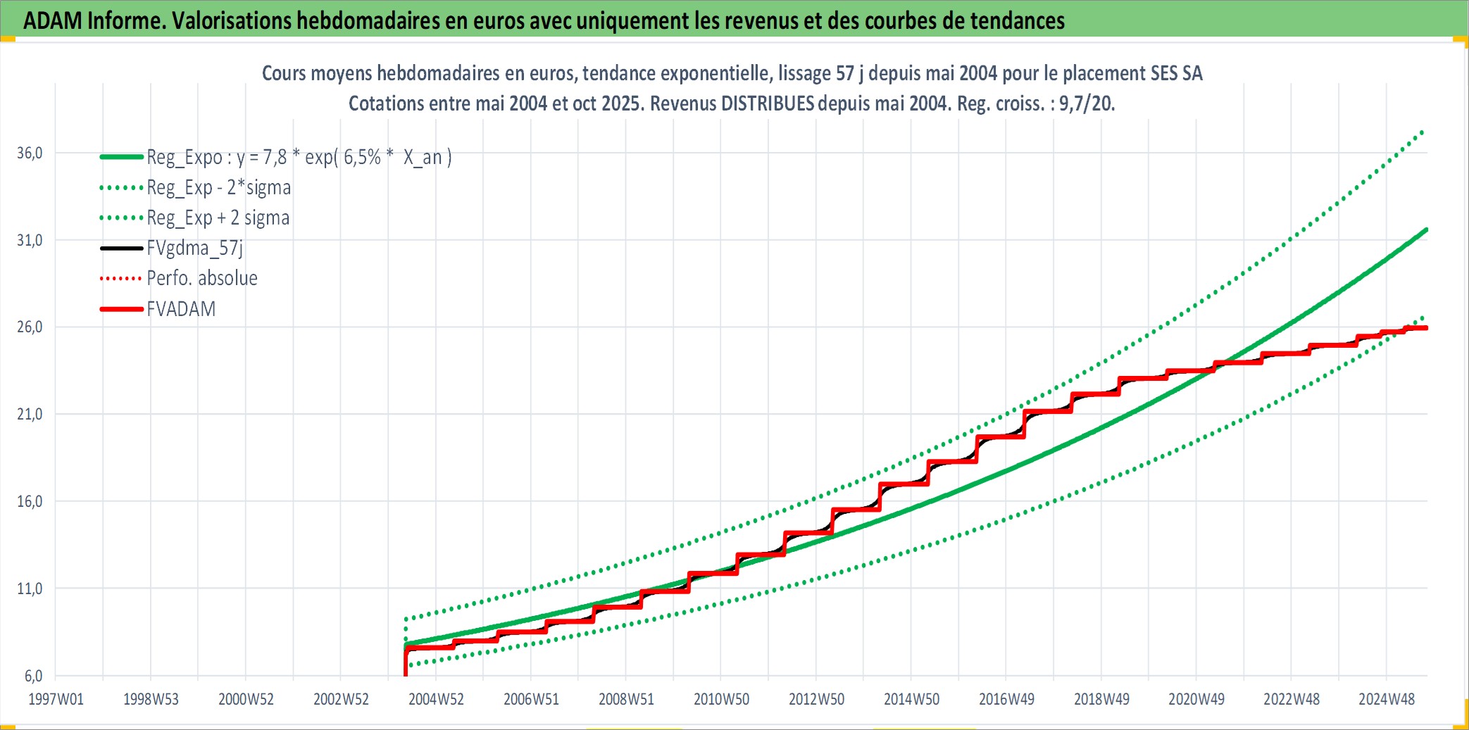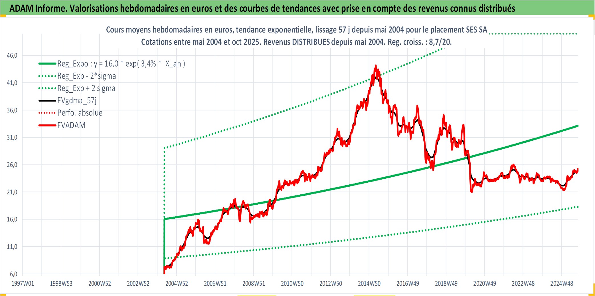 Site dédié aux investisseursPage dédiée sur site financeAnalyse des valorisations hebdomadaires de l'action SES SA. Cet actif est cote en EUR. Les valorisations couvrent les semaines 2004W19 a 2025W40. Les revenus de cet actif financier sont pris en compte depuis la semaine 2004W21. La note globale ESG de cet actif est estimee a 12.0 (apres rebasage entre 0 et 20).