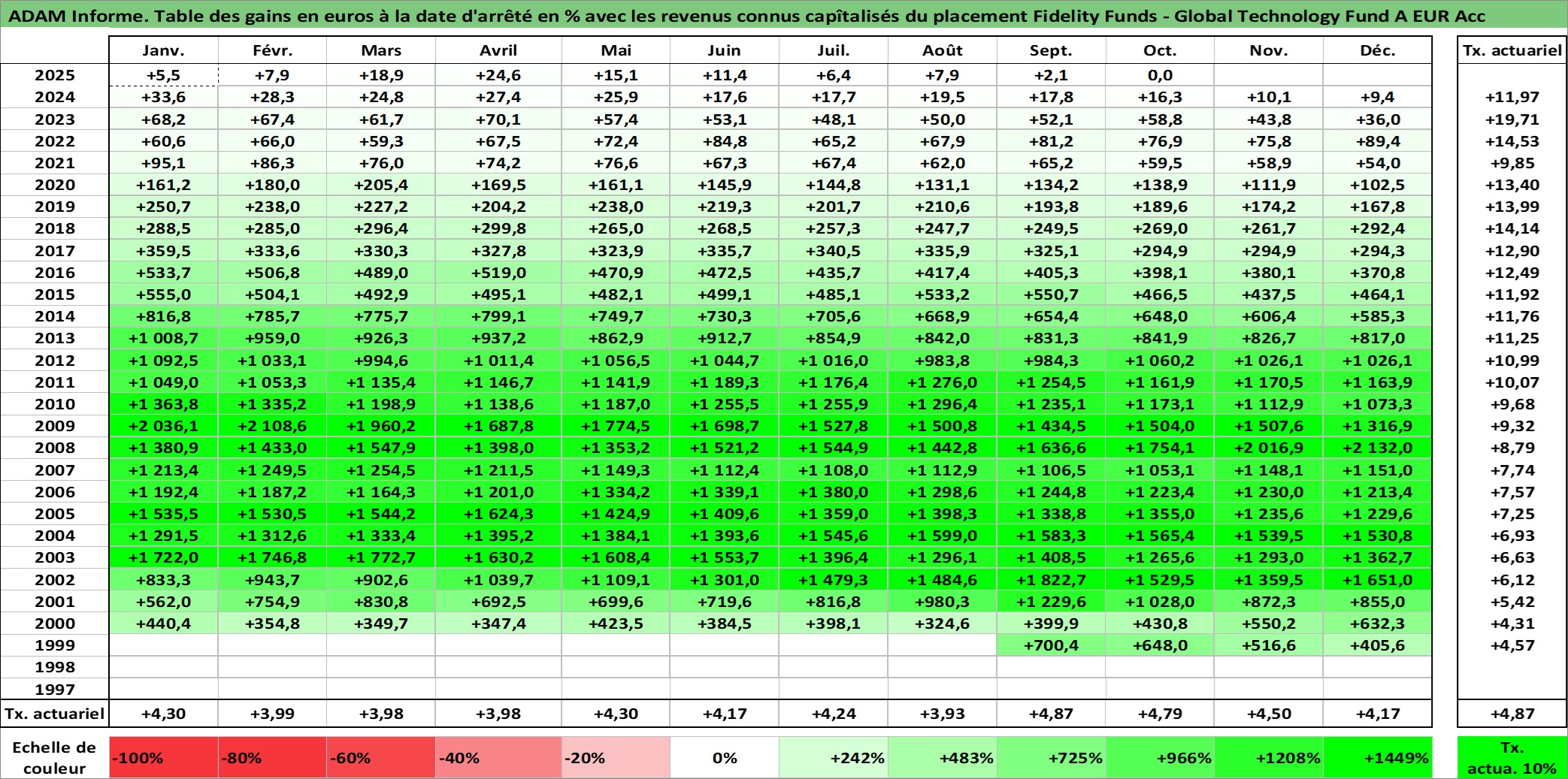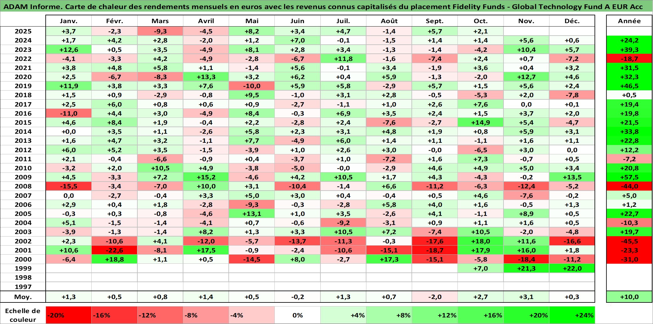 Site dédié aux investisseursPage dédiée sur site financeAnalyse des valorisations hebdomadaires du fonds Fidelity Funds - Global Technology Fund A EUR Acc. Cet actif est cote en EUR. Les valorisations couvrent les semaines 1999W39 a 2025W40. Les revenus de cet actif financier sont pris en compte depuis la semaine 1999W39. La note globale ESG de cet actif est estimee a 10.0 (apres rebasage entre 0 et 20).