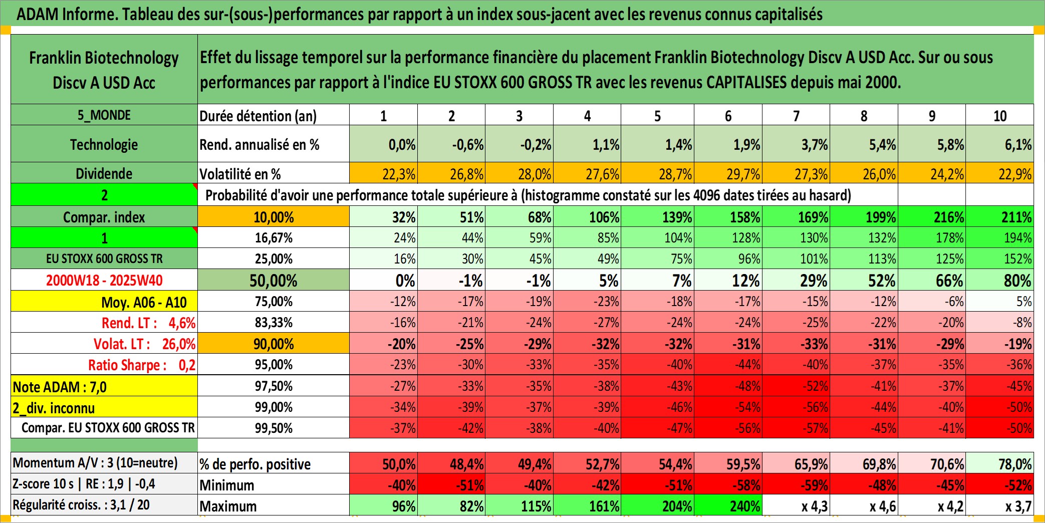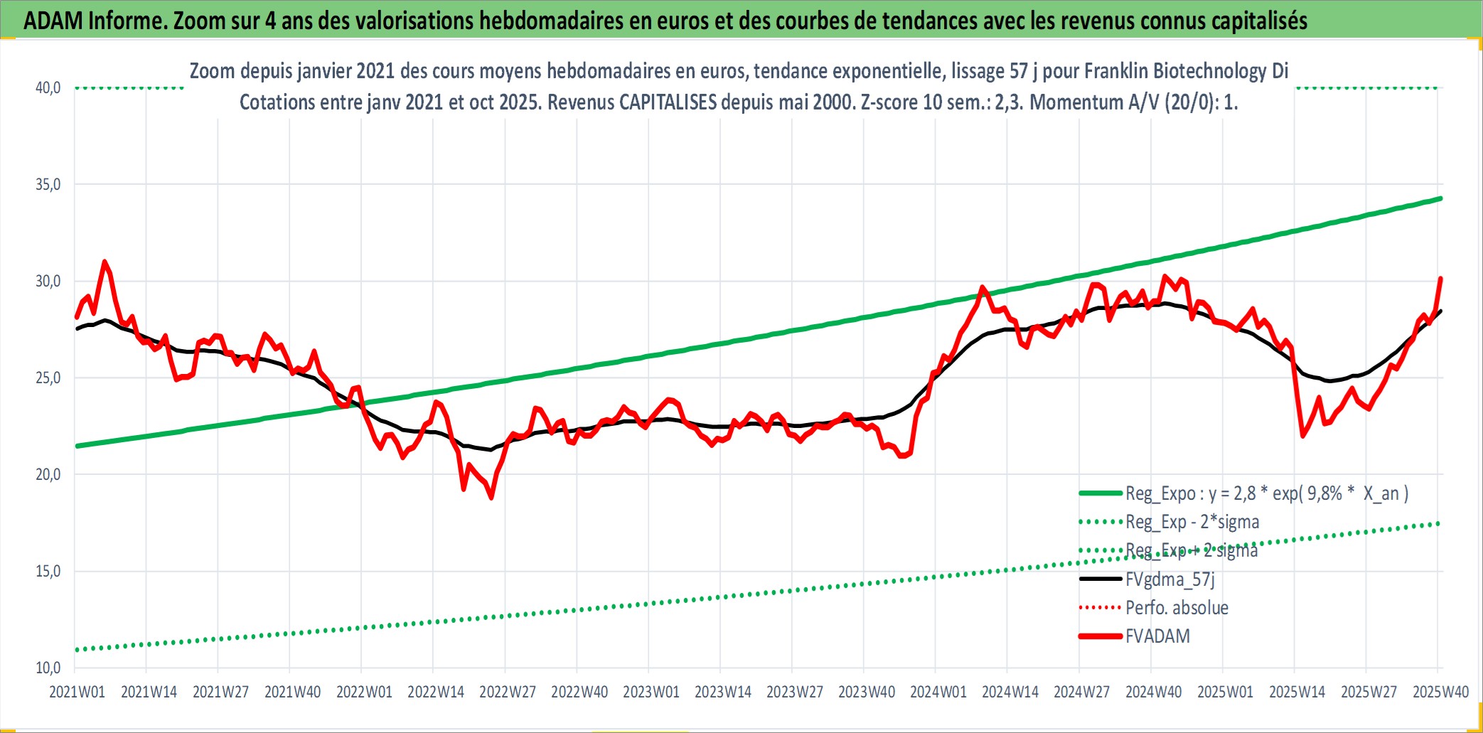 Site dédié aux investisseursPage dédiée sur site financeAnalyse des valorisations hebdomadaires du fonds Franklin Biotechnology Discv A USD Acc. Cet actif est cote en SGD. Les valorisations sont en contrevaleur EURO et couvrent les semaines 2000W18 a 2025W40. Les revenus de cet actif financier sont pris en compte depuis la semaine 2000W18. La note globale ESG de cet actif est estimee a 5.0 (apres rebasage entre 0 et 20).