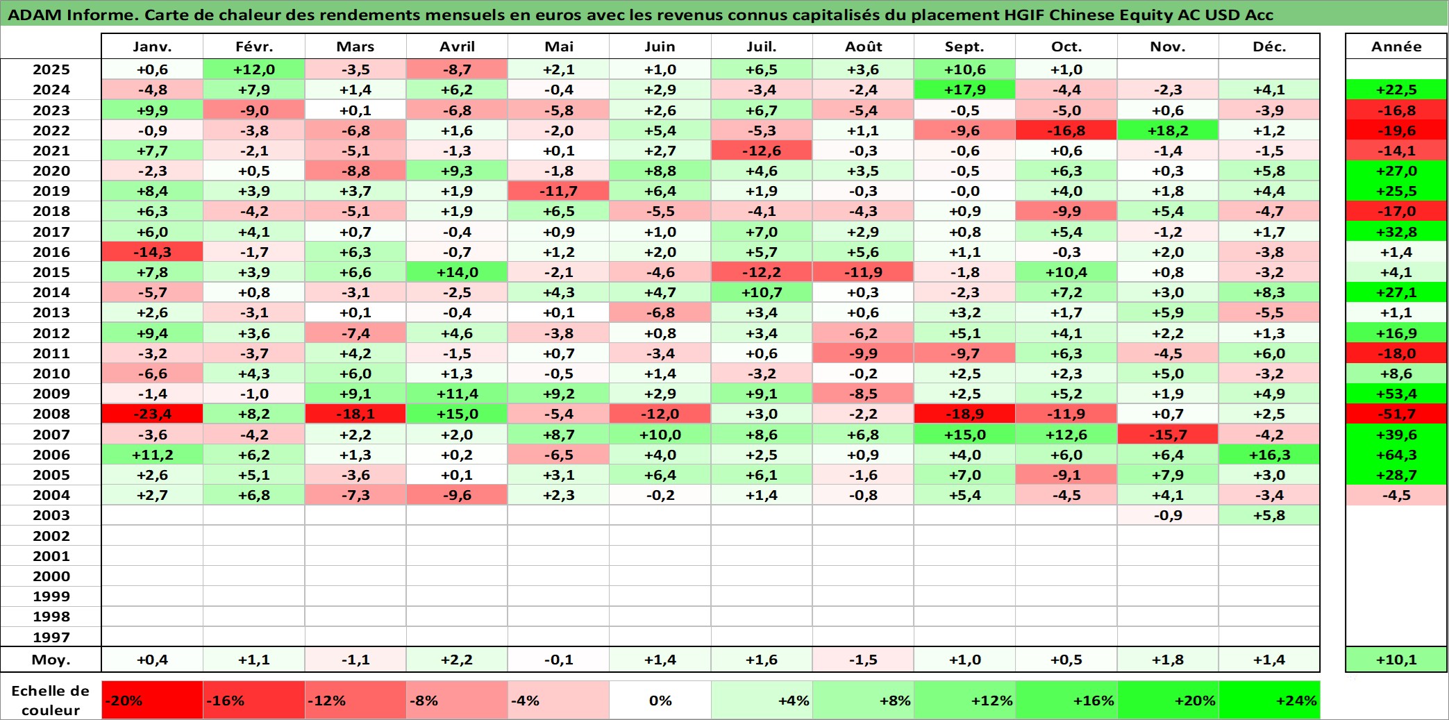 Site dédié aux investisseursPage dédiée sur site financeAnalyse des valorisations hebdomadaires du fonds HGIF Chinese Equity AC USD Acc. Cet actif est cote en USD. Les valorisations sont en contrevaleur EURO et couvrent les semaines 2003W44 a 2025W40. Les revenus de cet actif financier sont pris en compte depuis la semaine 2003W44. La note ESG de cet actif n'est pas connue.
