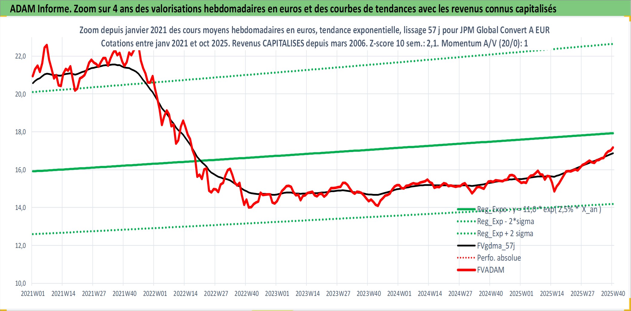 Site dédié aux investisseursPage dédiée sur site financeAnalyse des valorisations hebdomadaires du fonds JPM Global Convert A EUR Acc. Cet actif est cote en EUR. Les valorisations couvrent les semaines 2006W11 a 2025W40. Les revenus de cet actif financier sont pris en compte depuis la semaine 2006W11. La note globale ESG de cet actif est estimee a 9.0 (apres rebasage entre 0 et 20).