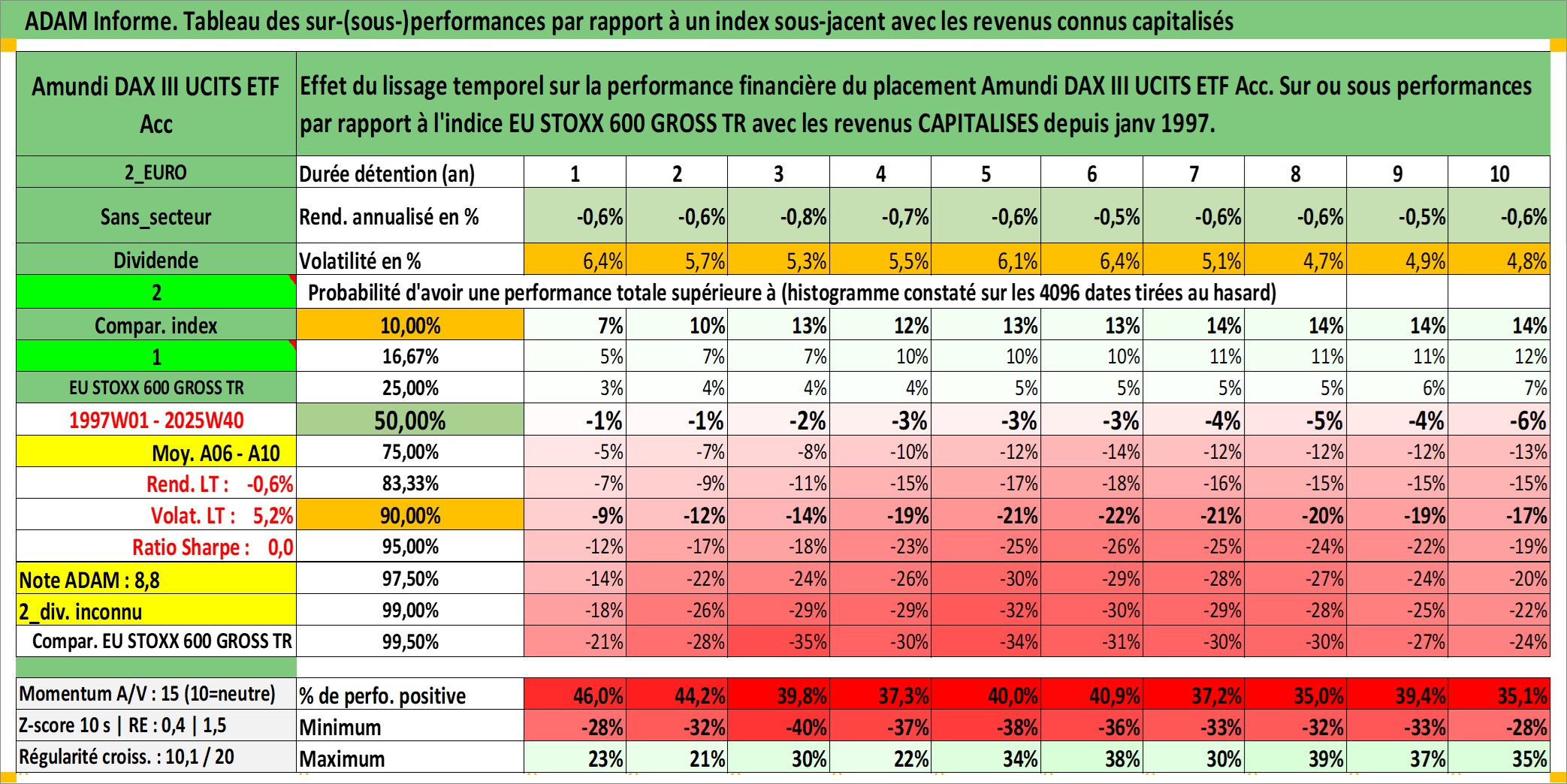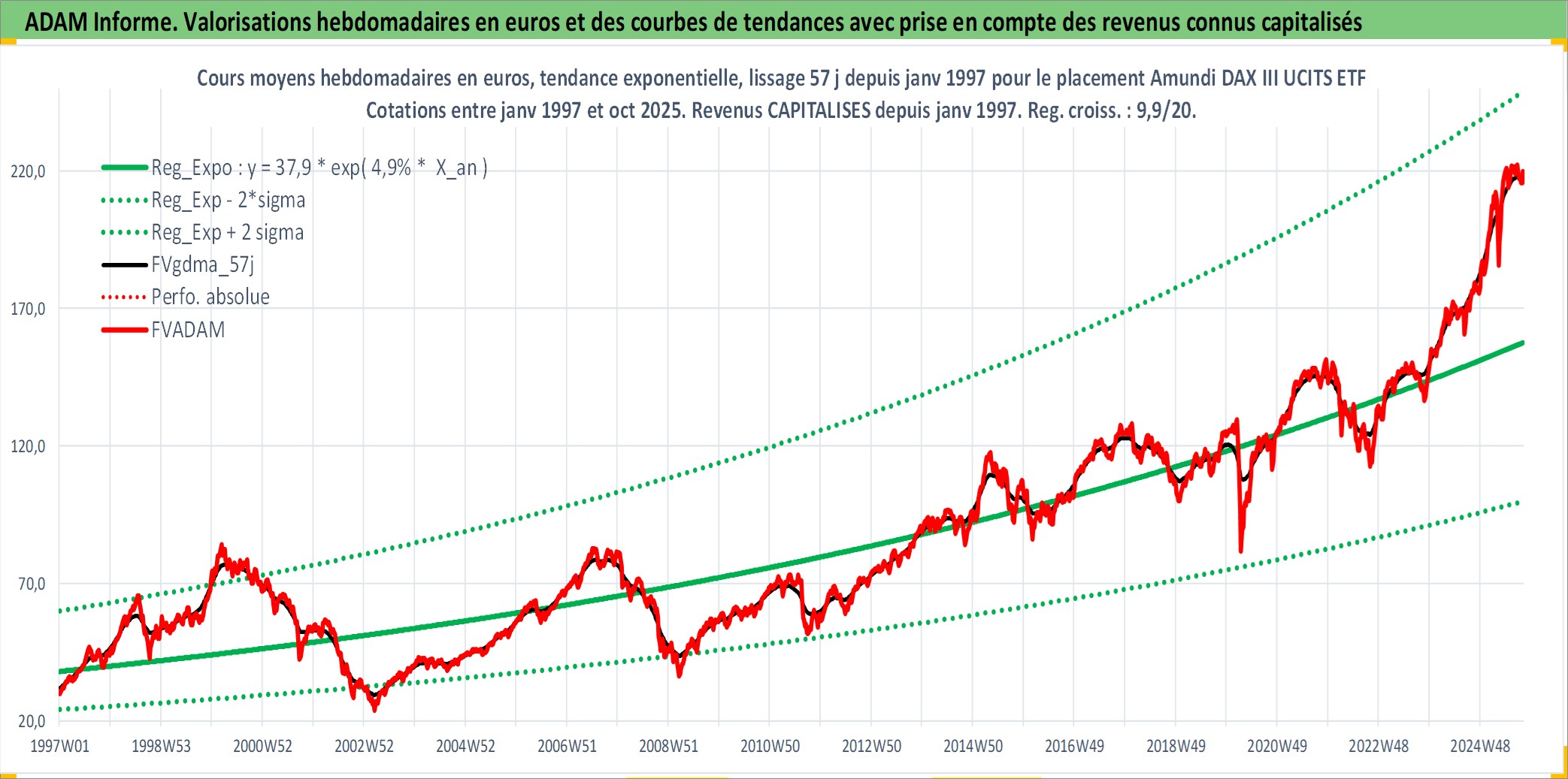 Site dédié aux investisseursPage dédiée sur site financeAnalyse des valorisations hebdomadaires du fonds Amundi DAX III UCITS ETF Acc. Cet actif est cote en EUR. Les valorisations couvrent les semaines 1997W01 a 2025W40. Les revenus de cet actif financier sont pris en compte depuis la semaine 1997W01. La note ESG de cet actif n'est pas connue.
